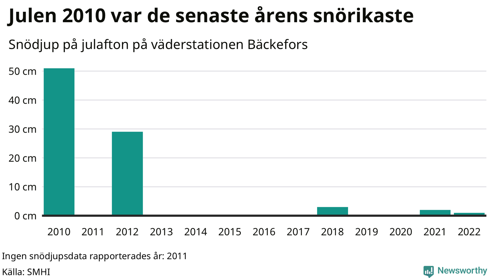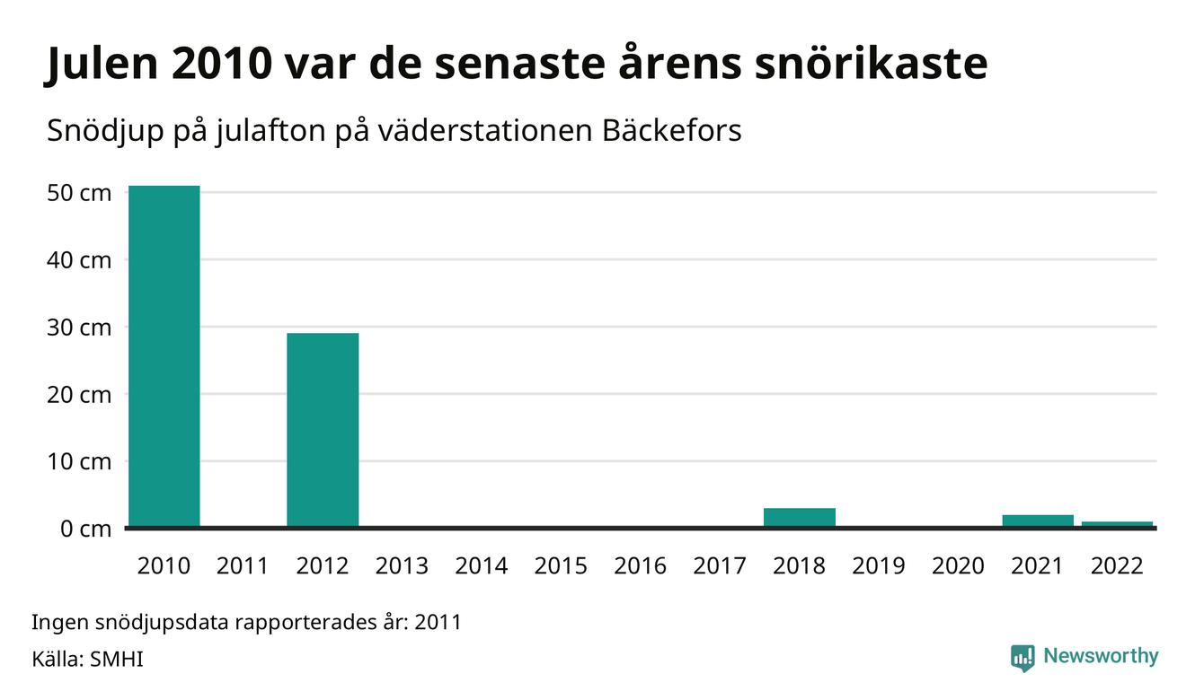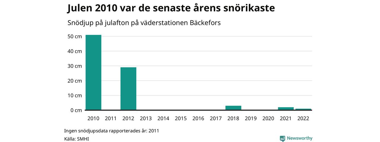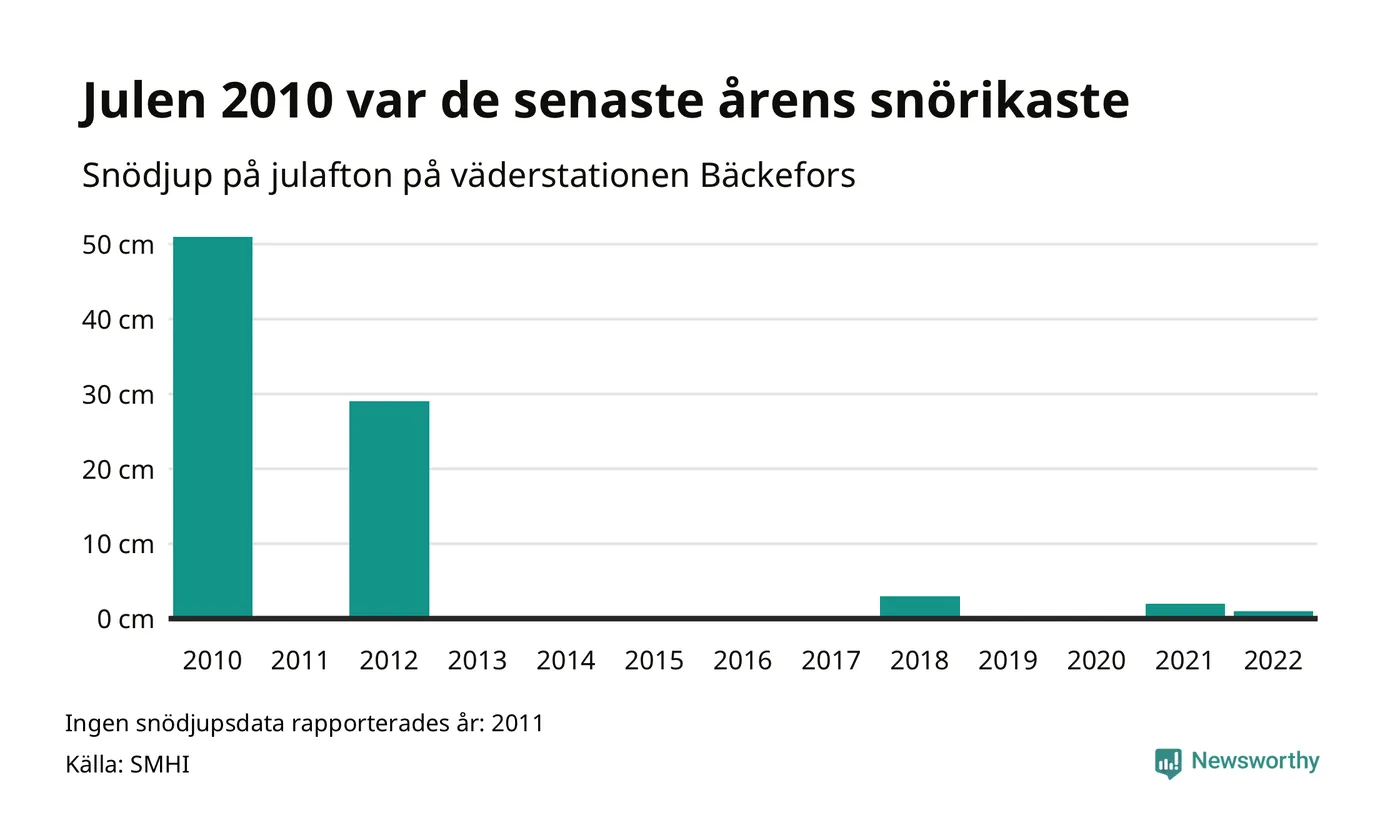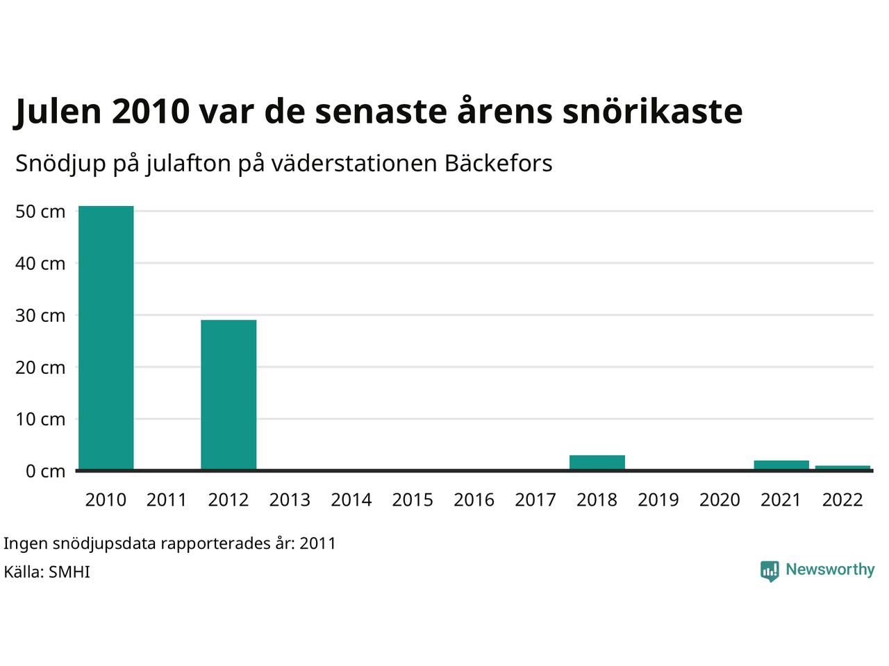 Sett till det senaste decenniet har man behövt ta sig norr om Stockholm för att ha 50 procents chans till en vit jul. För att vara helt säker på att få vakna till vita vyer har man behövt resa förbi både Hudiksvall, Sundsvall, och Sollefteå.