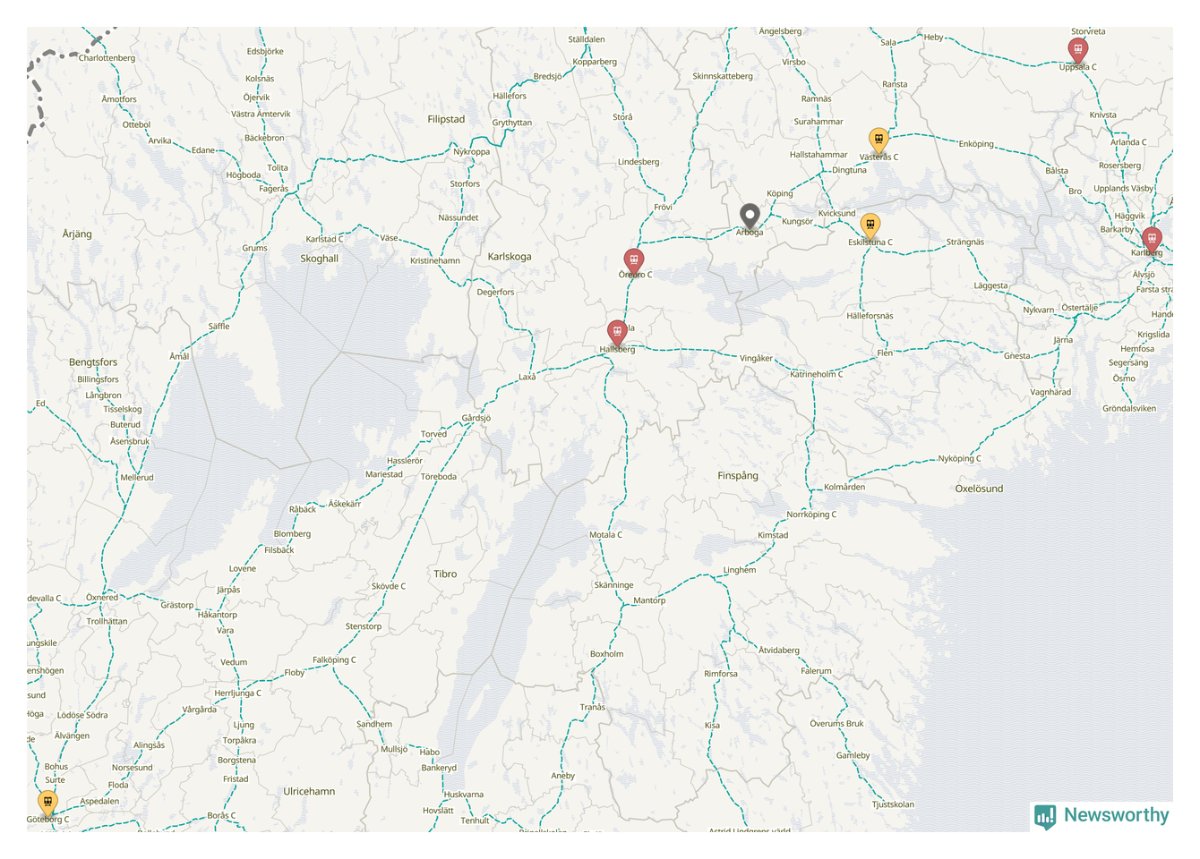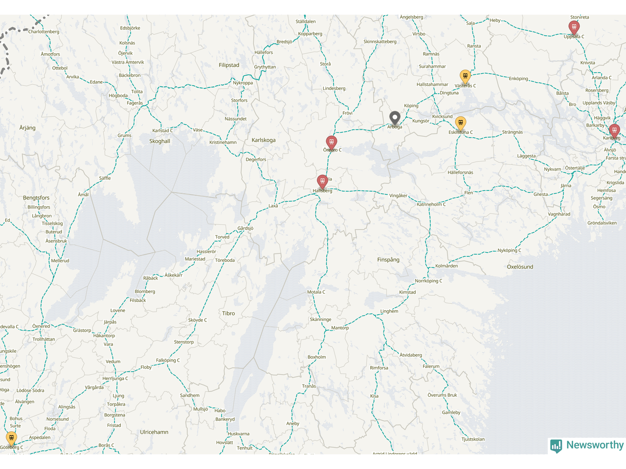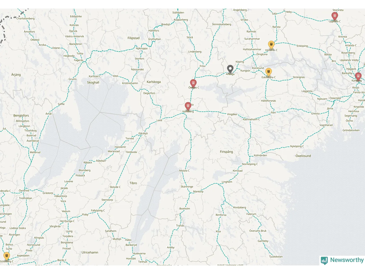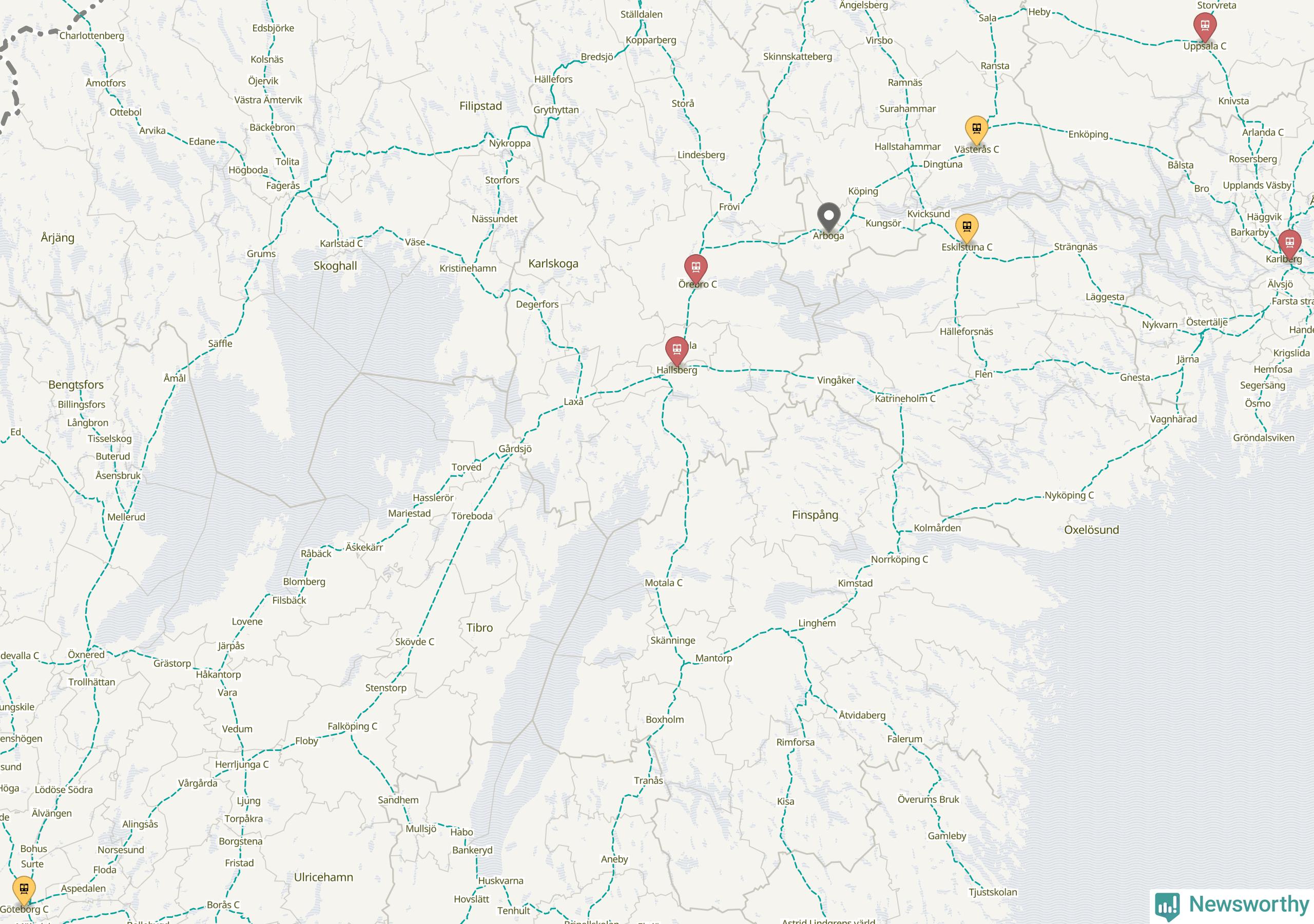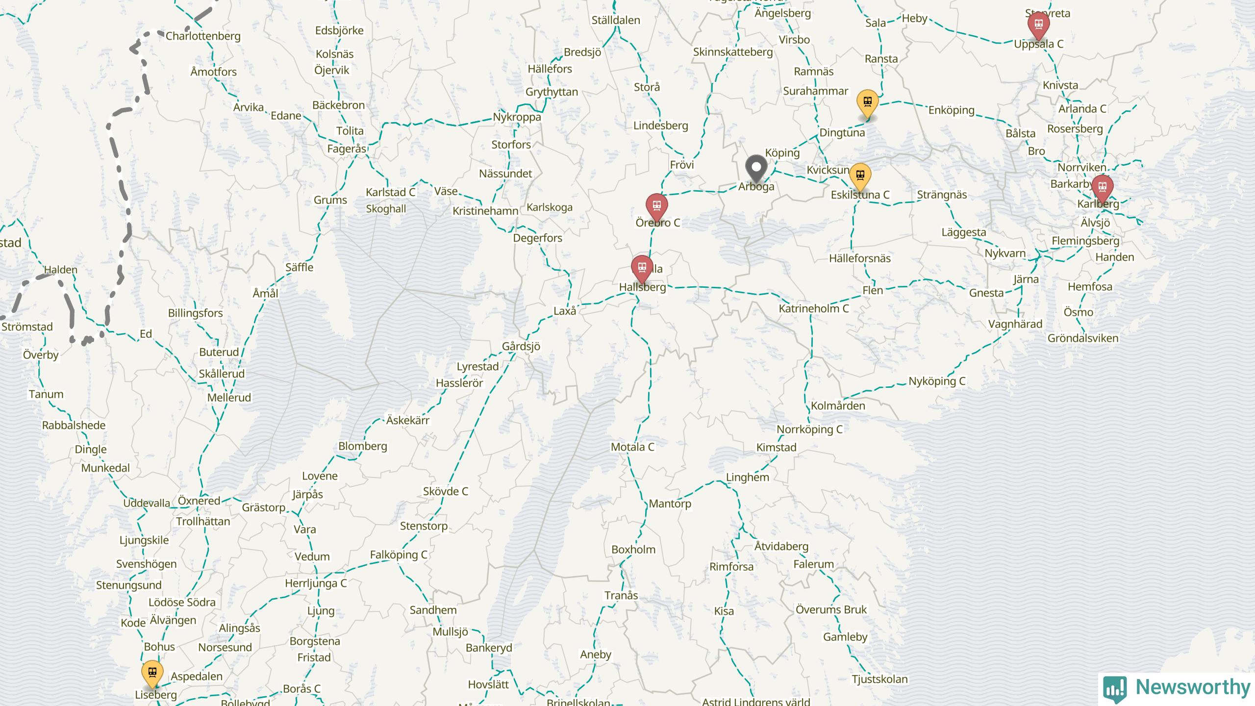 Kartdata från Mapbox, Newsworthy, OpenStreetMap och Trafikverket. Uppgifter om sträckor med passagerartrafik från jarnvag.net.