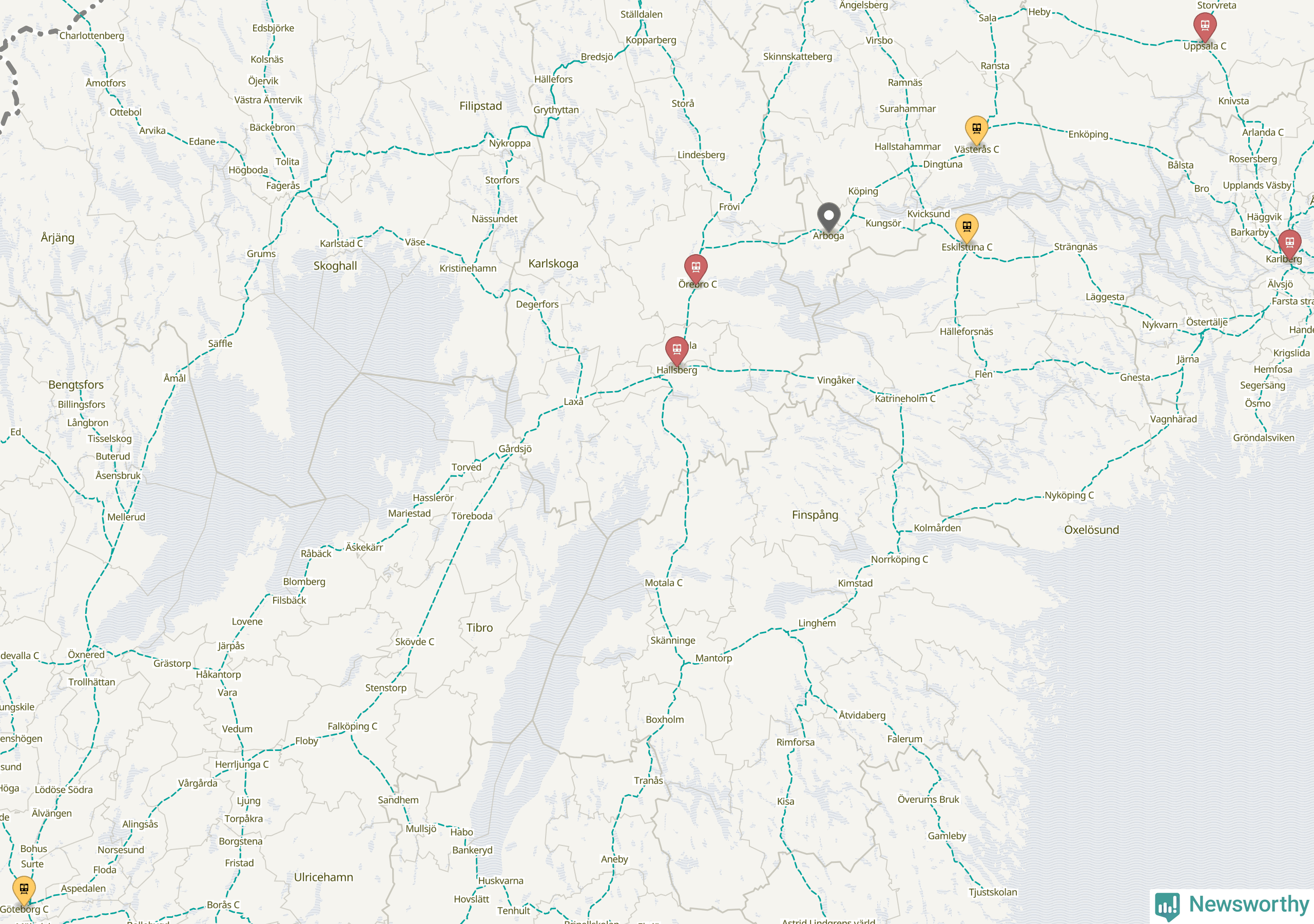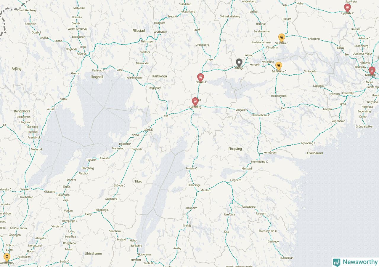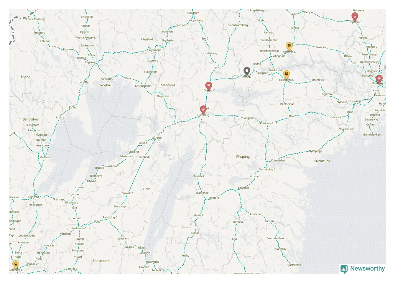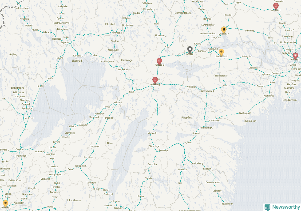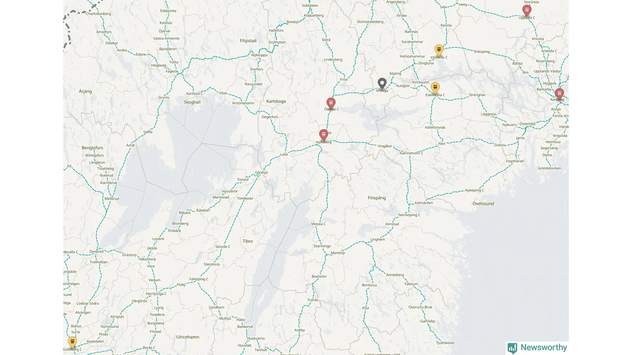 Kartdata från Mapbox, Newsworthy, OpenStreetMap och Trafikverket. Uppgifter om sträckor med passagerartrafik från jarnvag.net.