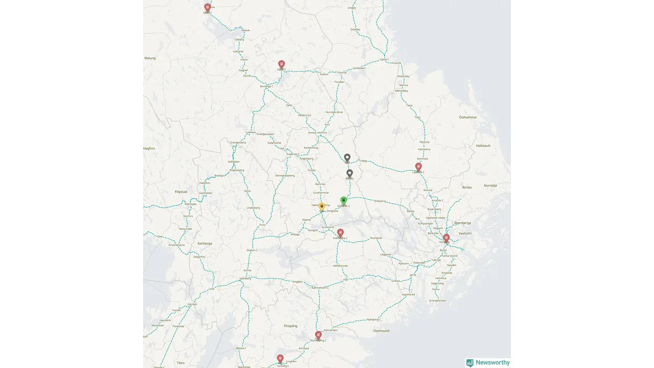 | 17 april 18.01–19.00 | obehöriga i spårområdet | Stopp i tågtrafiken mellan Eskilstuna och Kungsör/Kvicksund sedan kl 18:05 på grund av obehöriga i spårområdet |