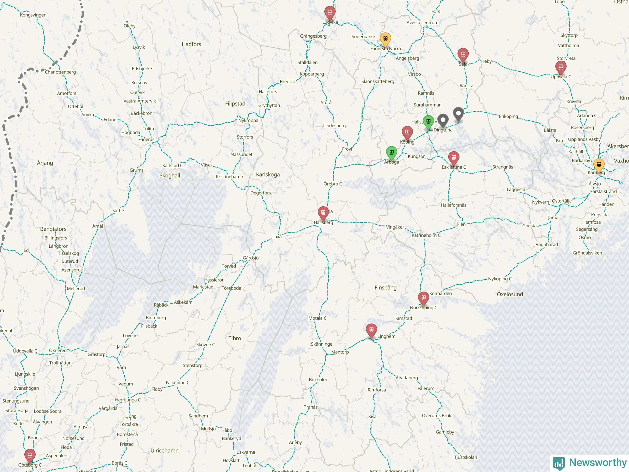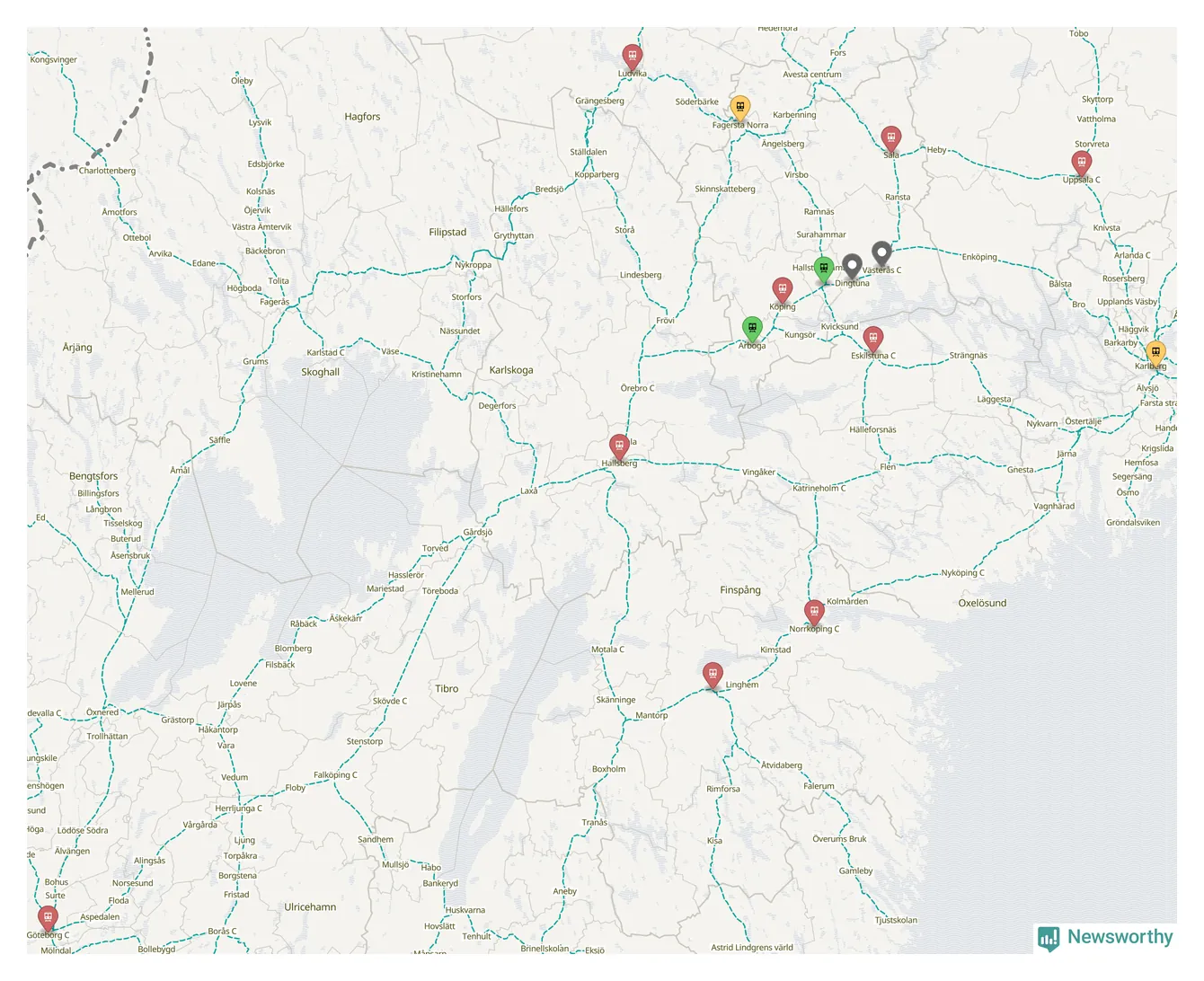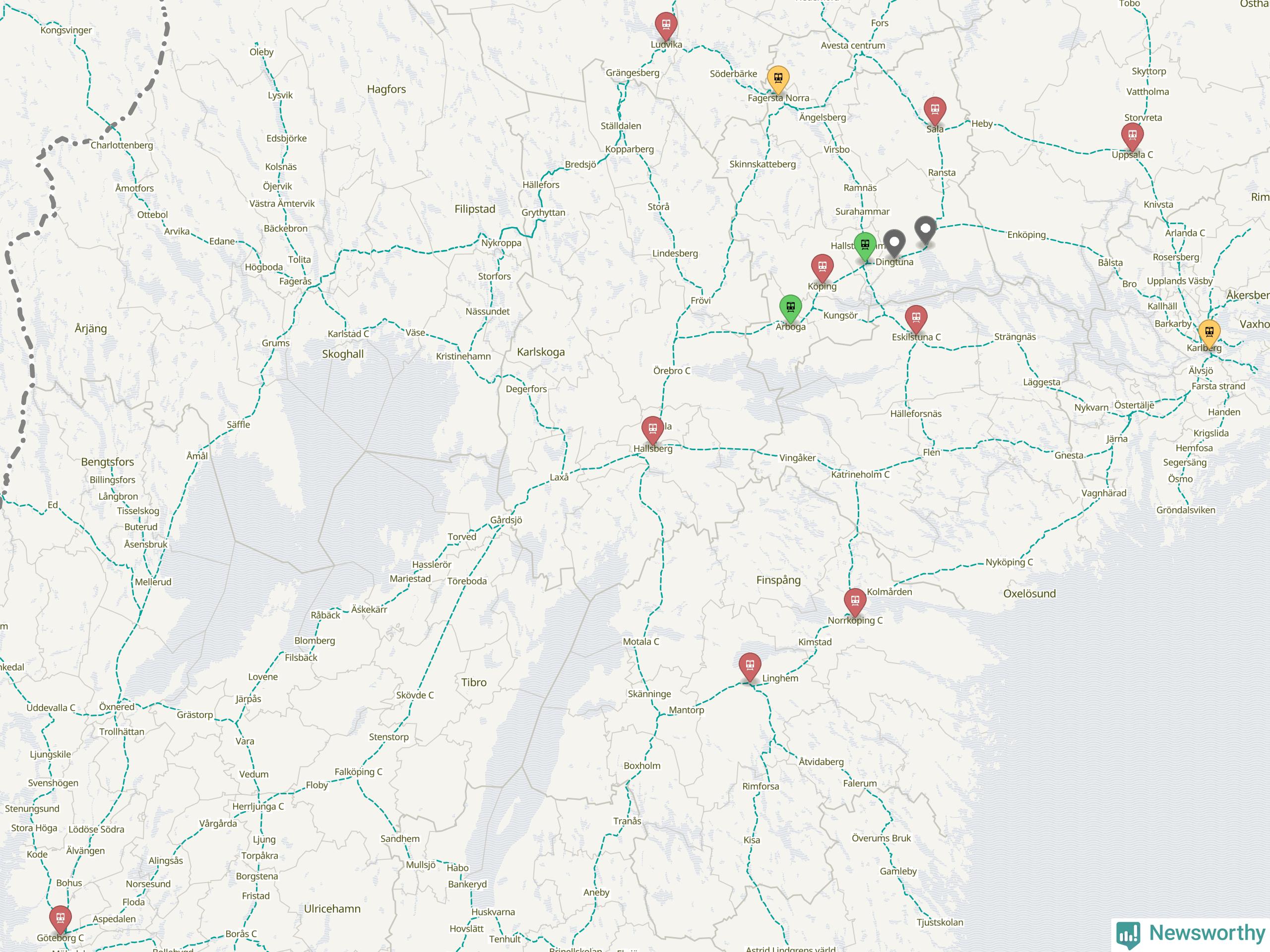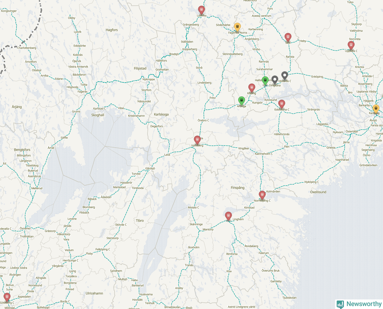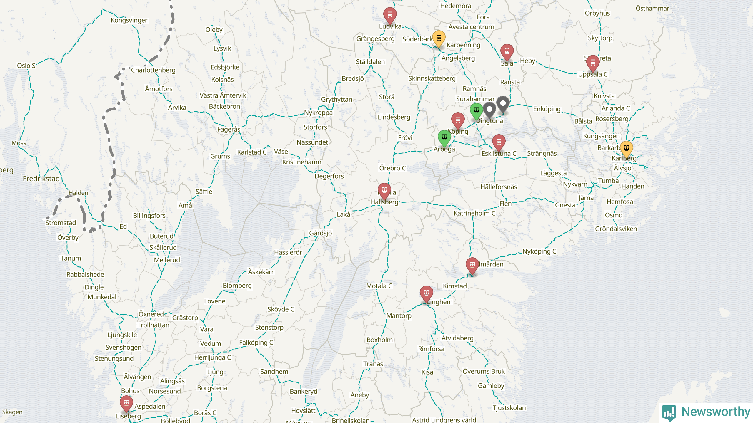Kartdata från Mapbox, Newsworthy, OpenStreetMap och Trafikverket. Uppgifter om sträckor med passagerartrafik från jarnvag.net.