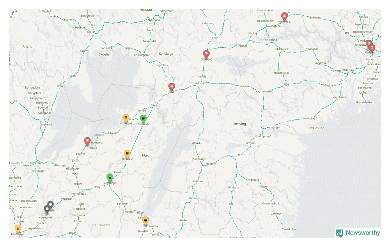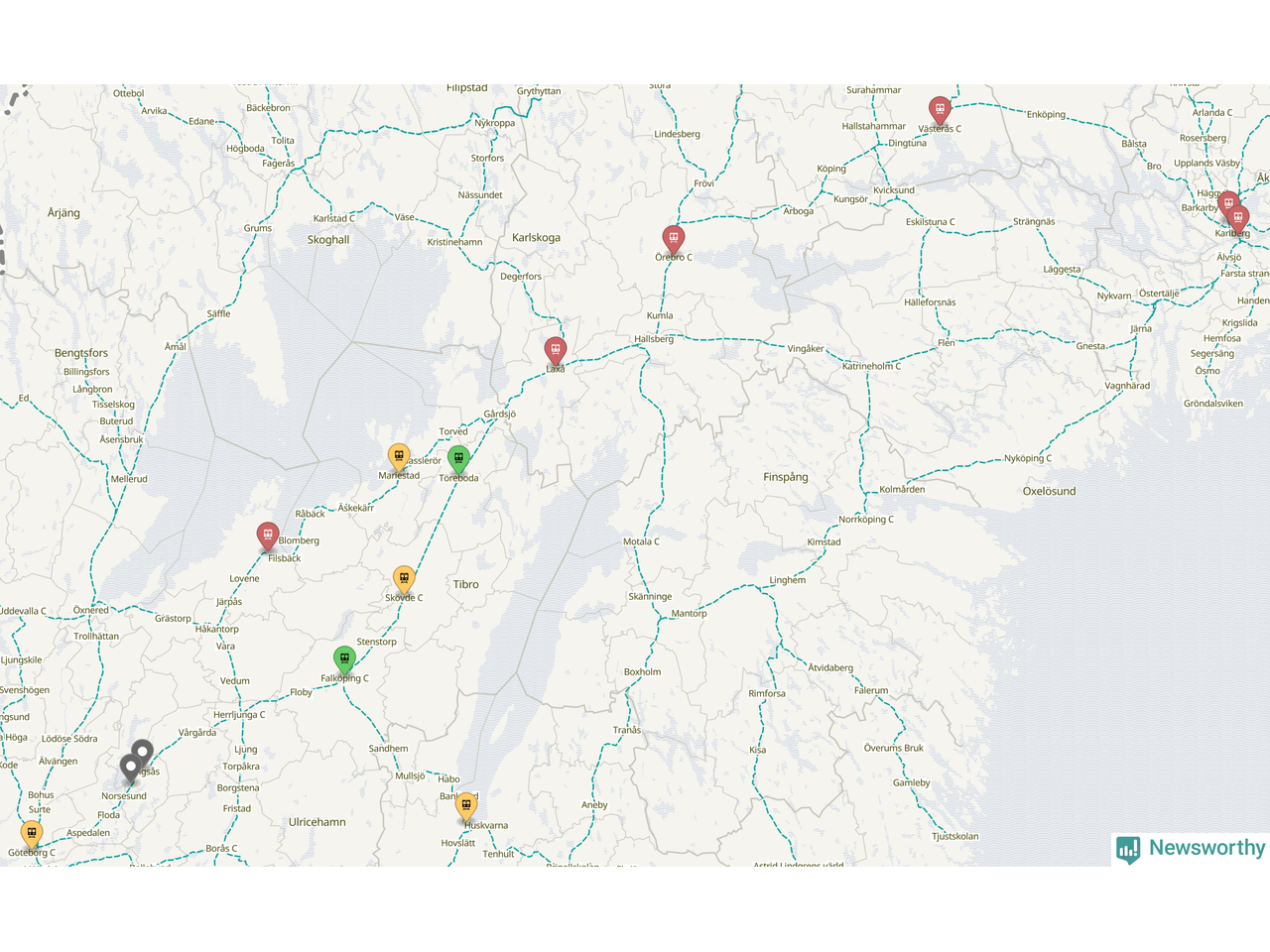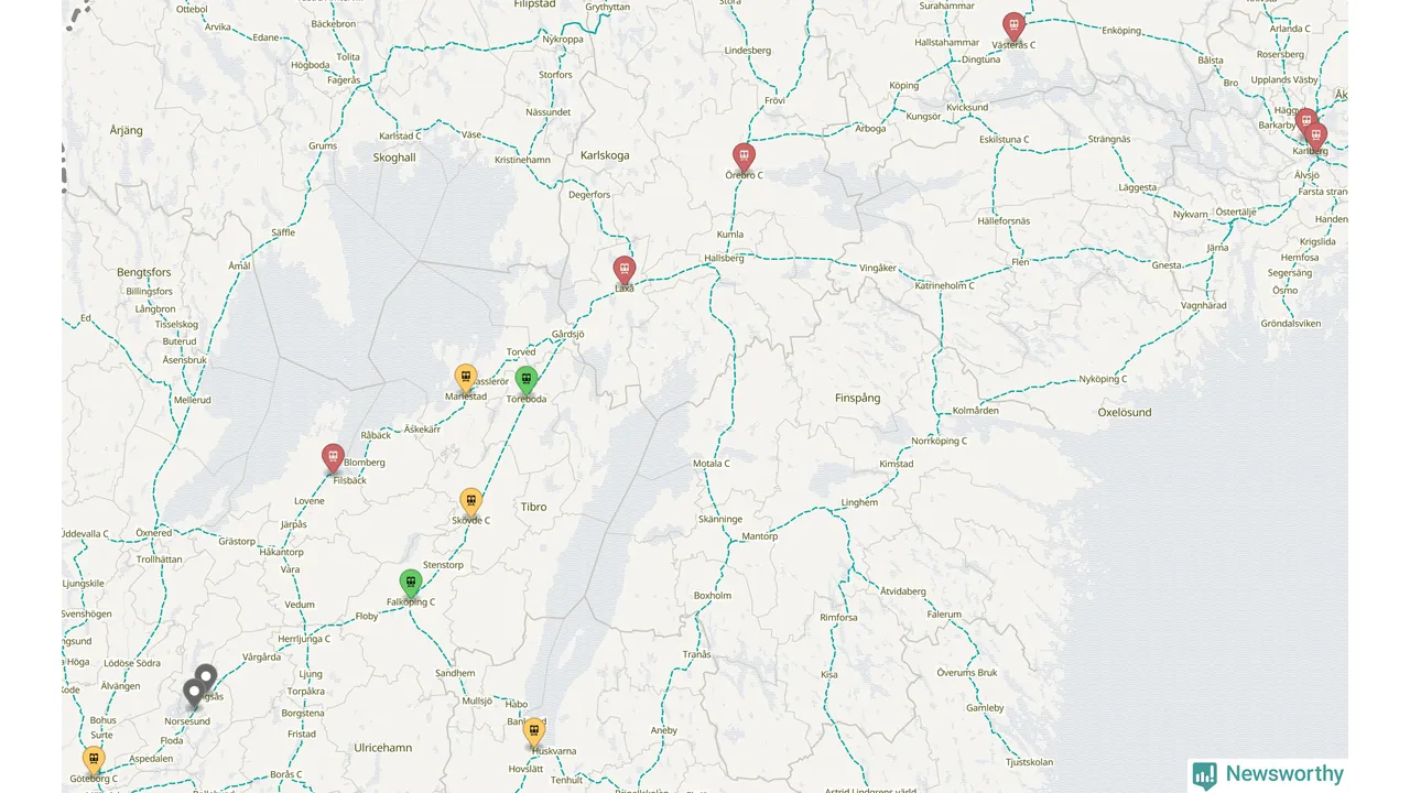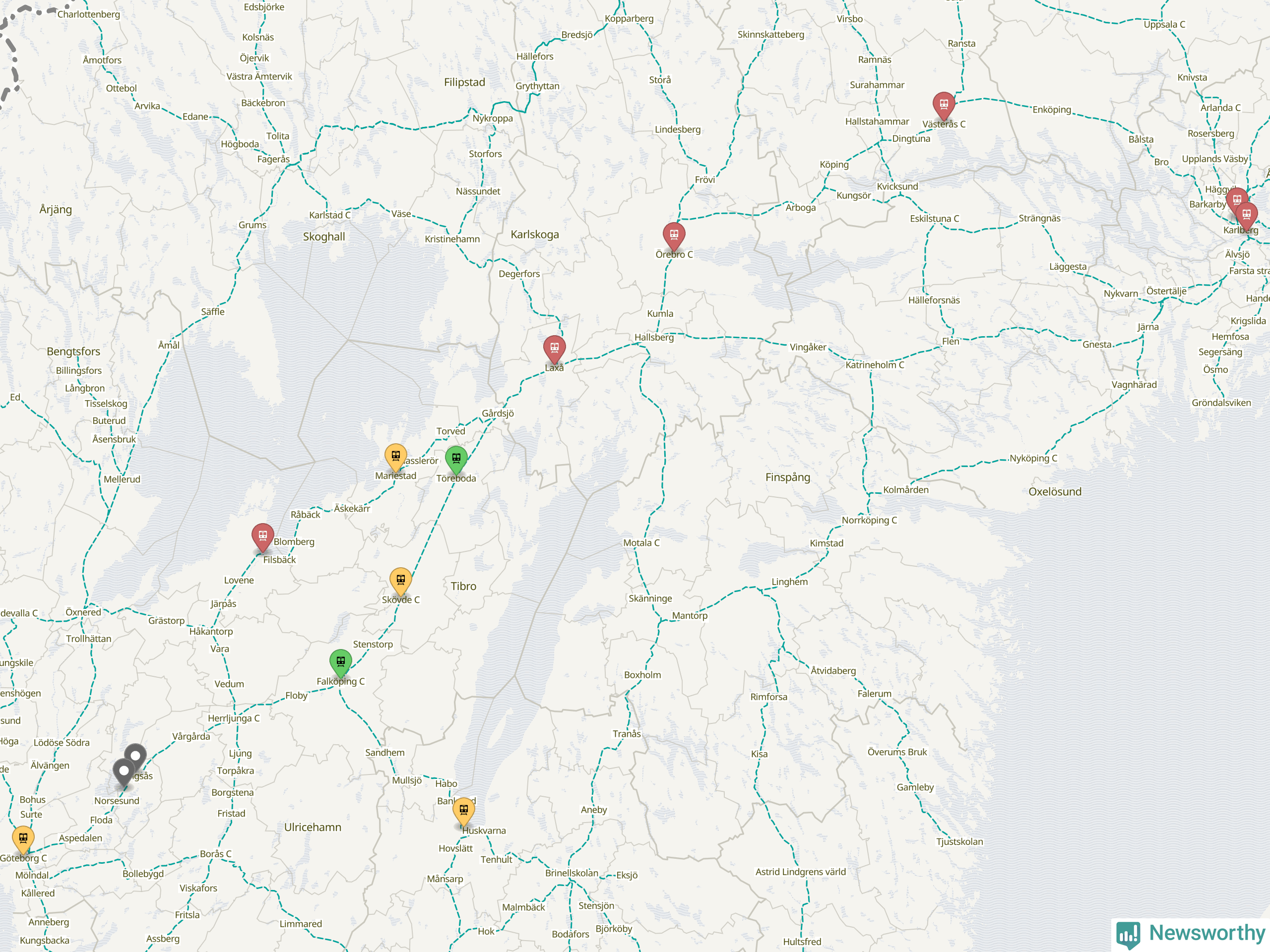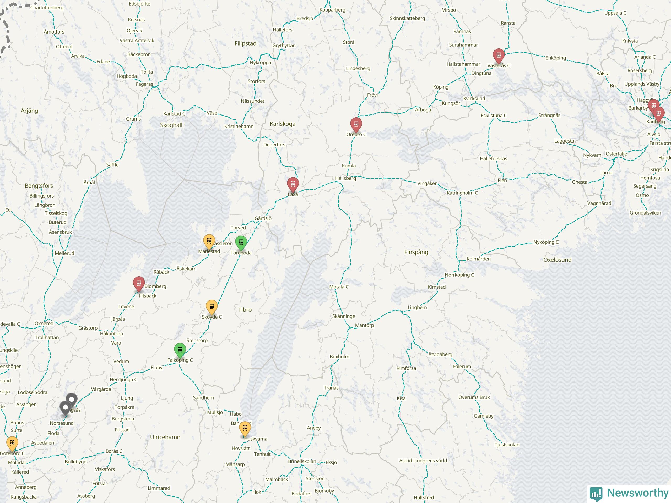 Kartdata från Mapbox, Newsworthy, OpenStreetMap och Trafikverket. Uppgifter om sträckor med passagerartrafik från jarnvag.net.