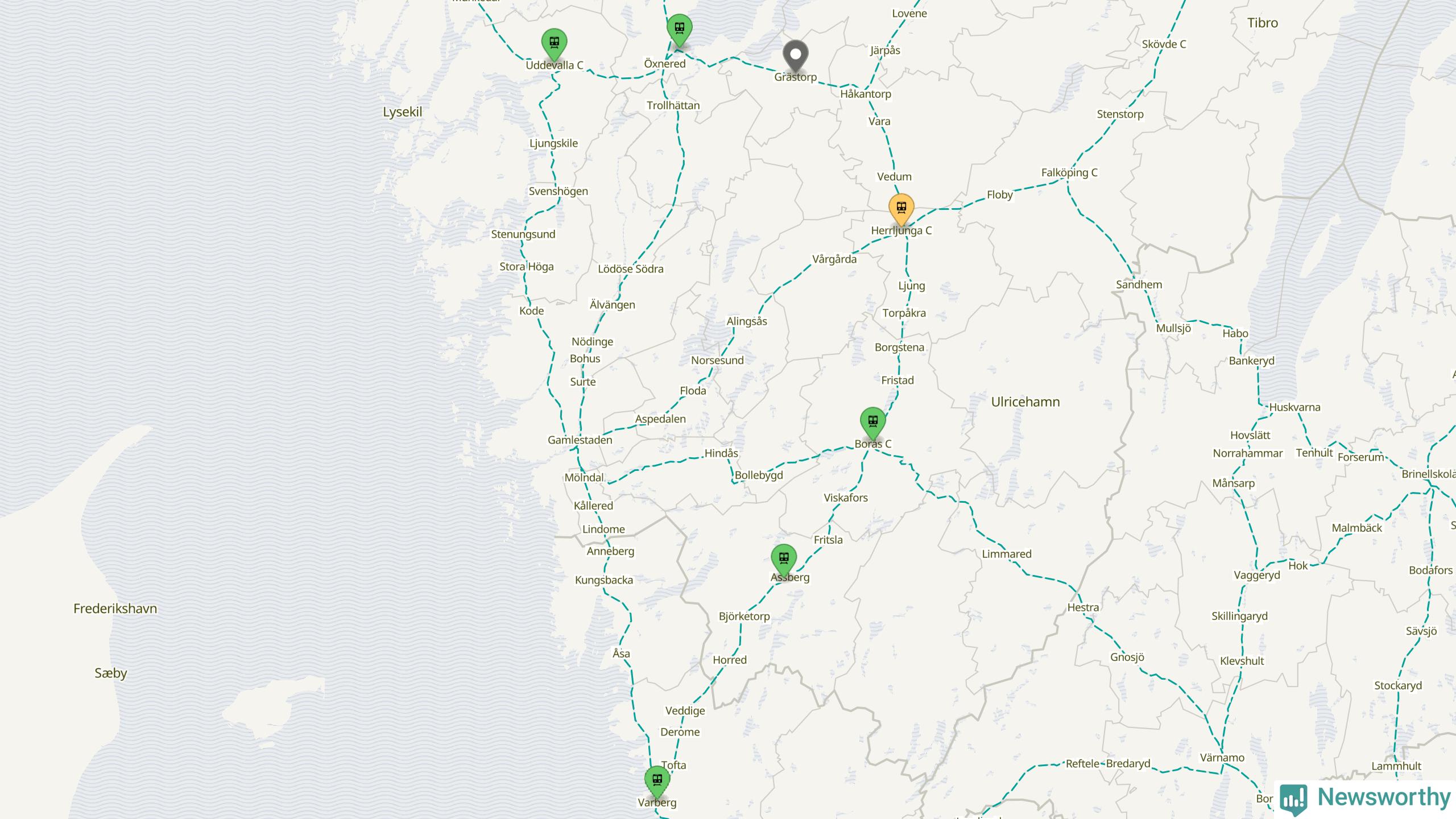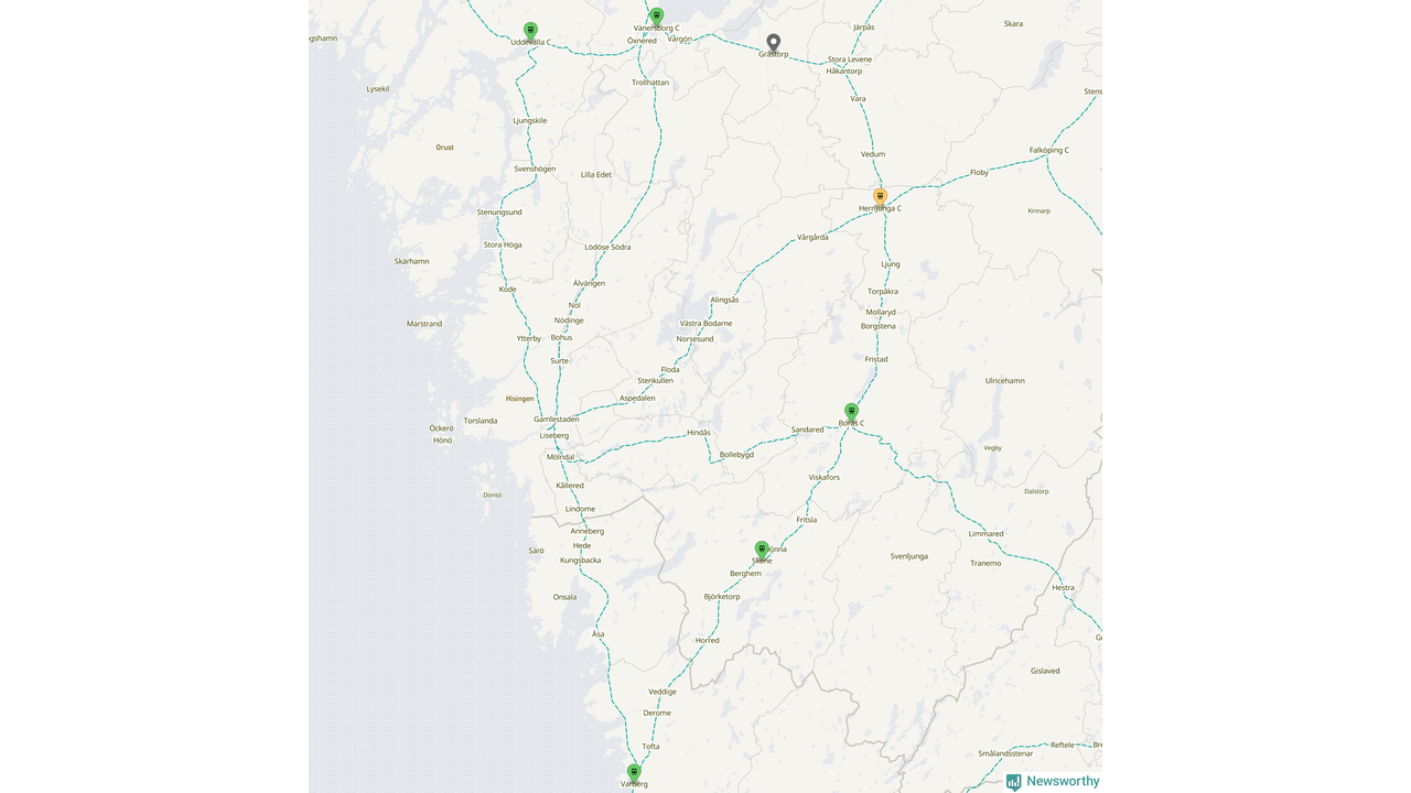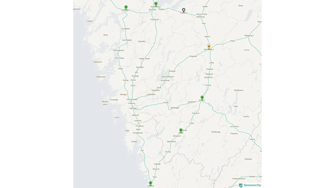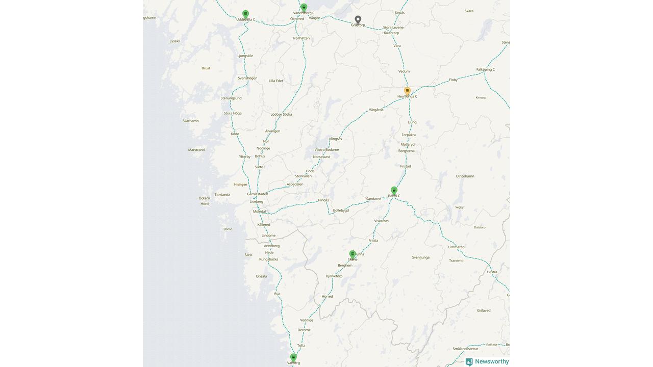 Kartdata från Mapbox, Newsworthy, OpenStreetMap och Trafikverket. Uppgifter om sträckor med passagerartrafik från jarnvag.net.
