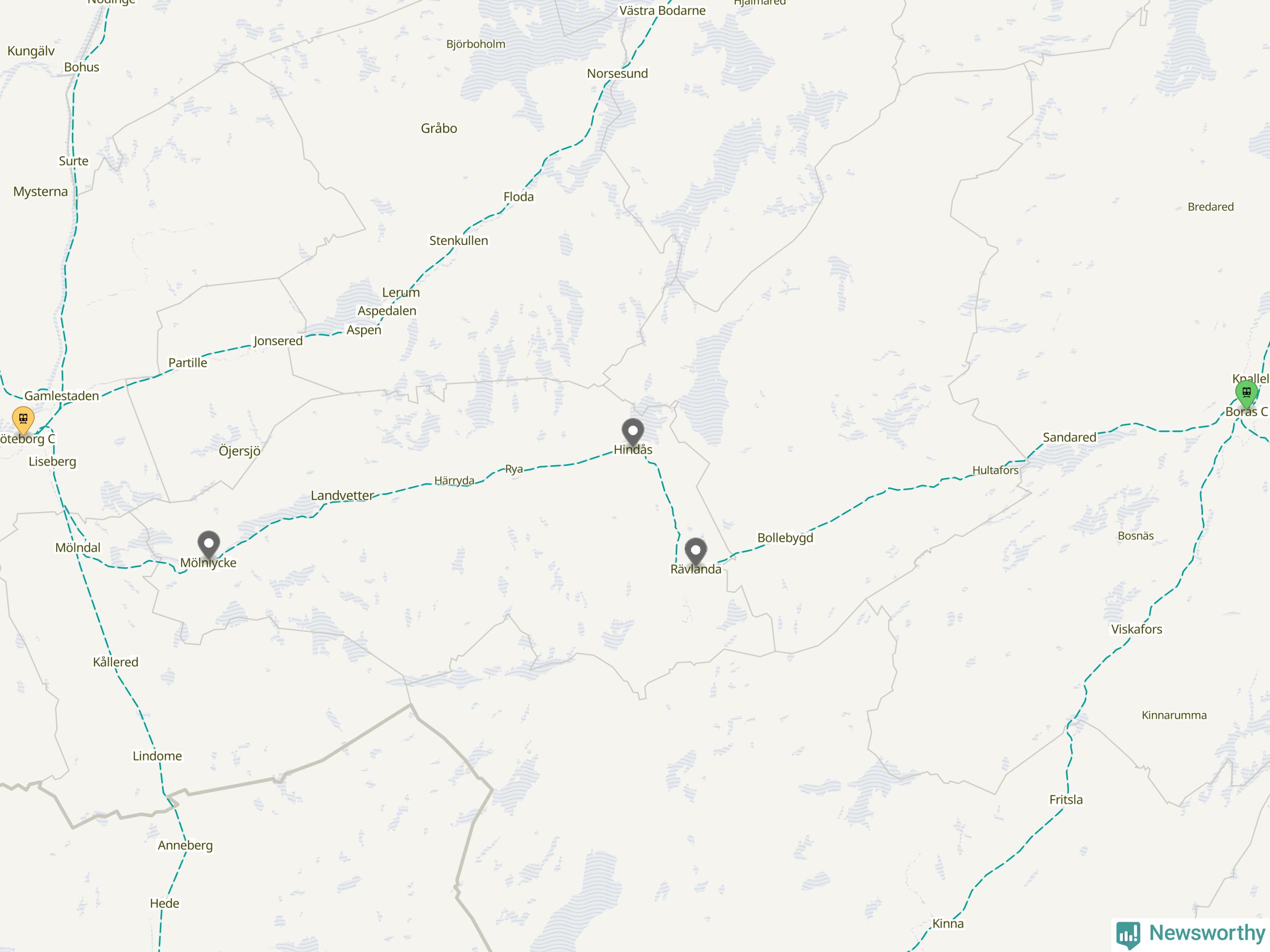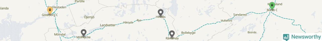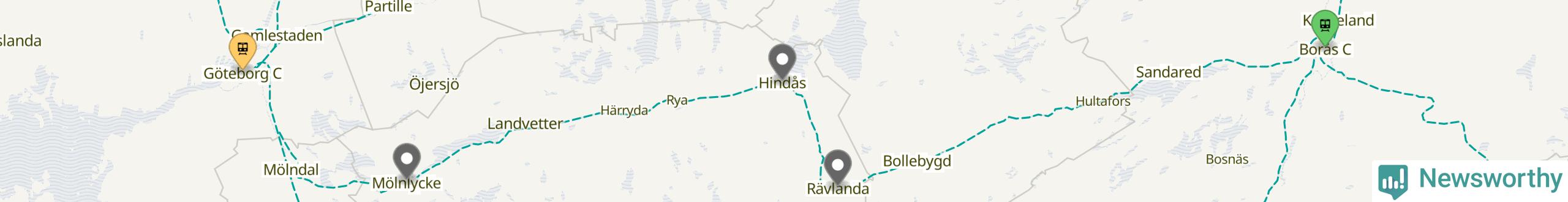 Totalt var sju procent av de ankommande Borås–Göteborgs-tågen mer än fem minuter försenade under juni bland de tåg som angjorde någon av stationerna Hindås, Mölnlycke och Rävlanda. Tre procent var så mycket som en kvart försenade.