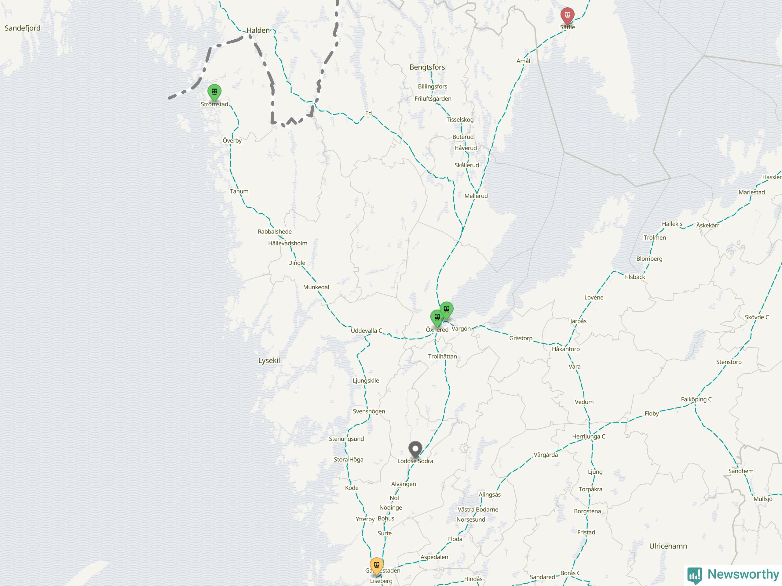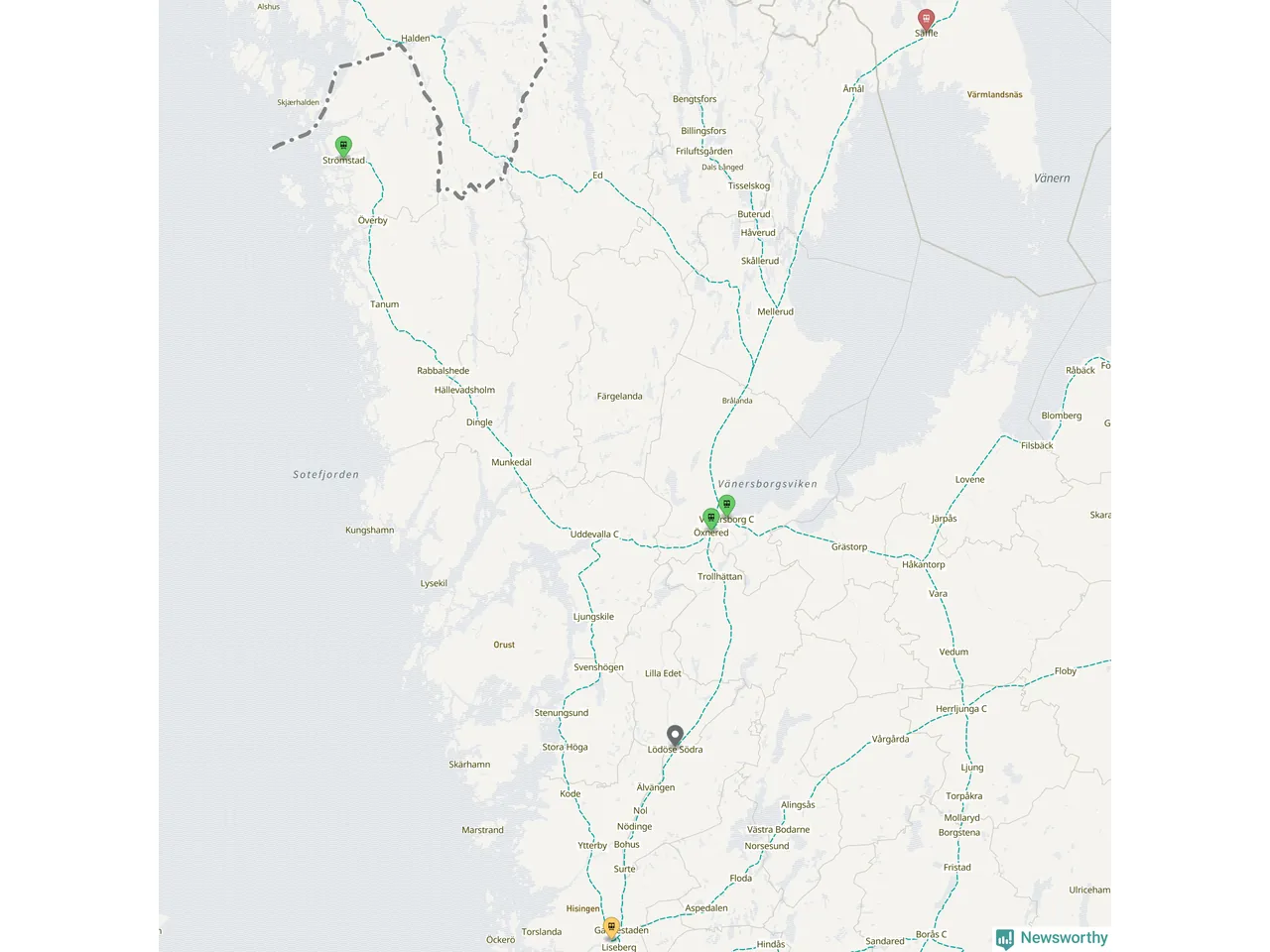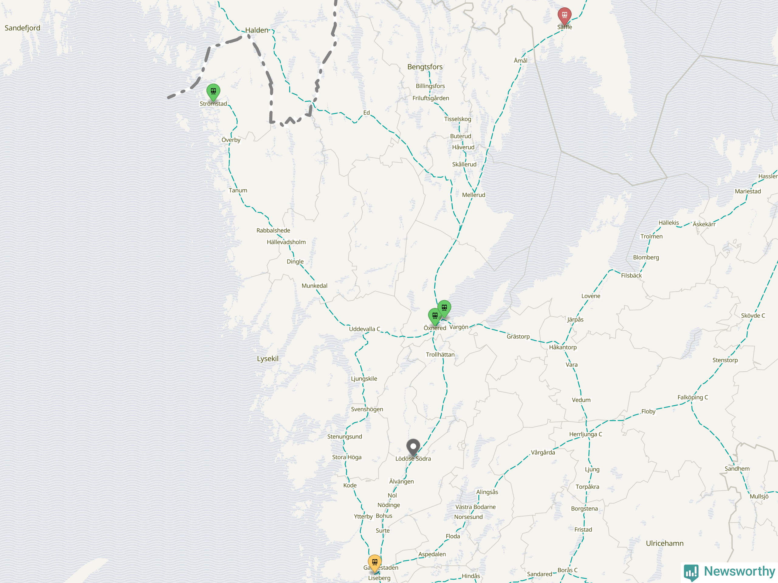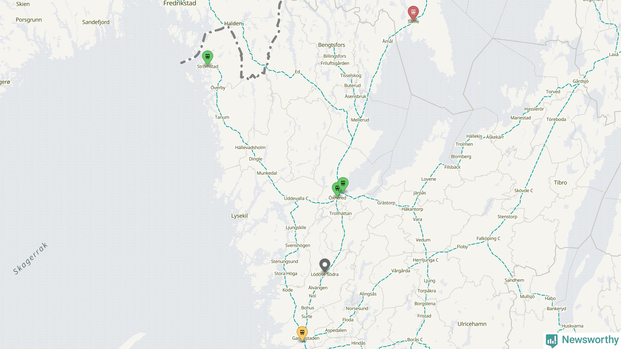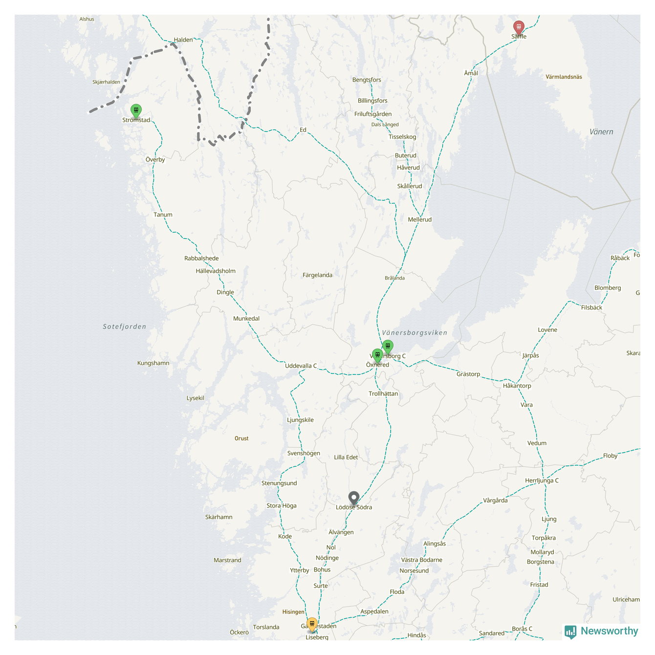 Kartdata från Mapbox, Newsworthy, OpenStreetMap och Trafikverket. Uppgifter om sträckor med passagerartrafik från jarnvag.net.