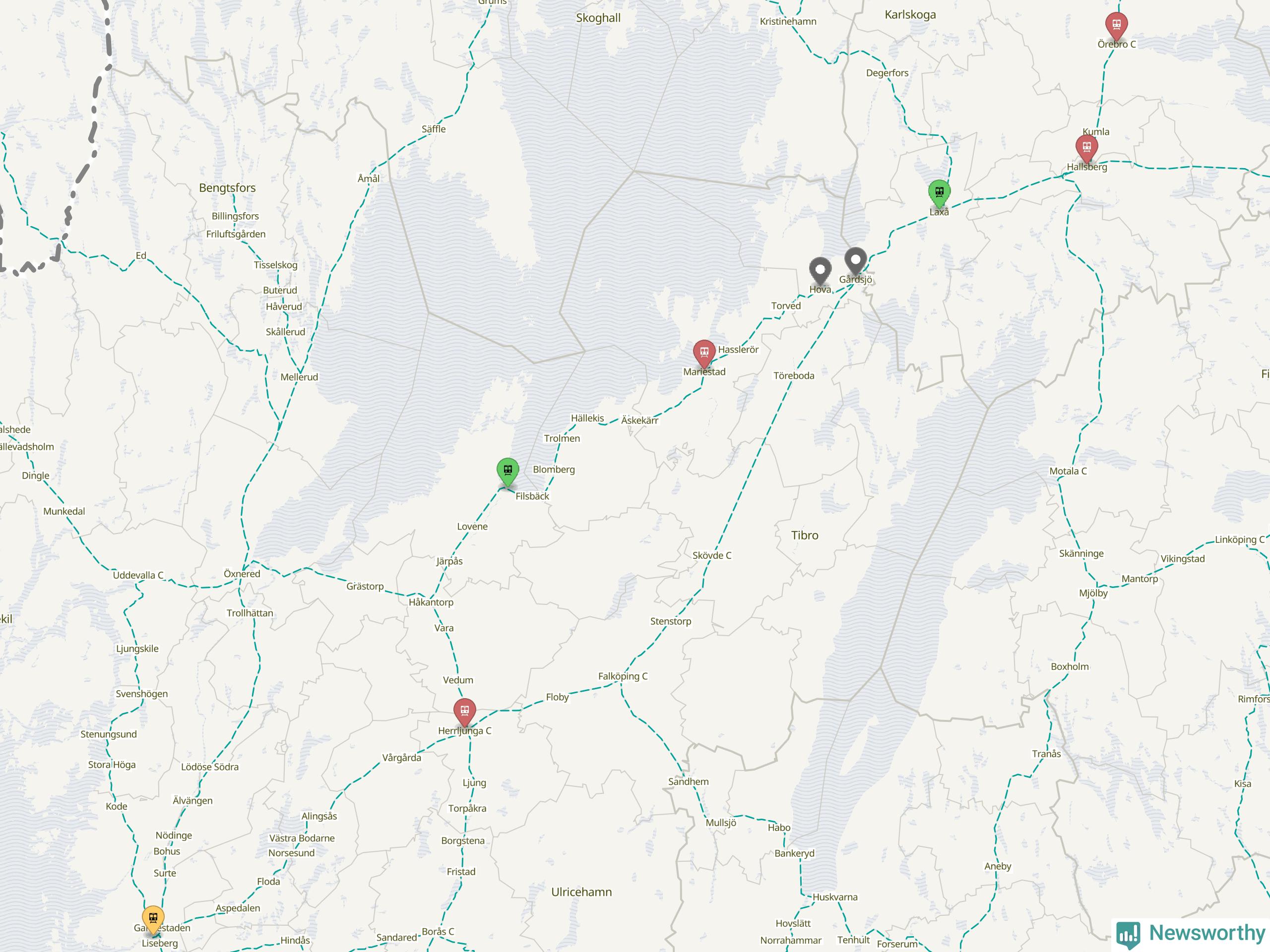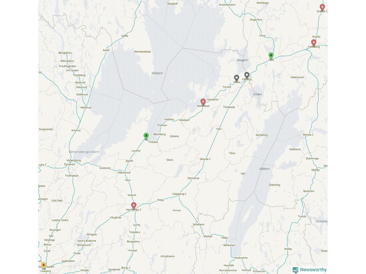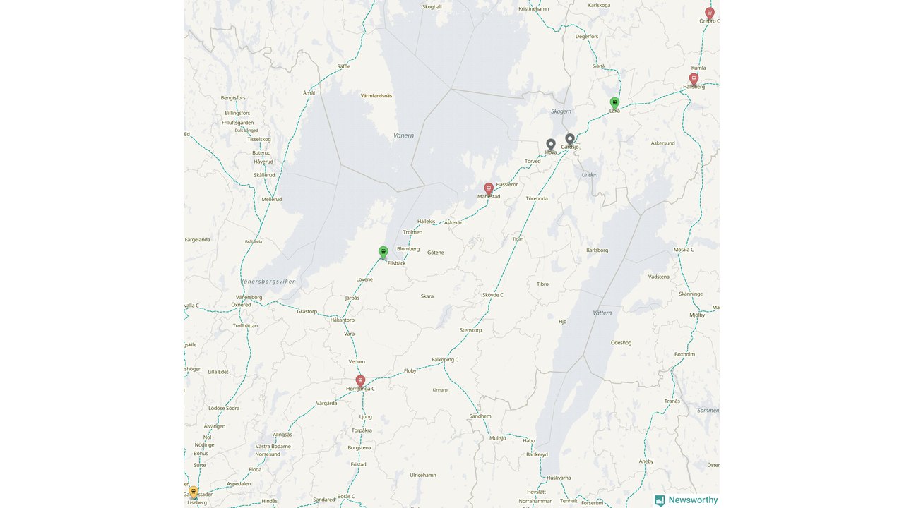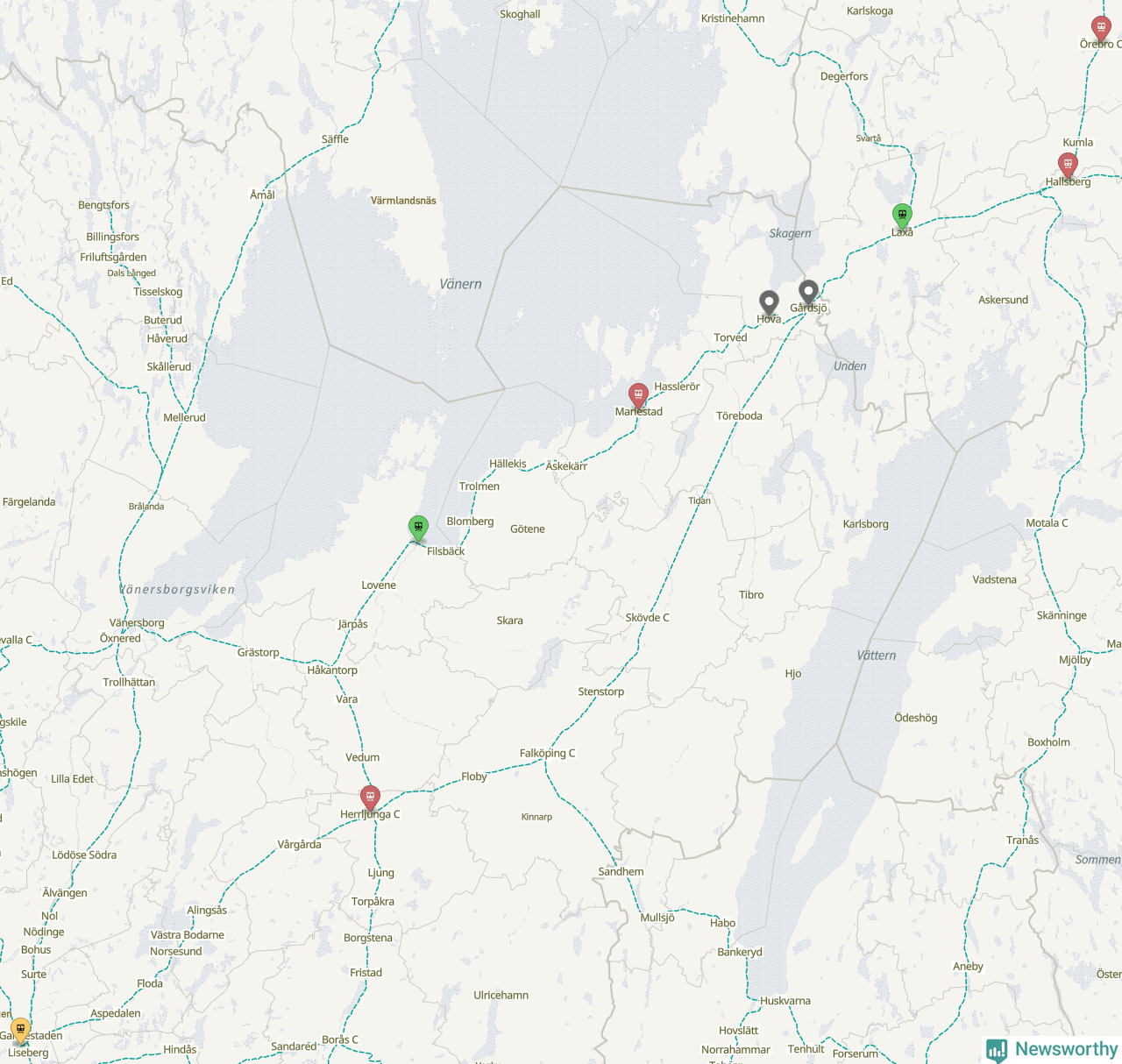 Kartdata från Mapbox, Newsworthy, OpenStreetMap och Trafikverket. Uppgifter om sträckor med passagerartrafik från jarnvag.net.