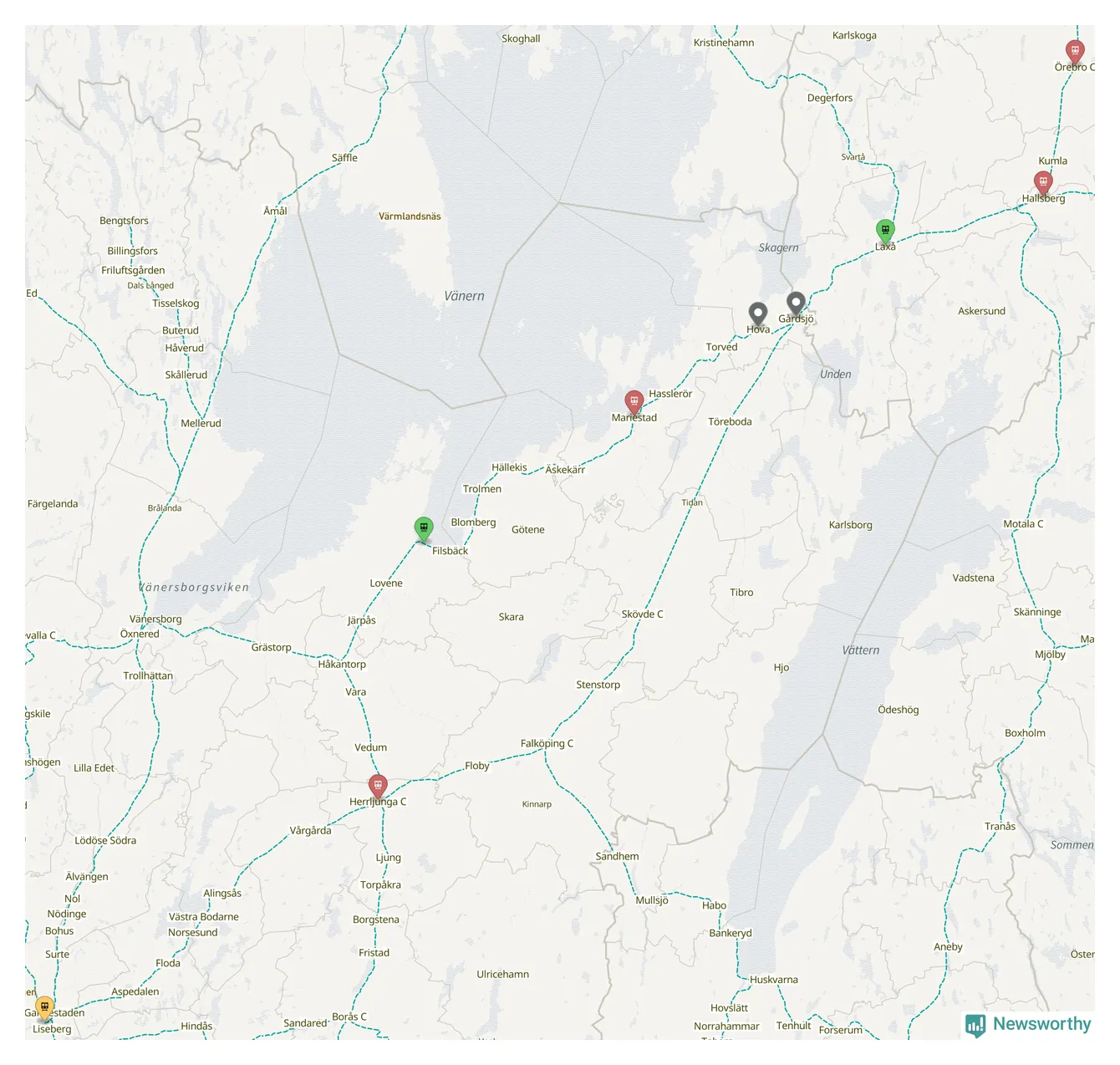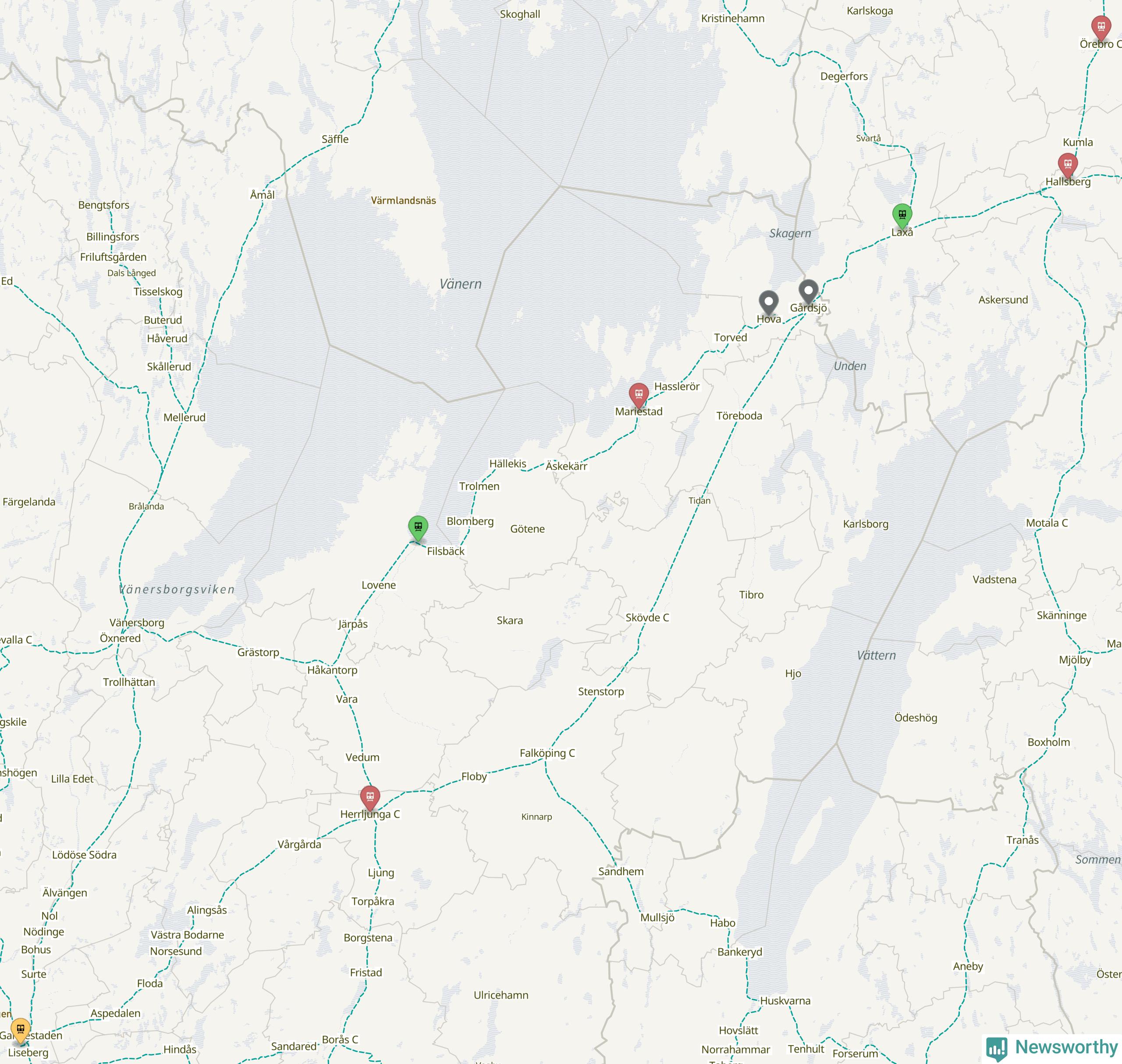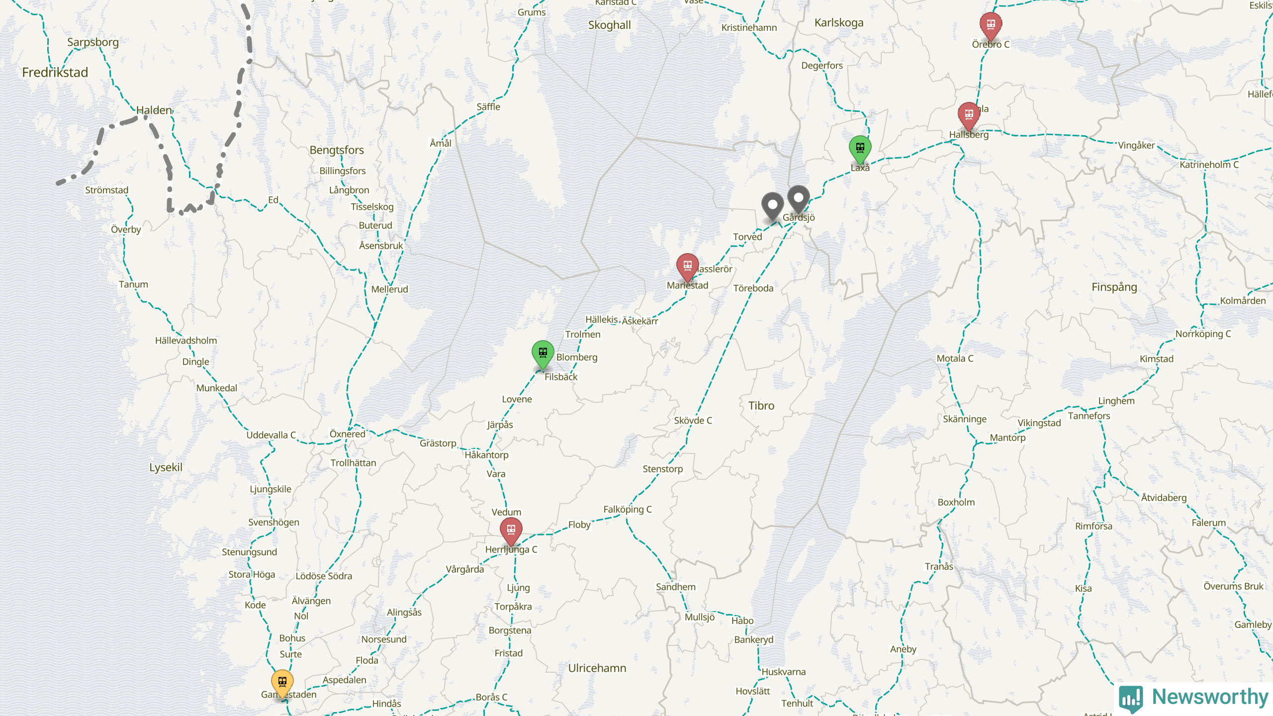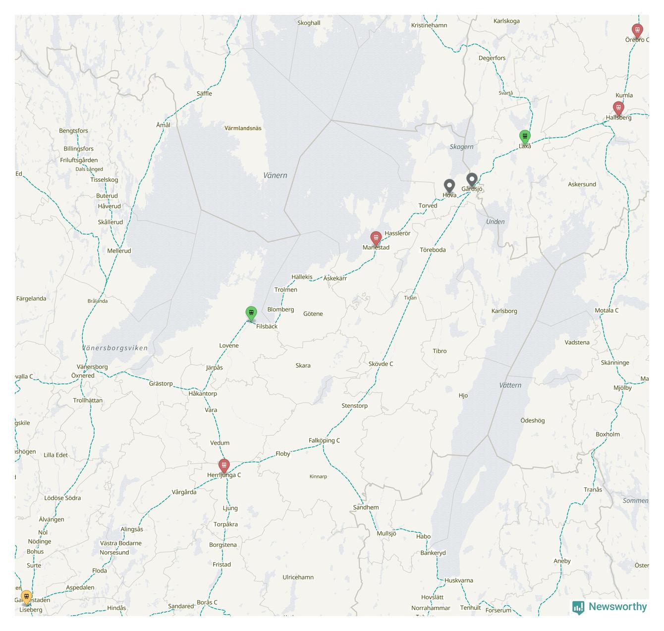 Kartdata från Mapbox, Newsworthy, OpenStreetMap och Trafikverket. Uppgifter om sträckor med passagerartrafik från jarnvag.net.
