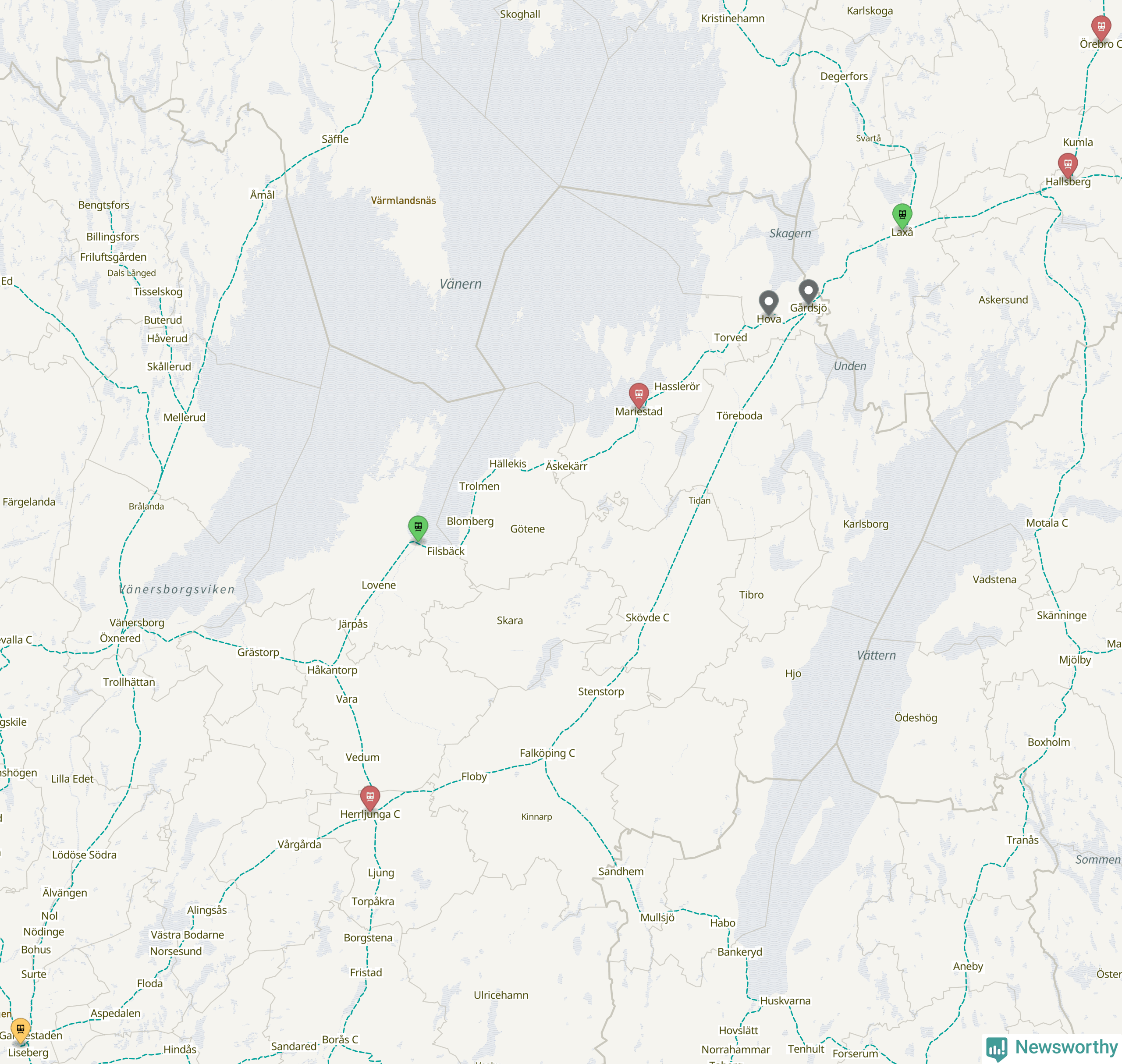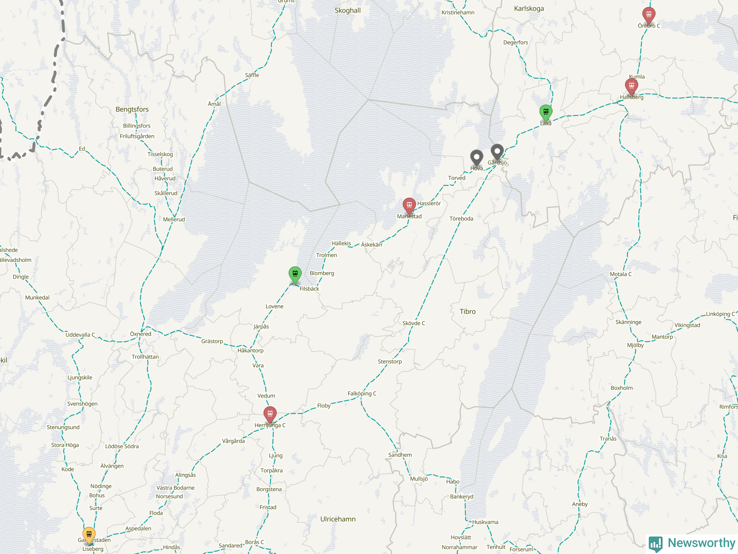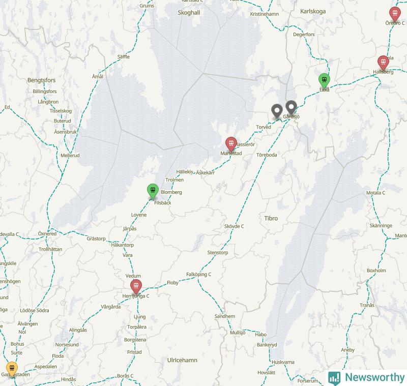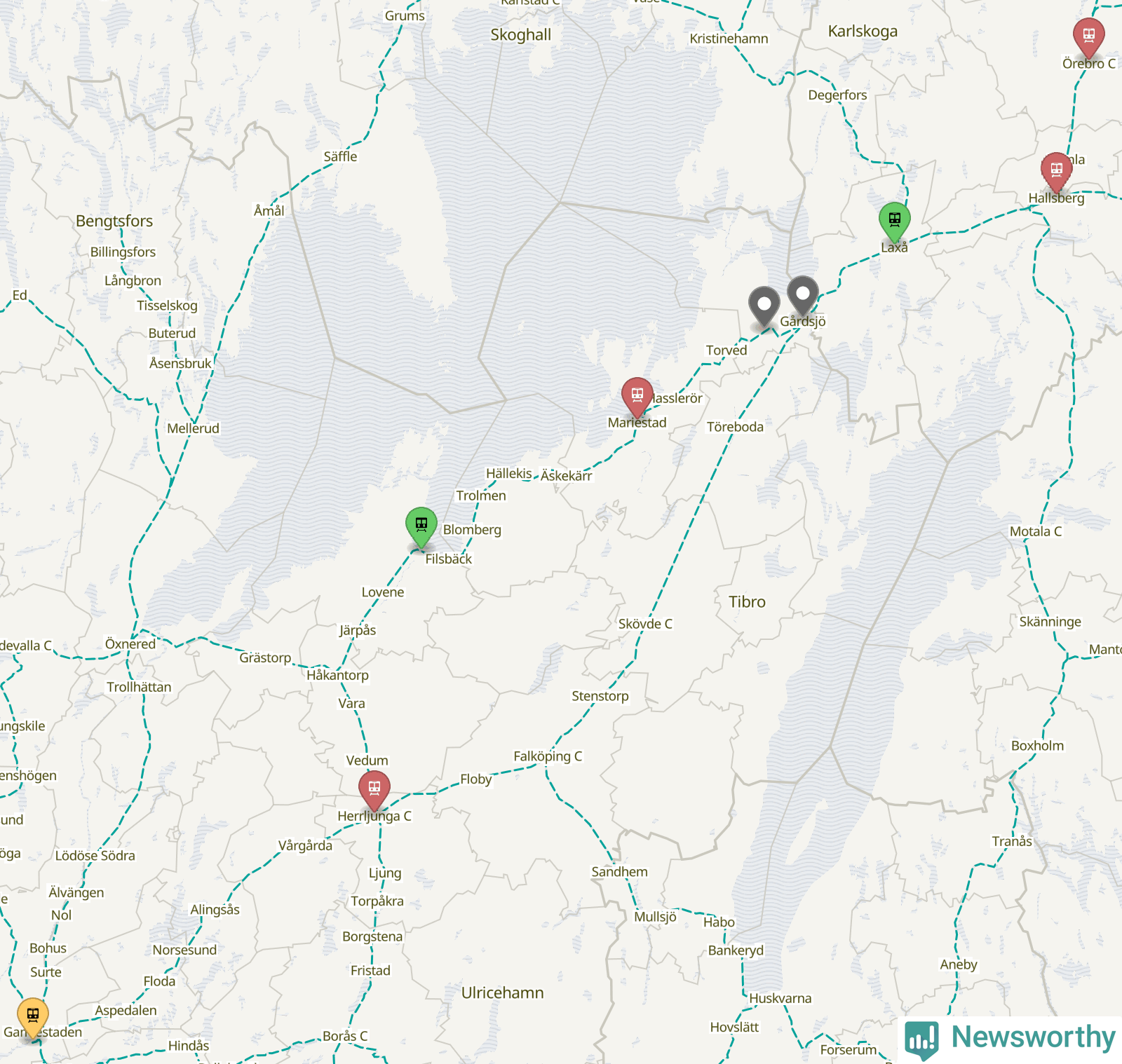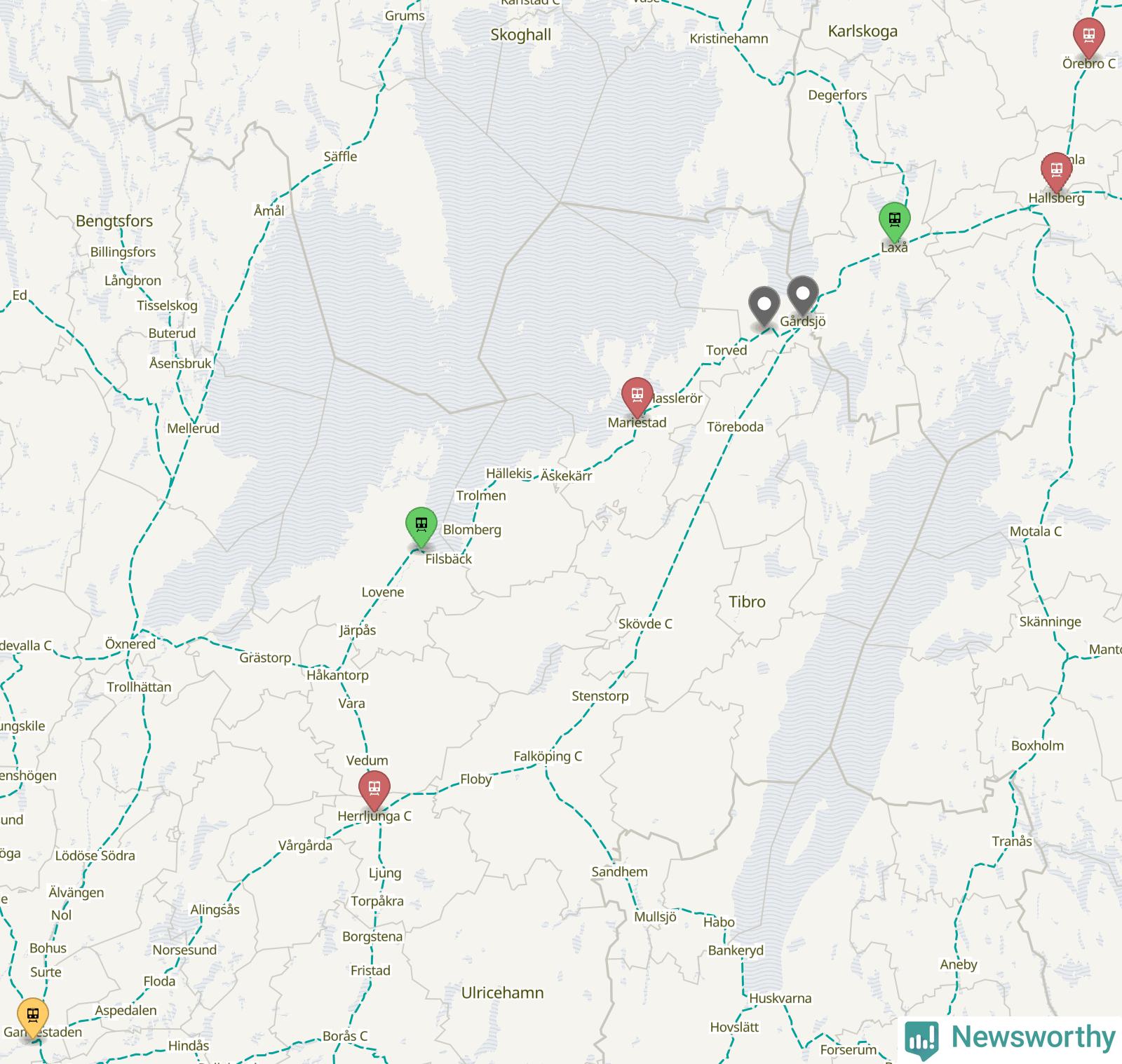 4 juni 11.28–14.10olyckaStopp i tågtrafiken mellan Skövde och Töreboda på grund av en olycka