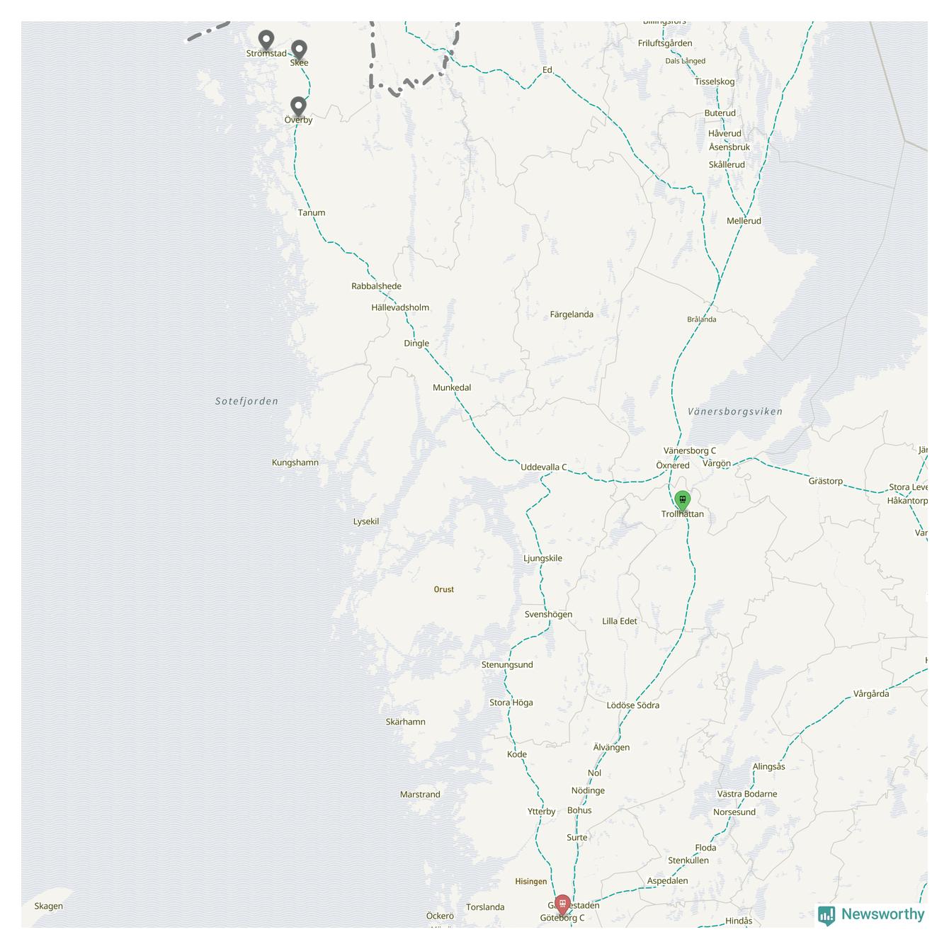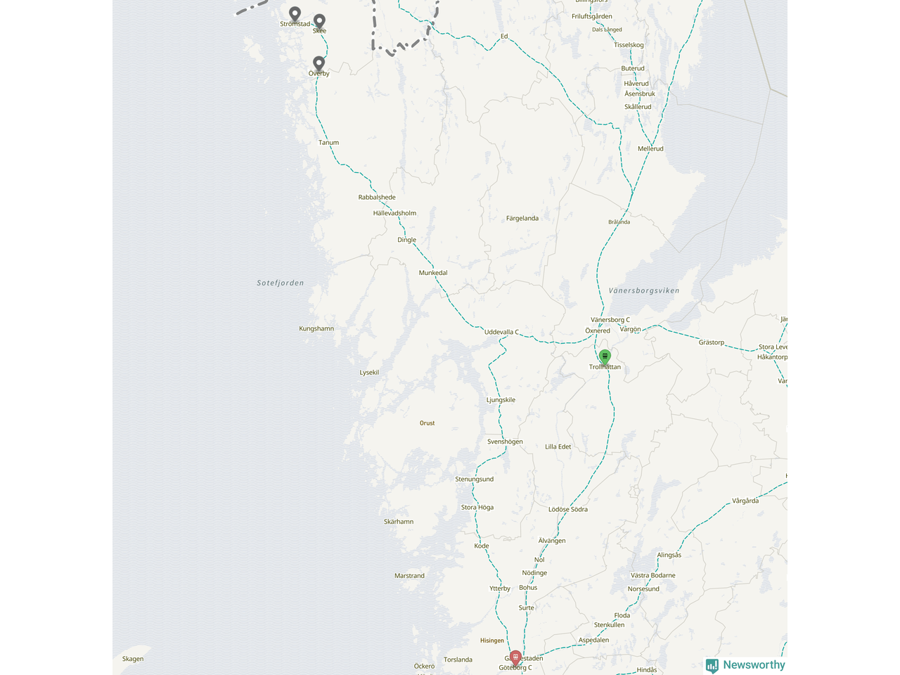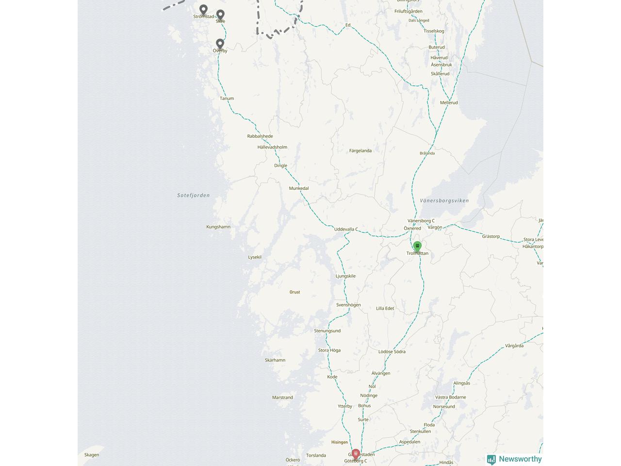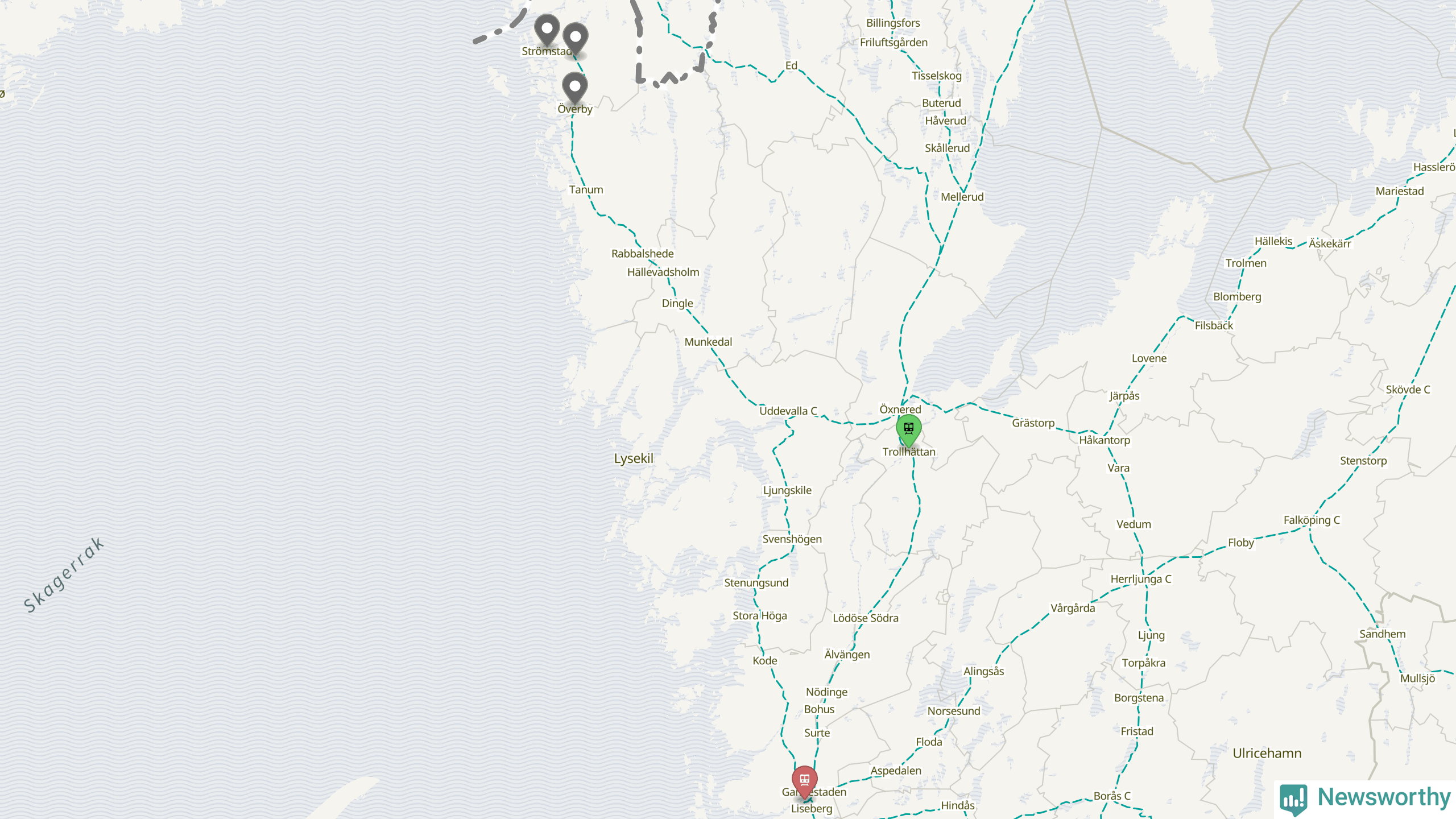 Kartdata från Mapbox, Newsworthy, OpenStreetMap och Trafikverket. Uppgifter om sträckor med passagerartrafik från jarnvag.net.