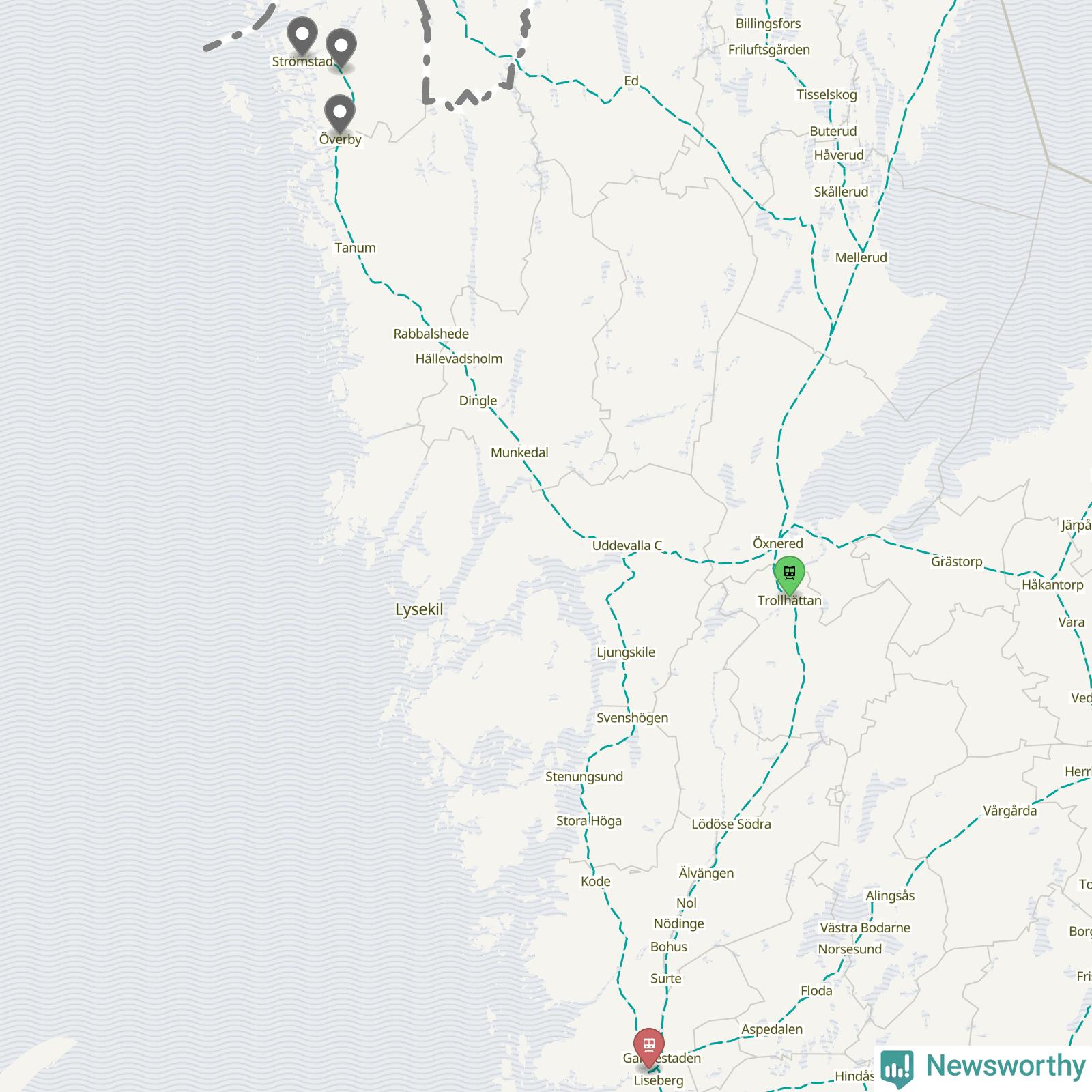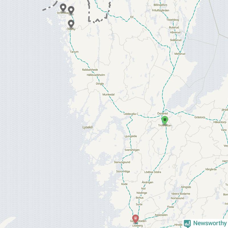 Totalt var 13 procent av de ankommande tågen i Strömstads kommun mer än fem minuter försenade under juni bland de tåg som angjorde någon av stationerna Överby, Skee och Strömstad. Fyra procent var så mycket som en kvart försenade.