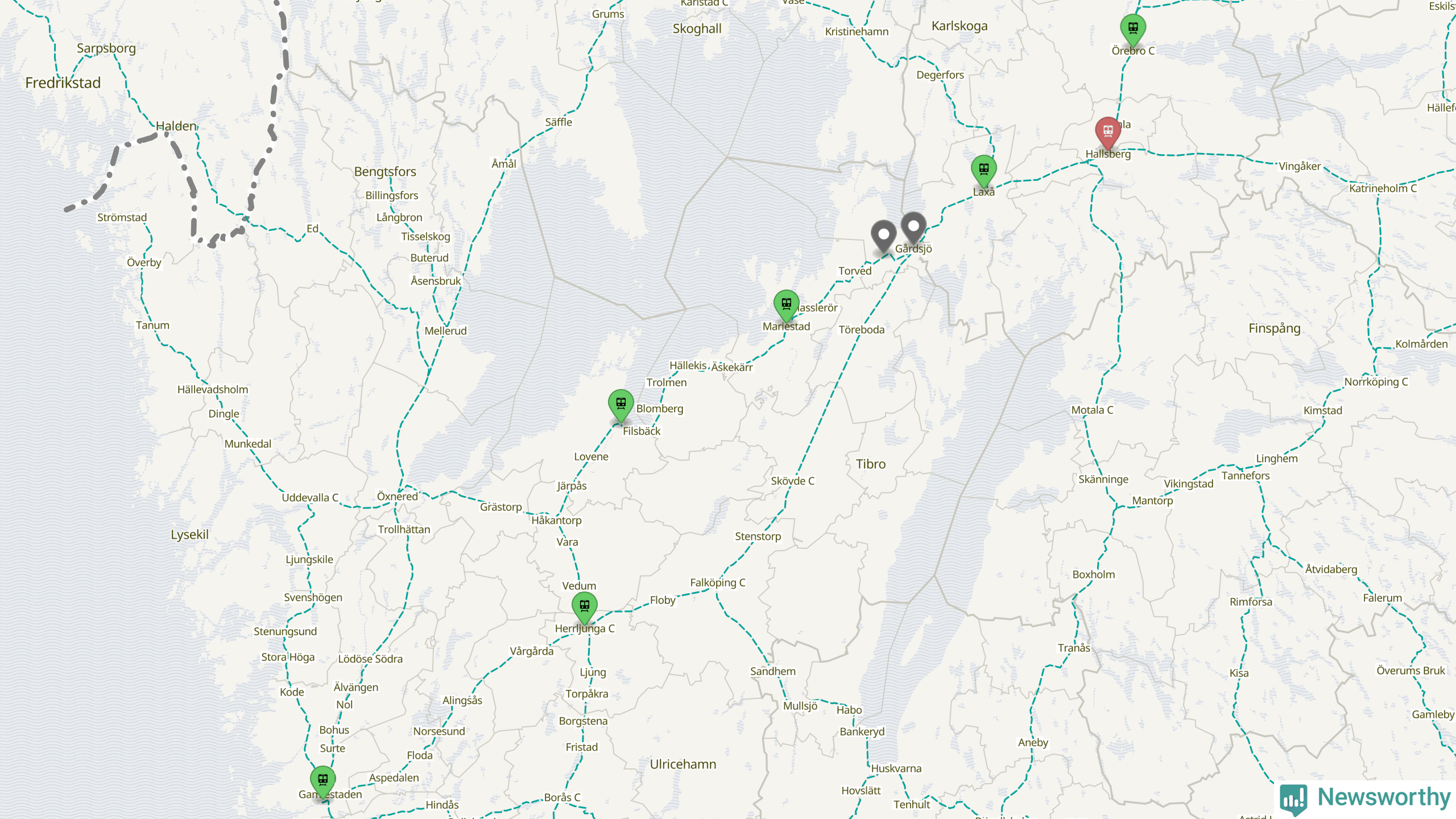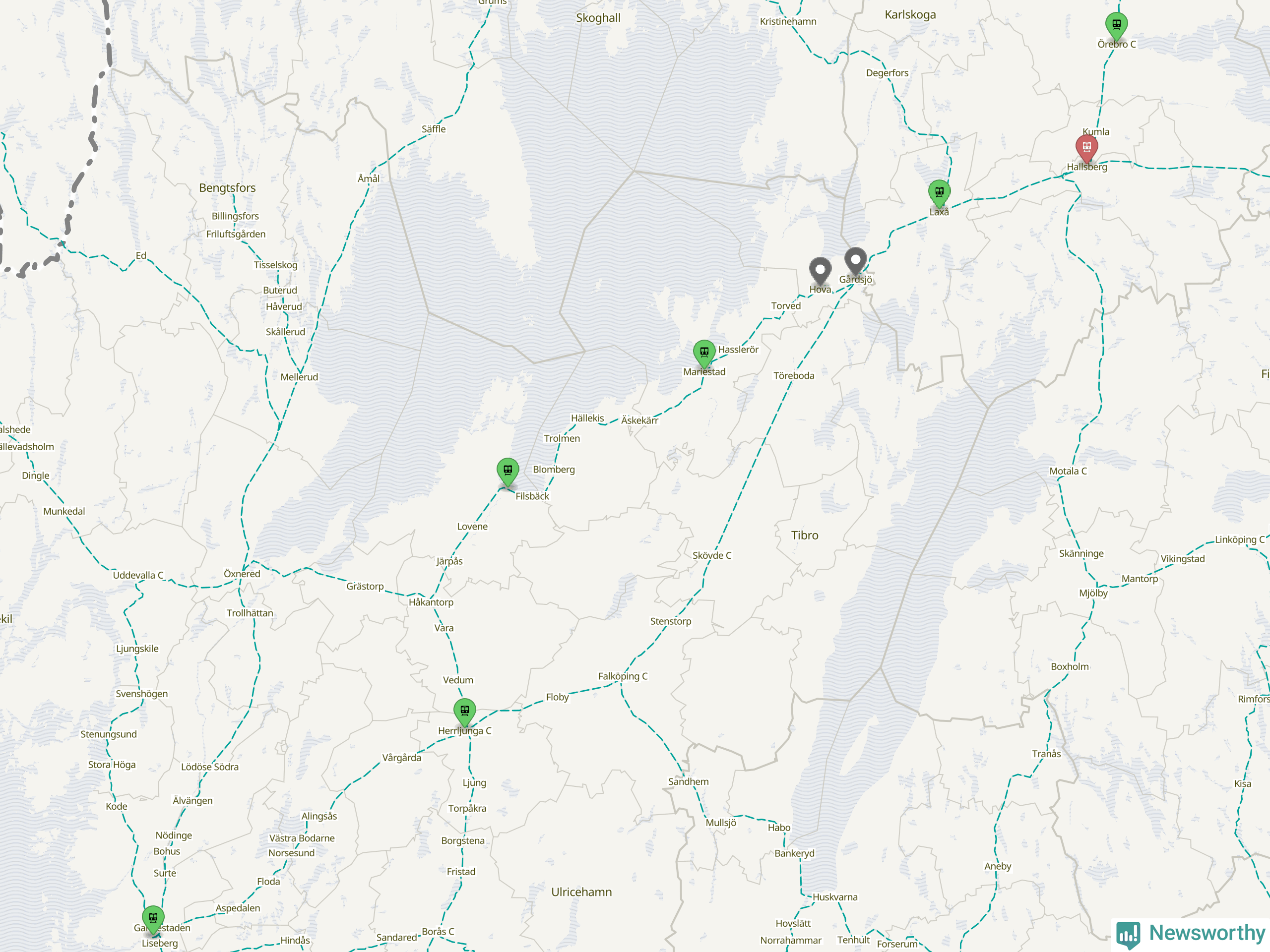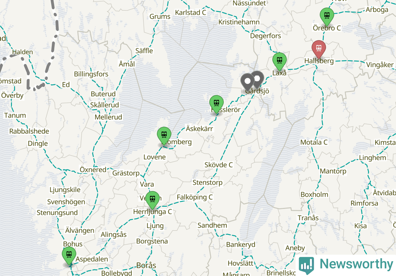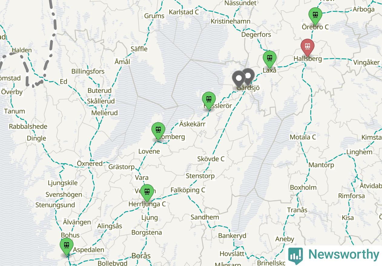 Kartdata från Mapbox, Newsworthy, OpenStreetMap och Trafikverket. Uppgifter om sträckor med passagerartrafik från jarnvag.net.