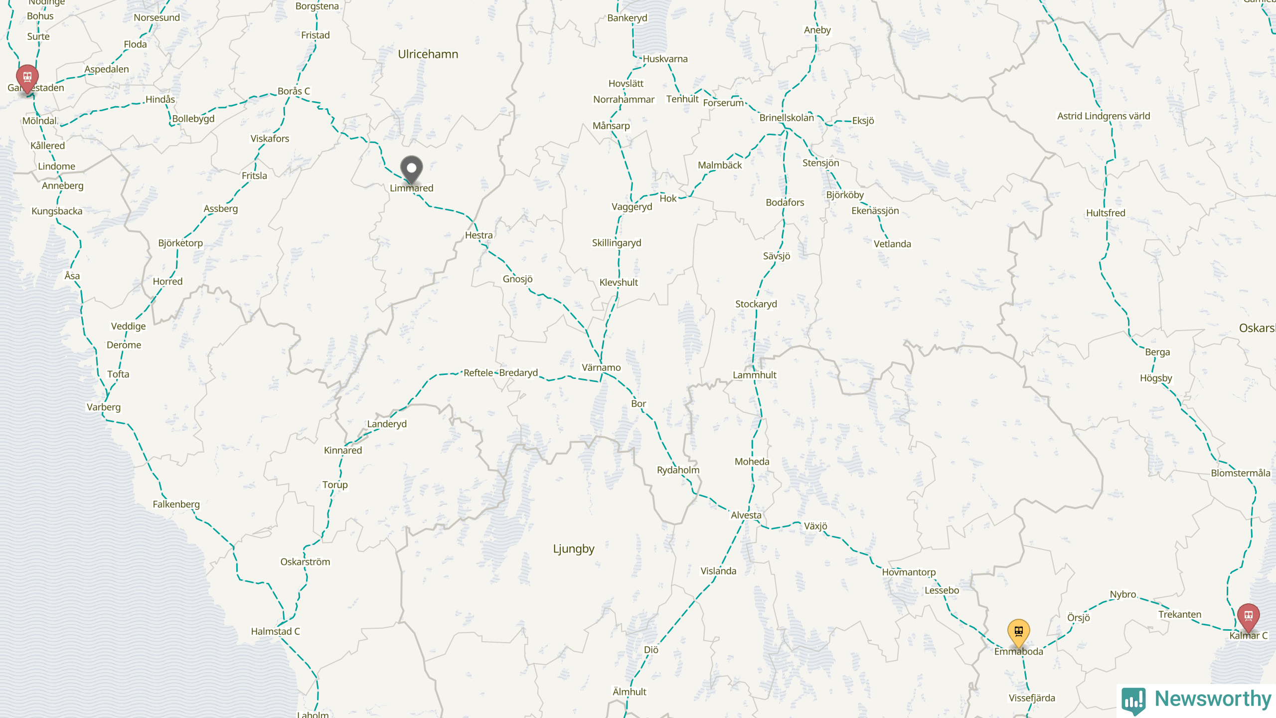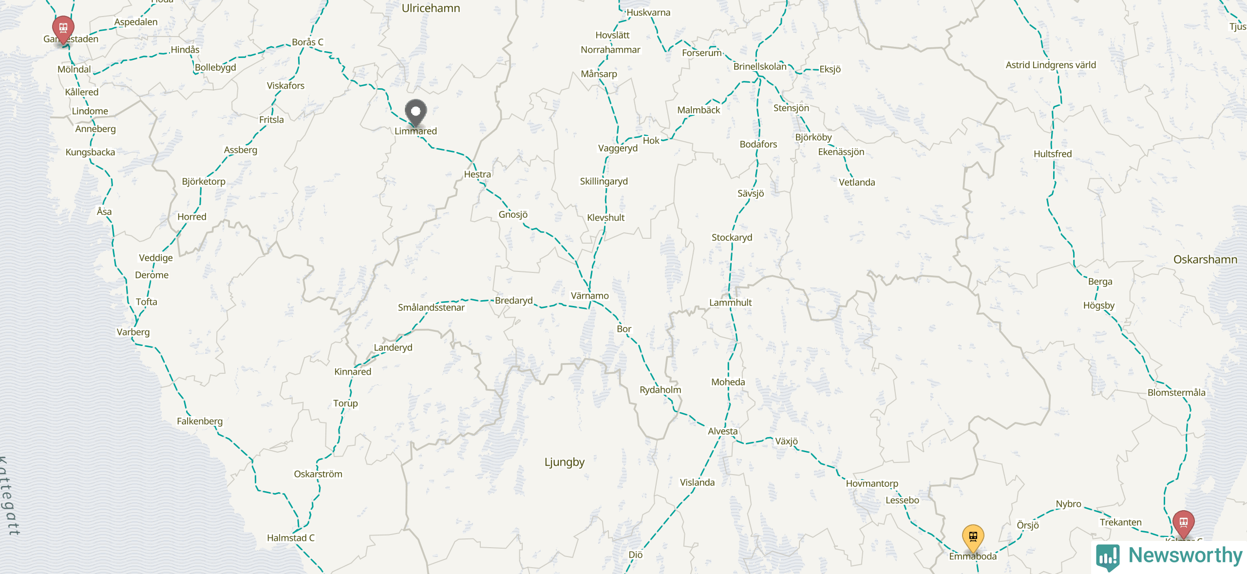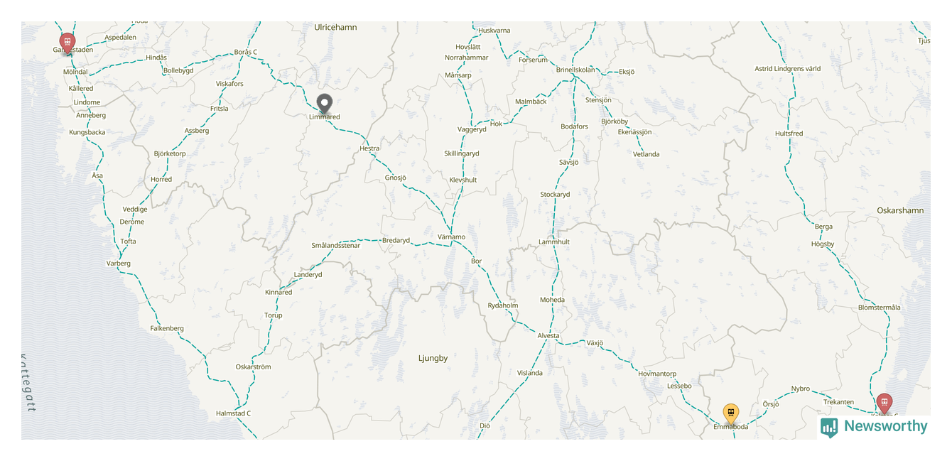 Kartdata från Mapbox, Newsworthy, OpenStreetMap och Trafikverket. Uppgifter om sträckor med passagerartrafik från jarnvag.net.