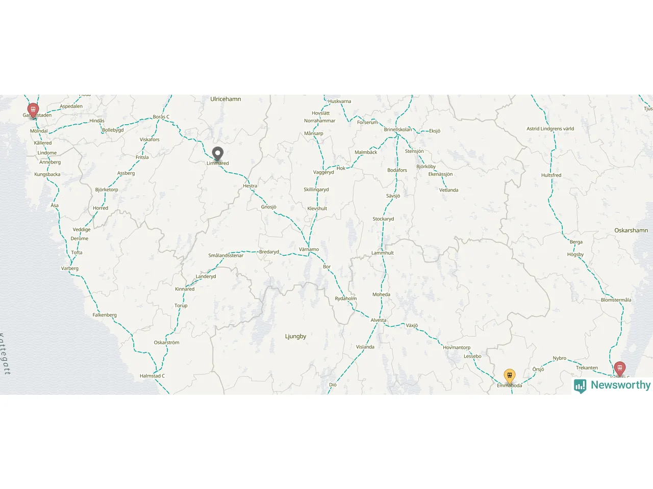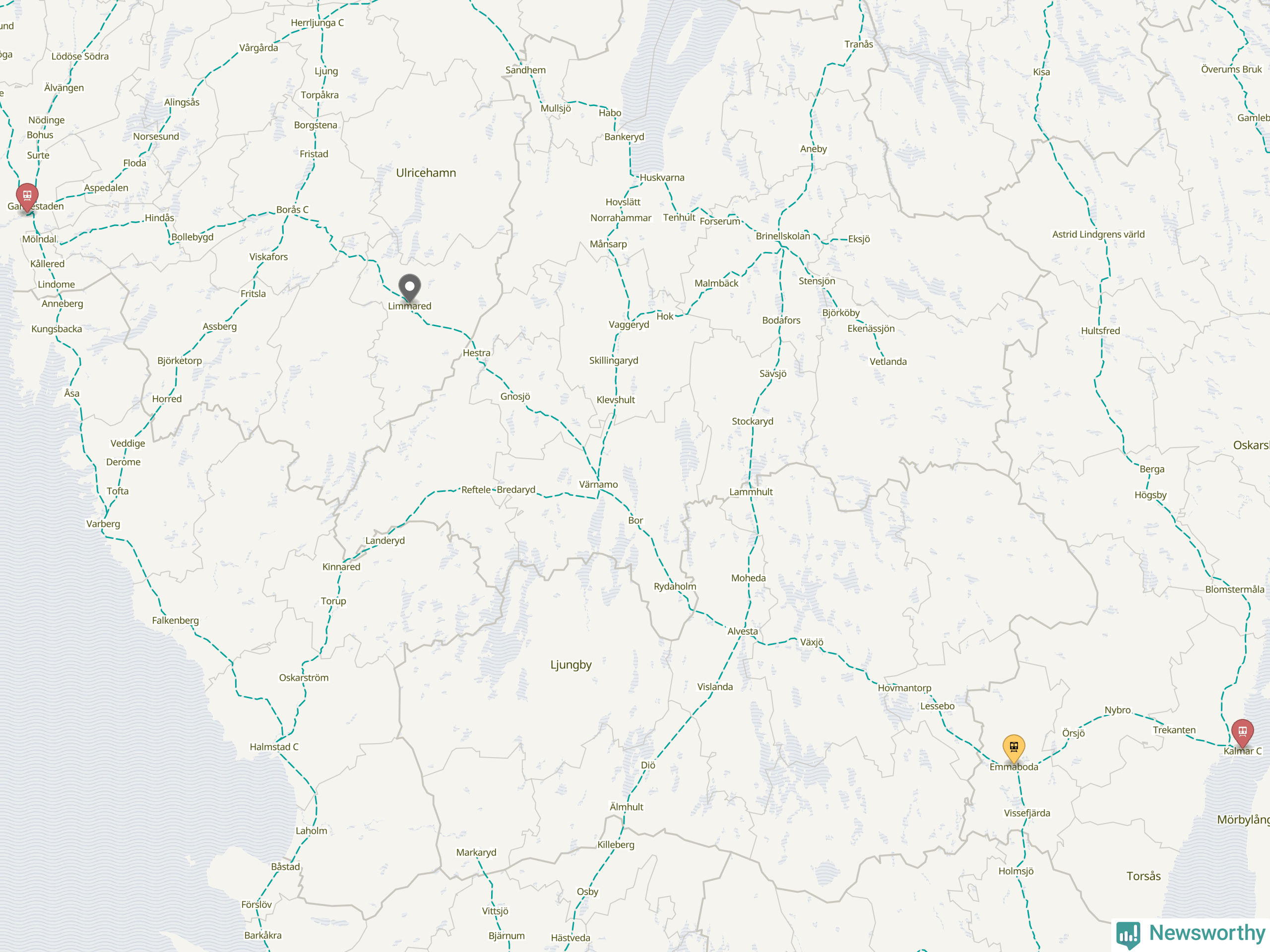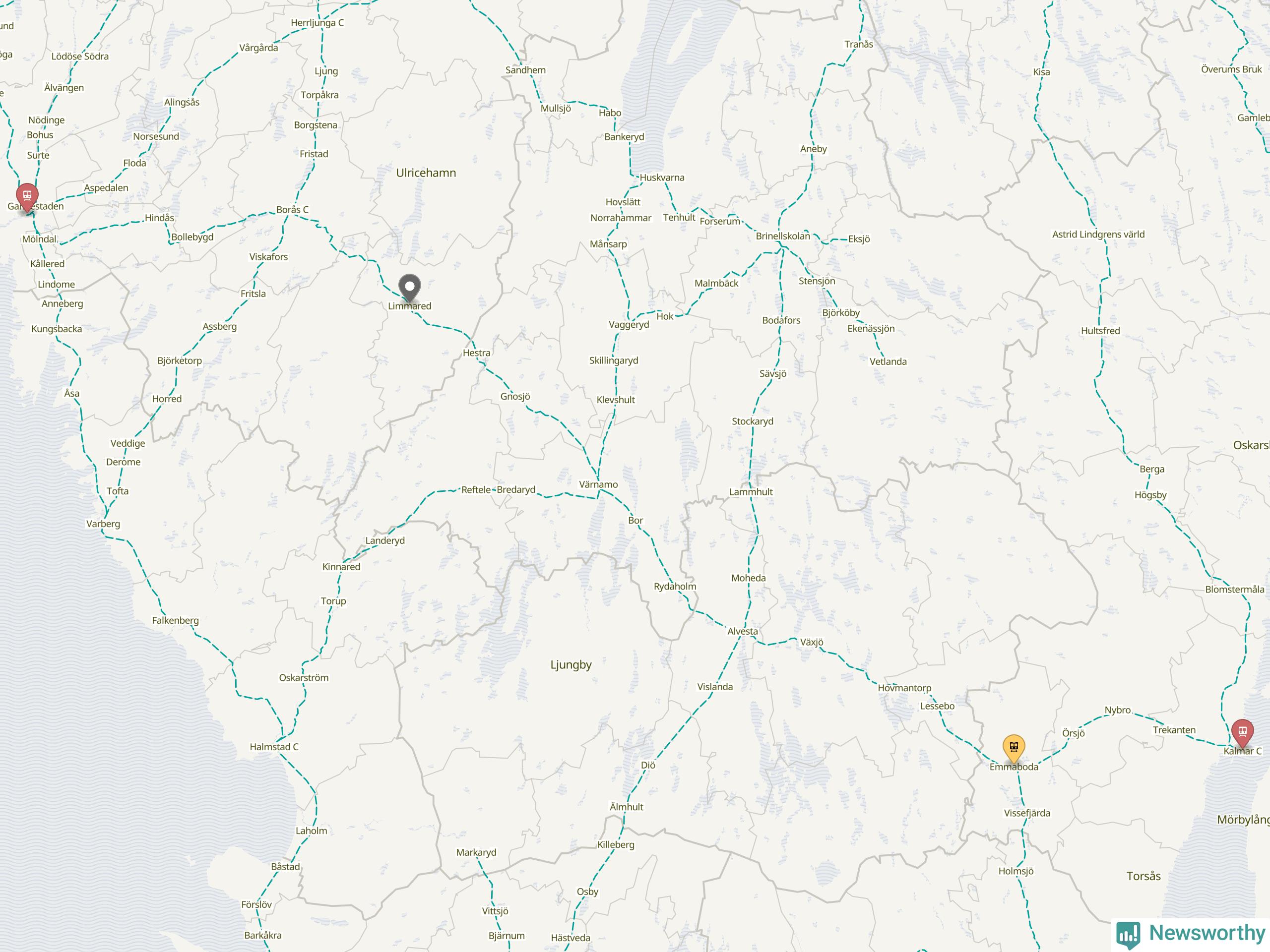 Kartdata från Mapbox, Newsworthy, OpenStreetMap och Trafikverket. Uppgifter om sträckor med passagerartrafik från jarnvag.net.