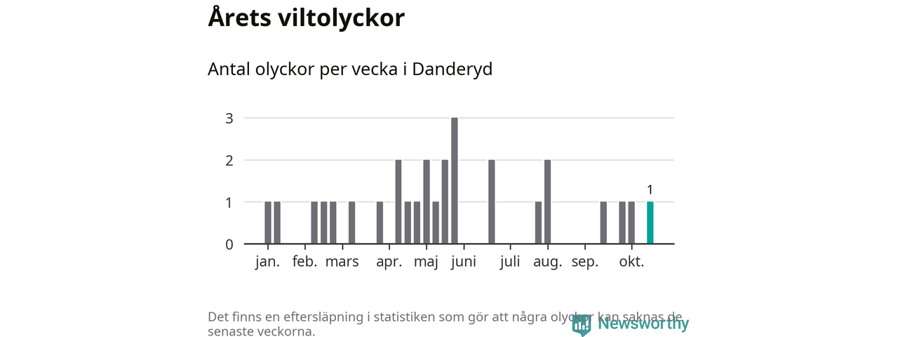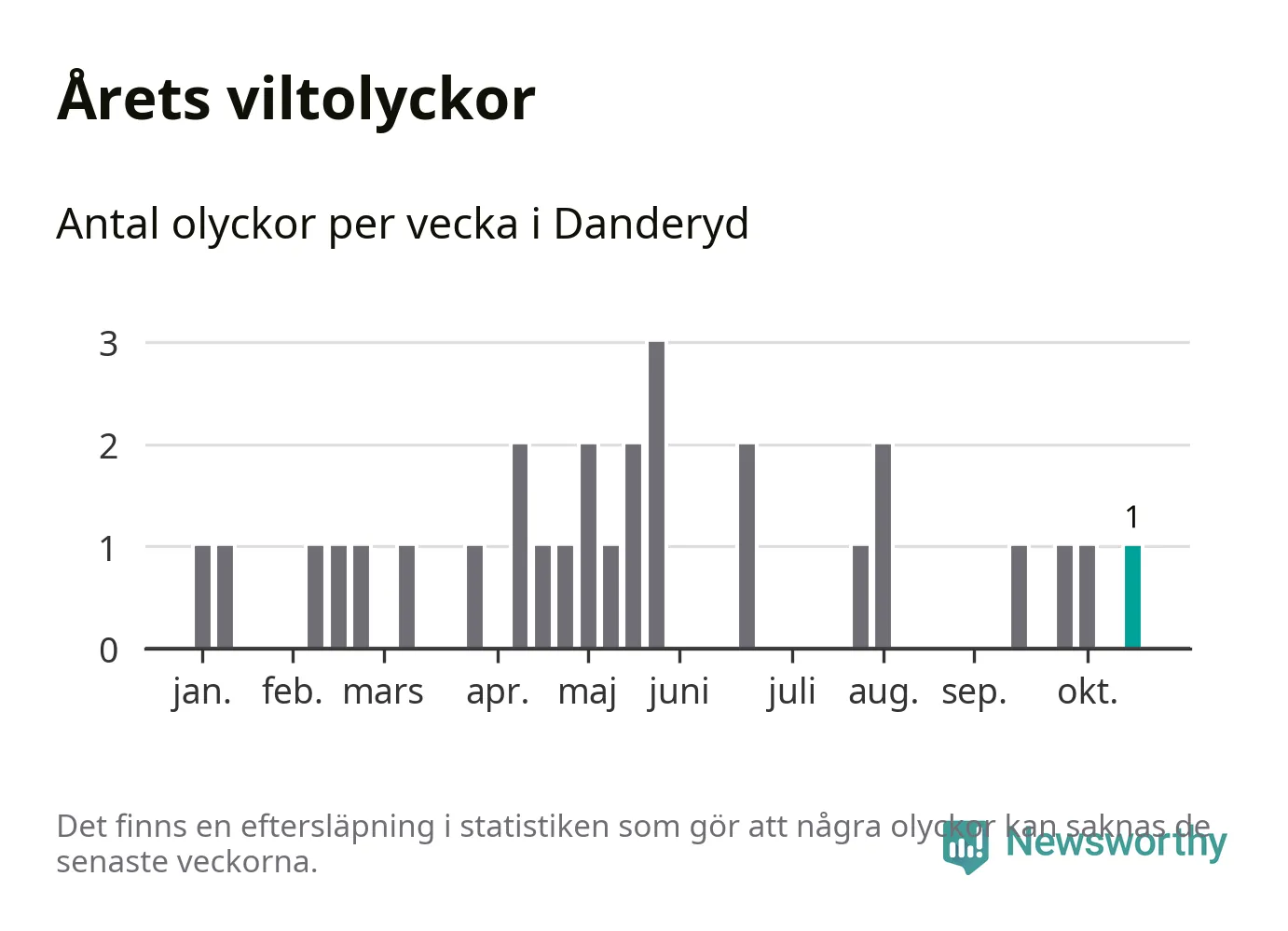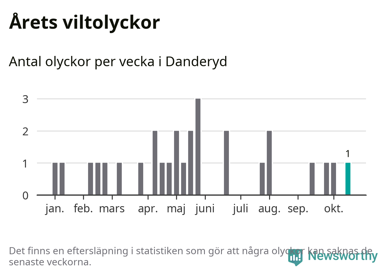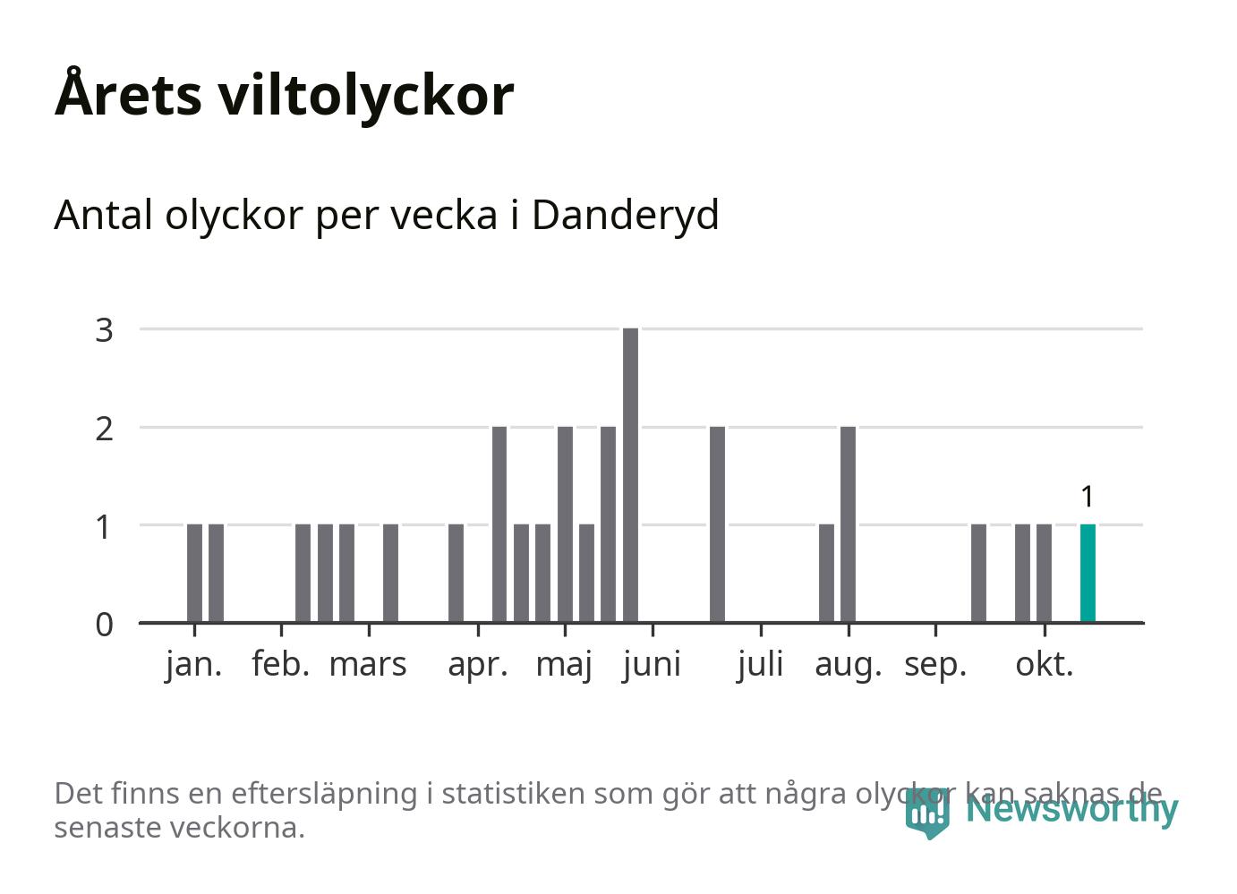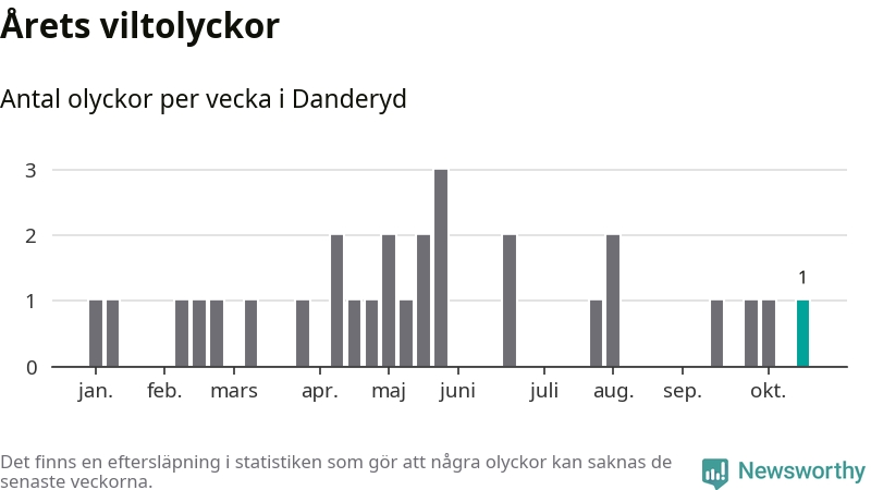 Från förra veckan (vecka 43) har hittills en viltolycka rapporterats in i Danderyds kommun.