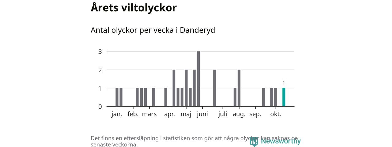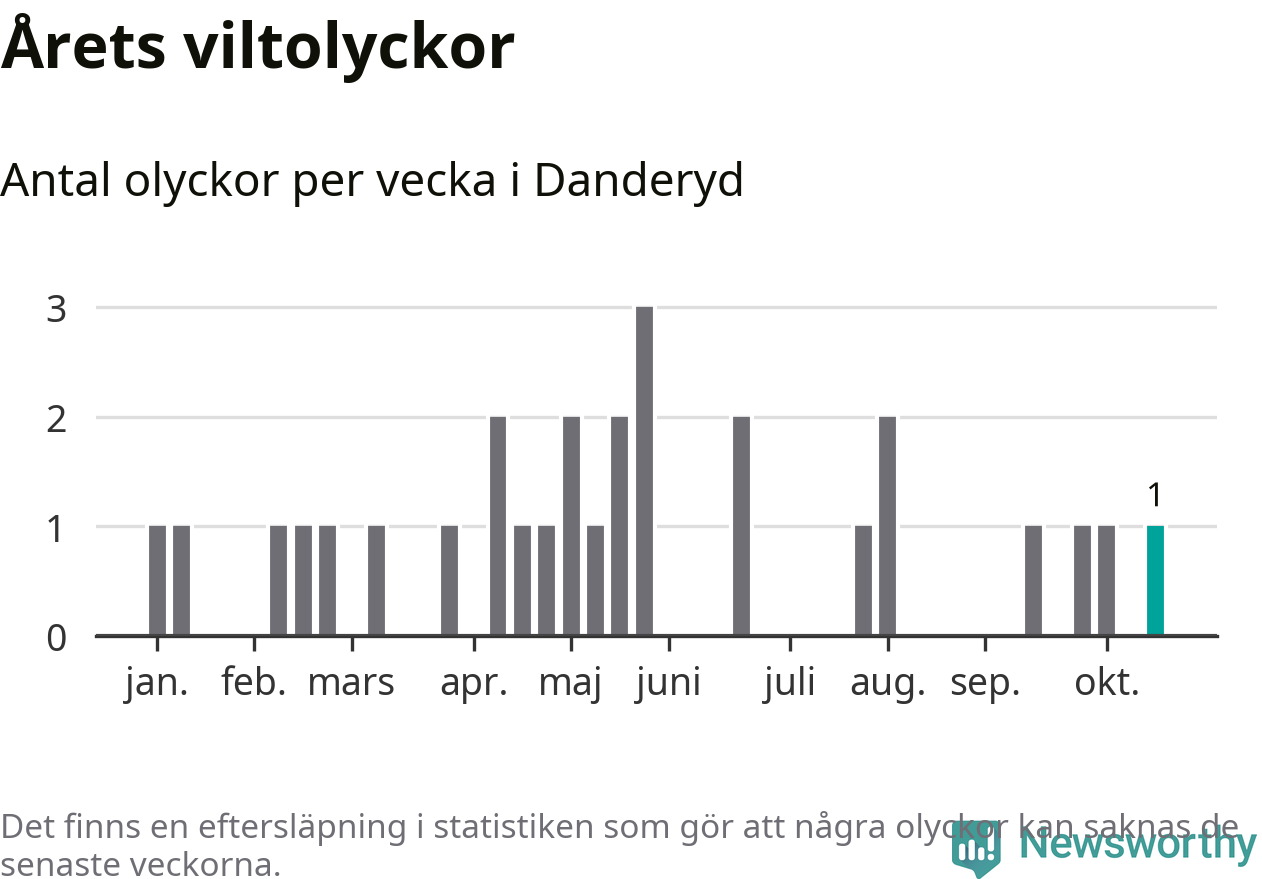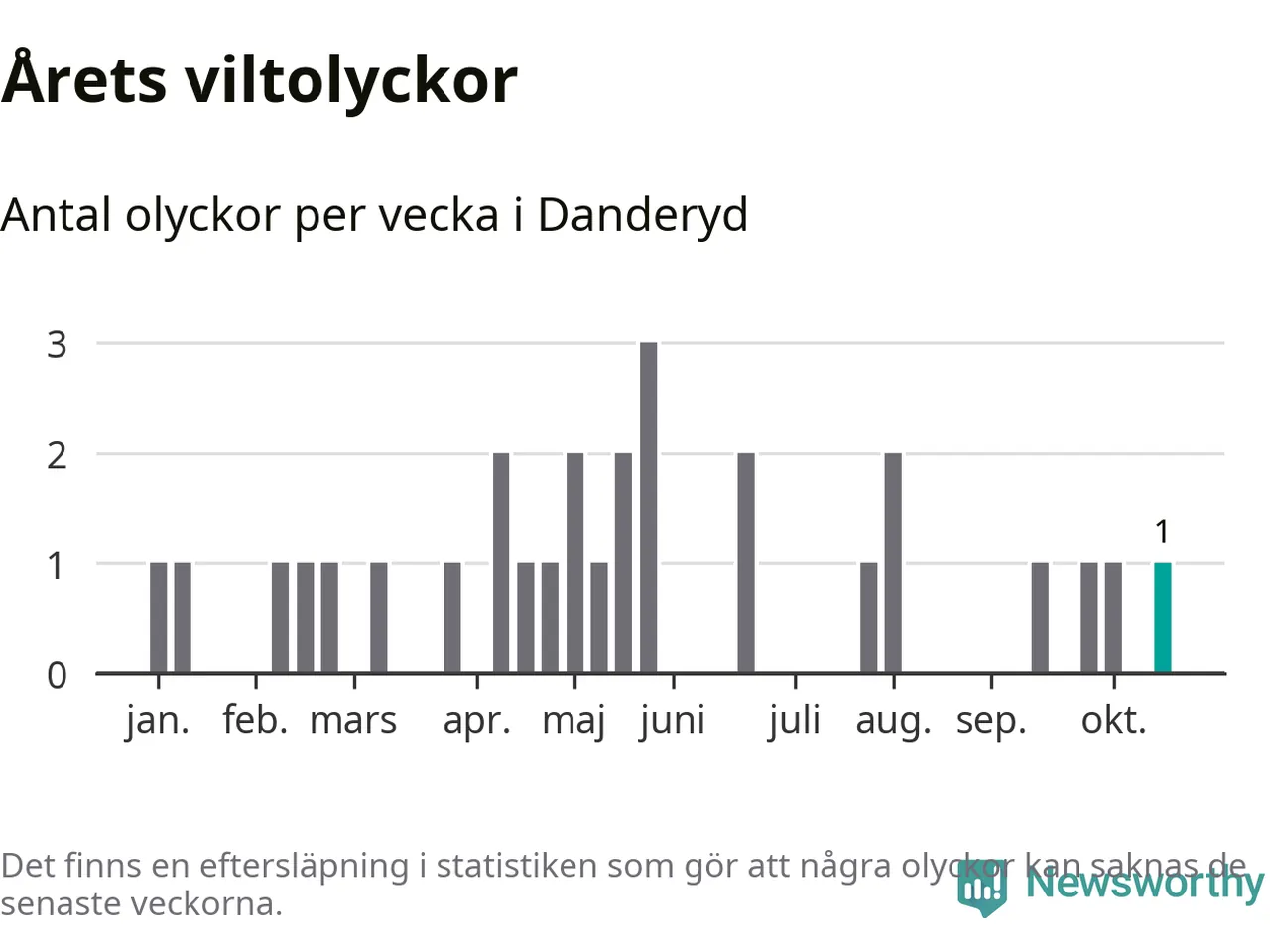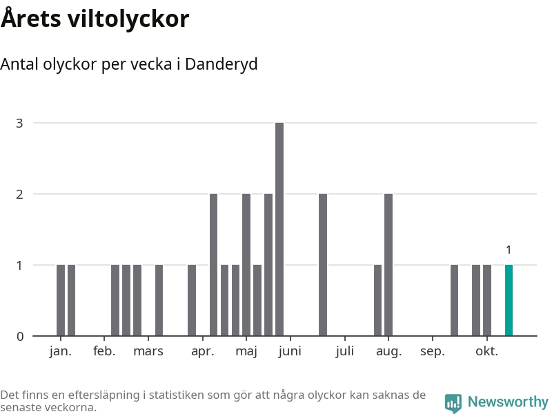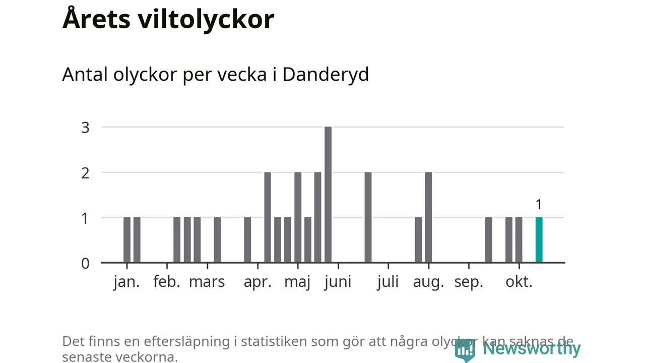 Från förra veckan (vecka 43) har hittills en viltolycka rapporterats in i Danderyds kommun.