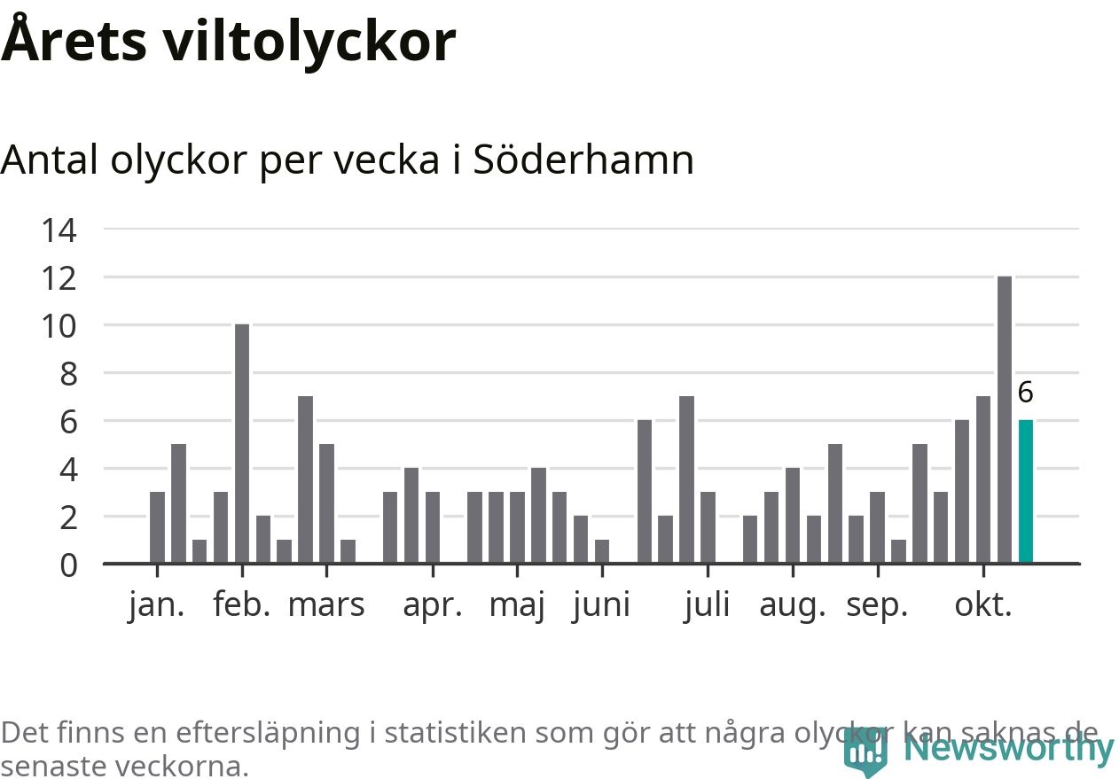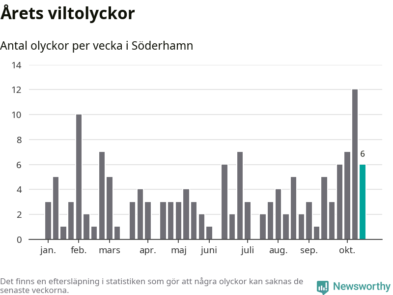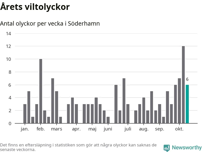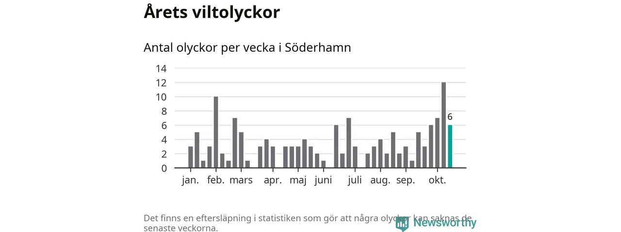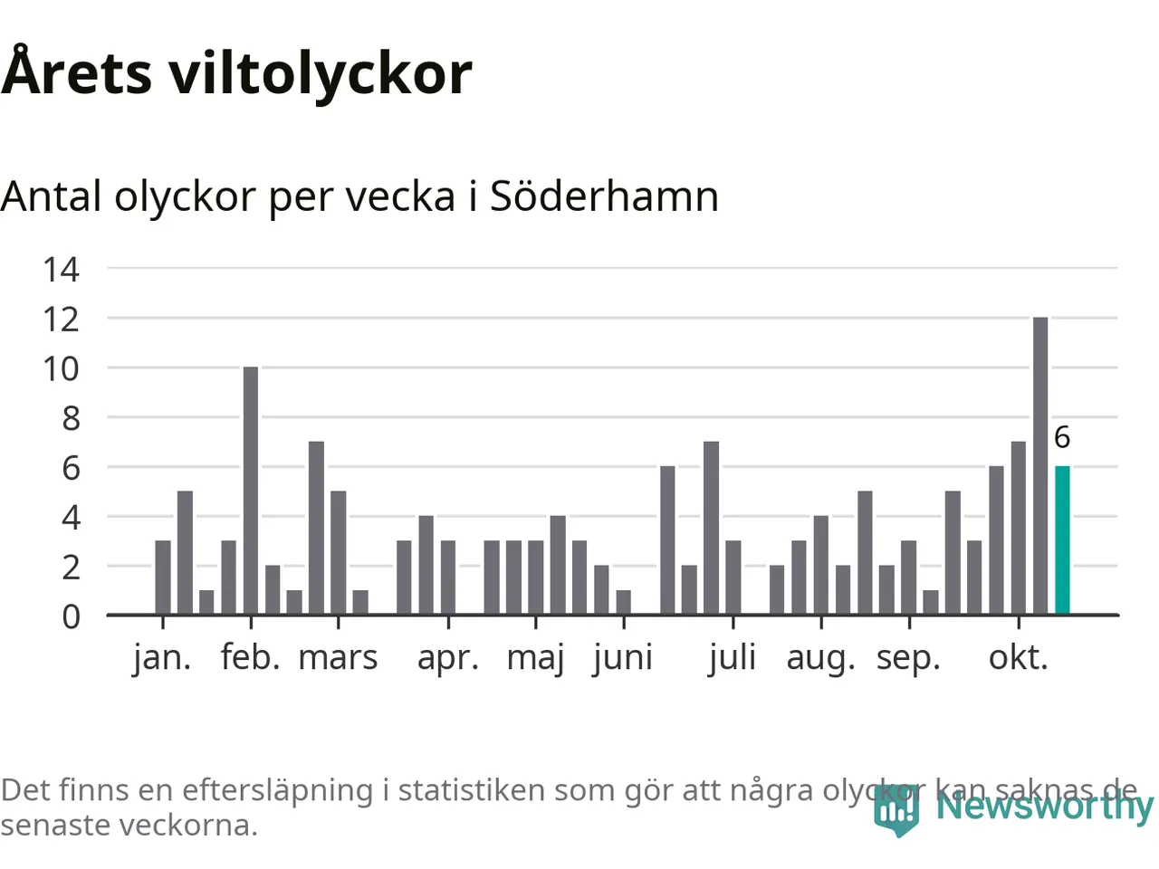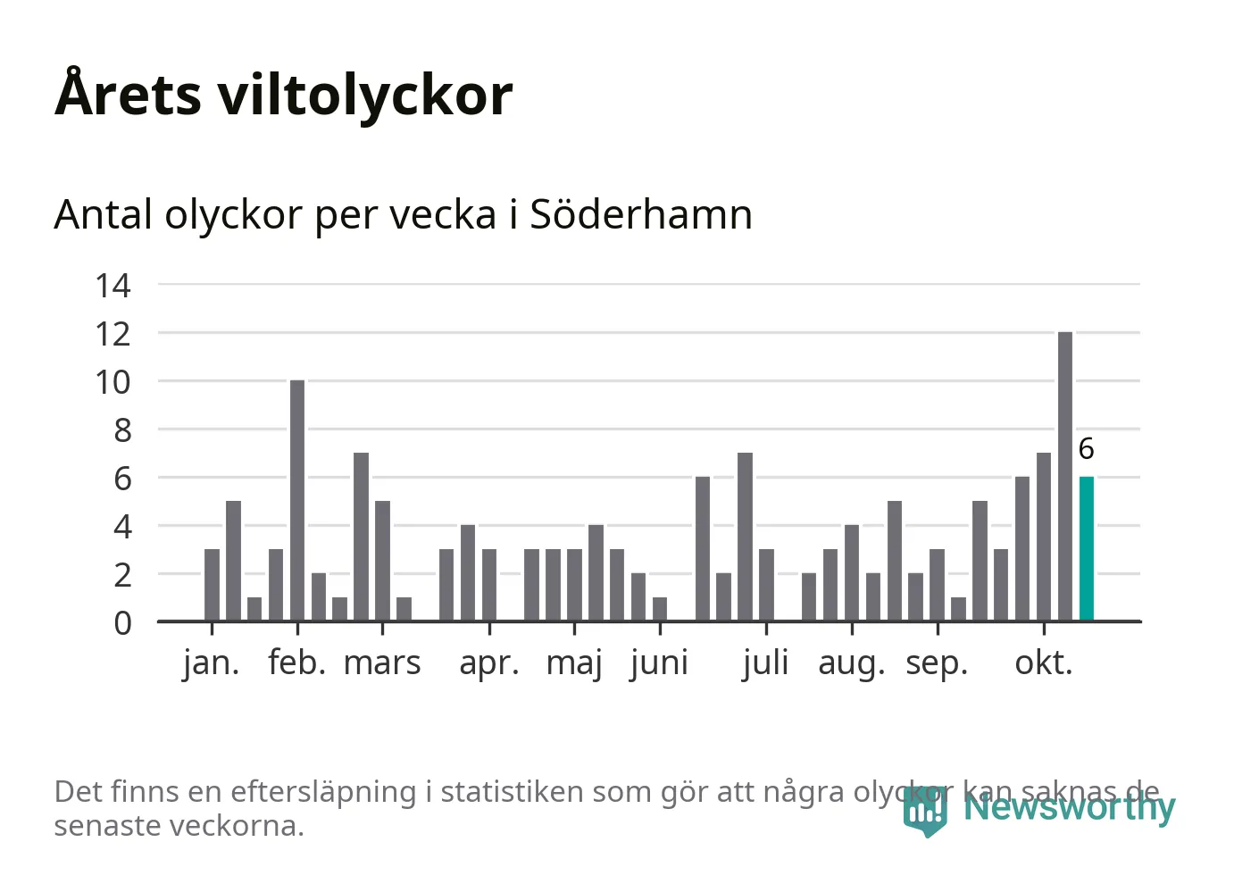 Hittills har sex viltolyckor rapporterats in i Söderhamns kommun från vecka 43. Se listan här.