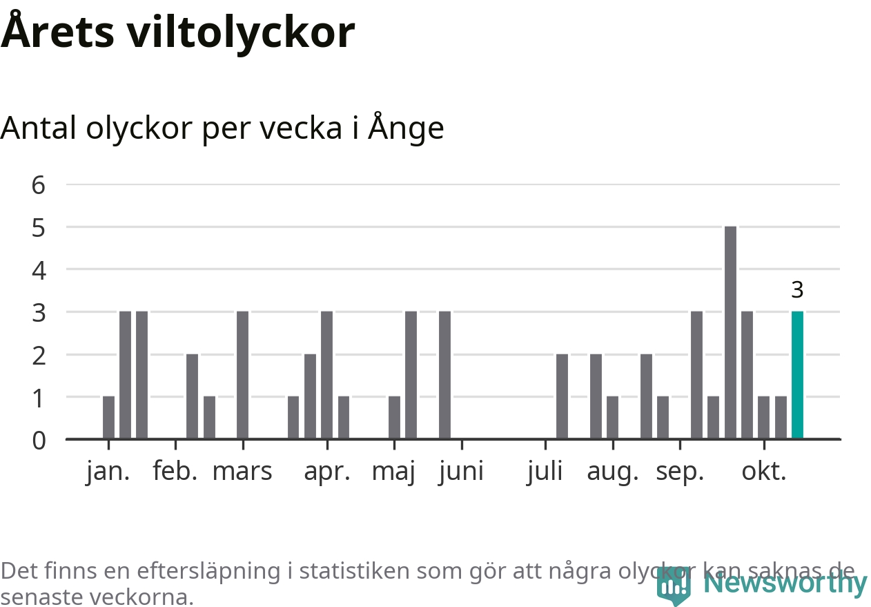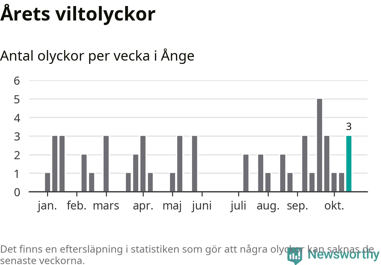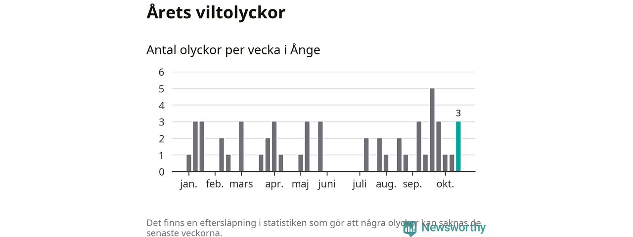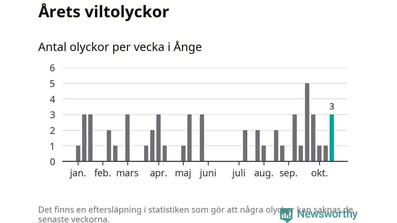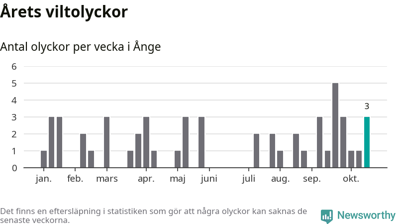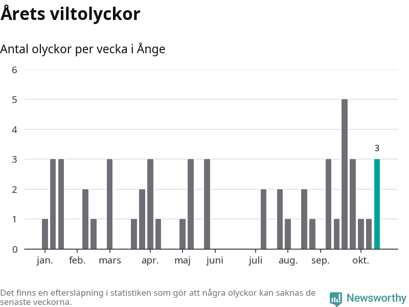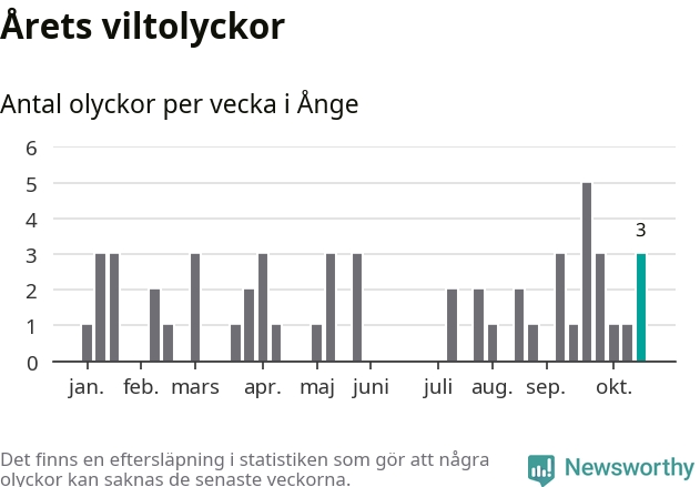 Hittills har tre viltolyckor rapporterats in i Ånge kommun från vecka 43. Se listan här.