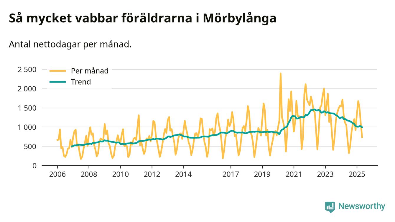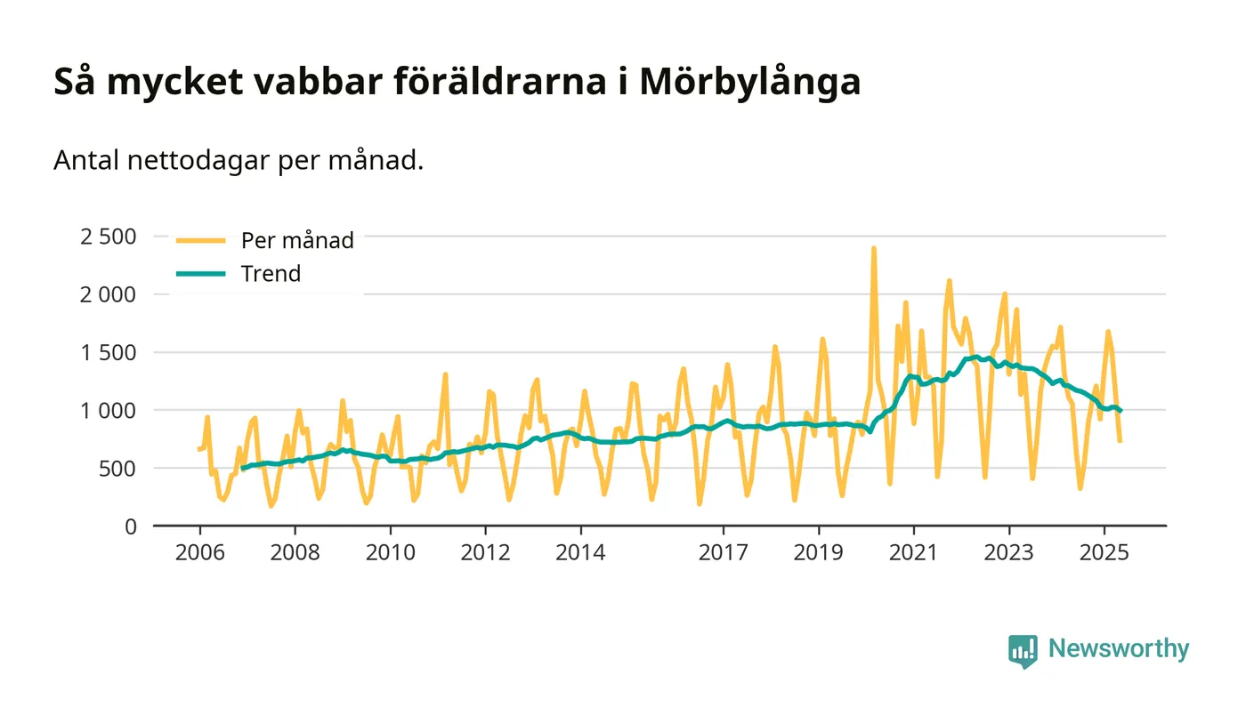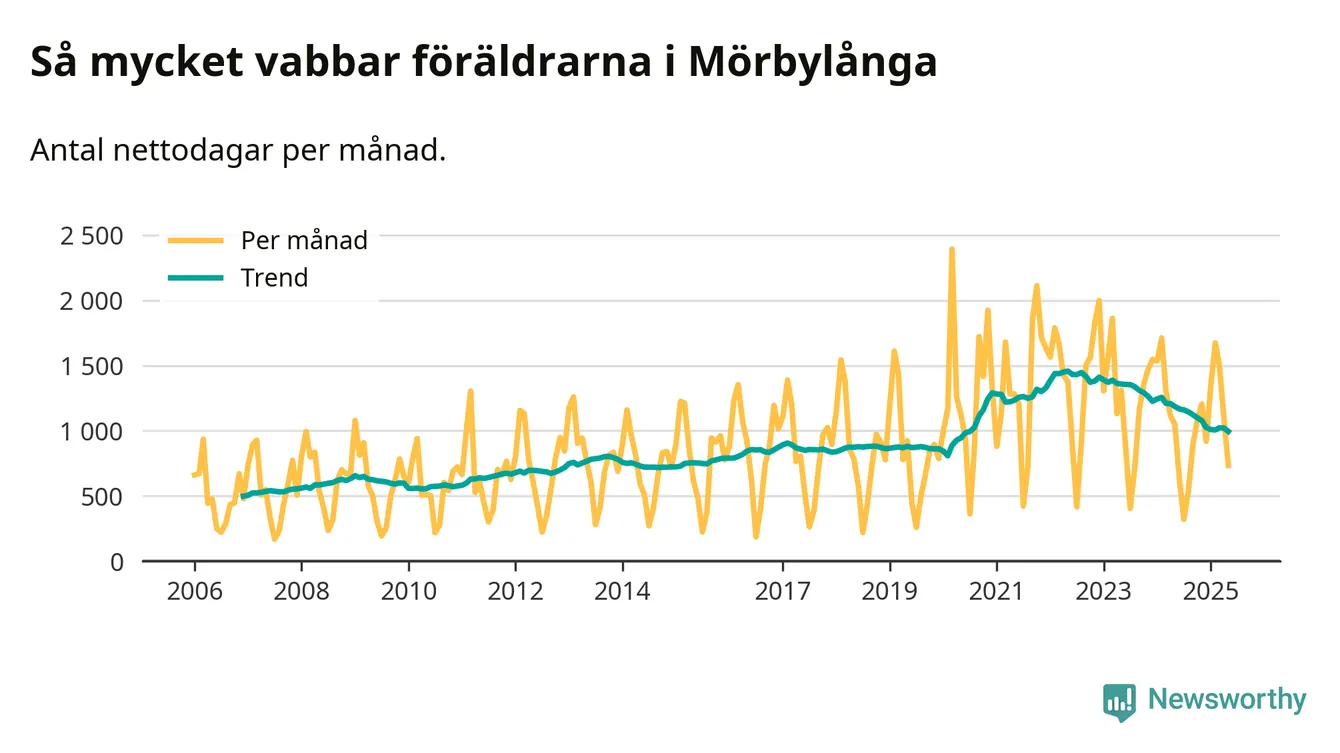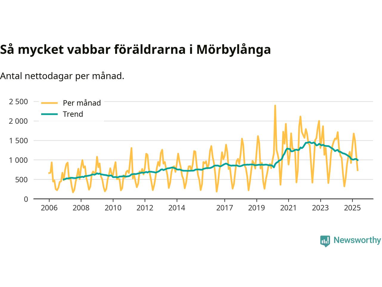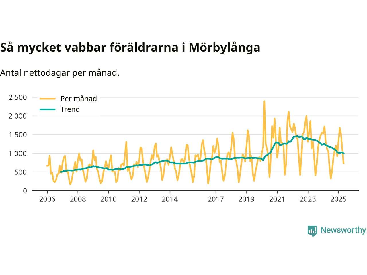 När coronapandemin drog in i mars 2020 peakade antalet vabbdagar både i Mörbylånga kommun och i riket som helhet. Under de senaste två åren har vabbuttaget börjat minska igen.