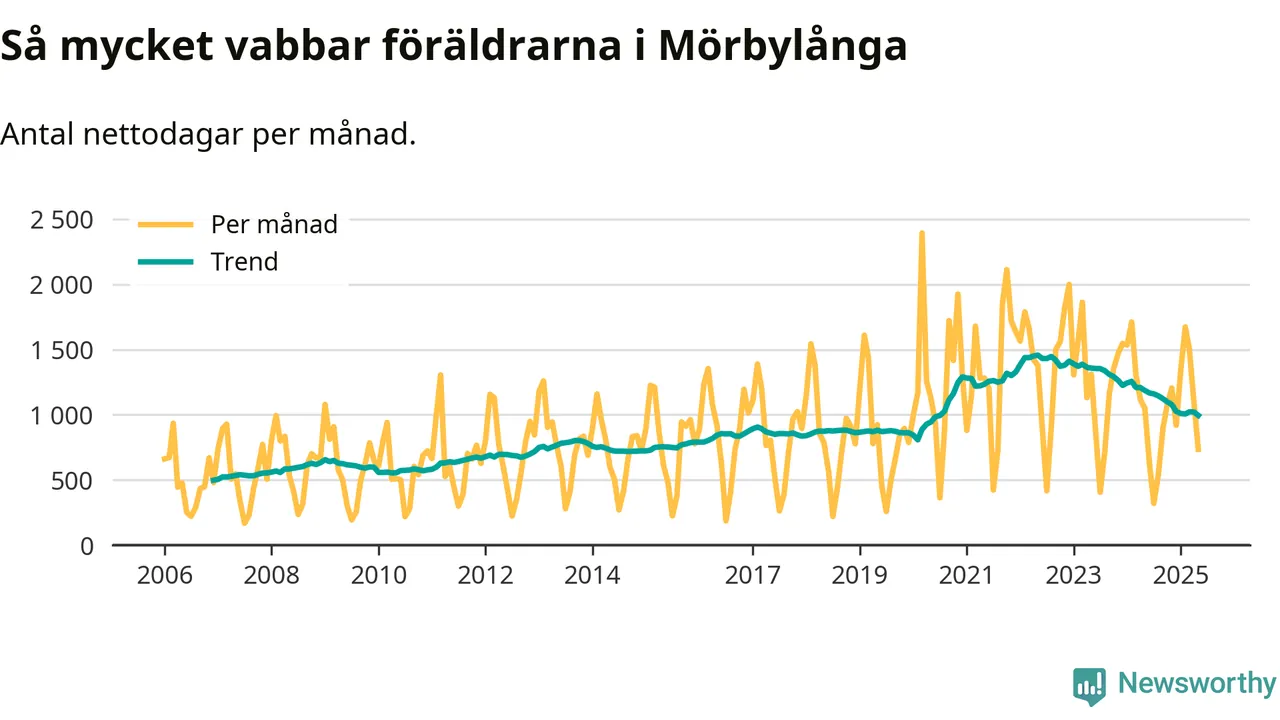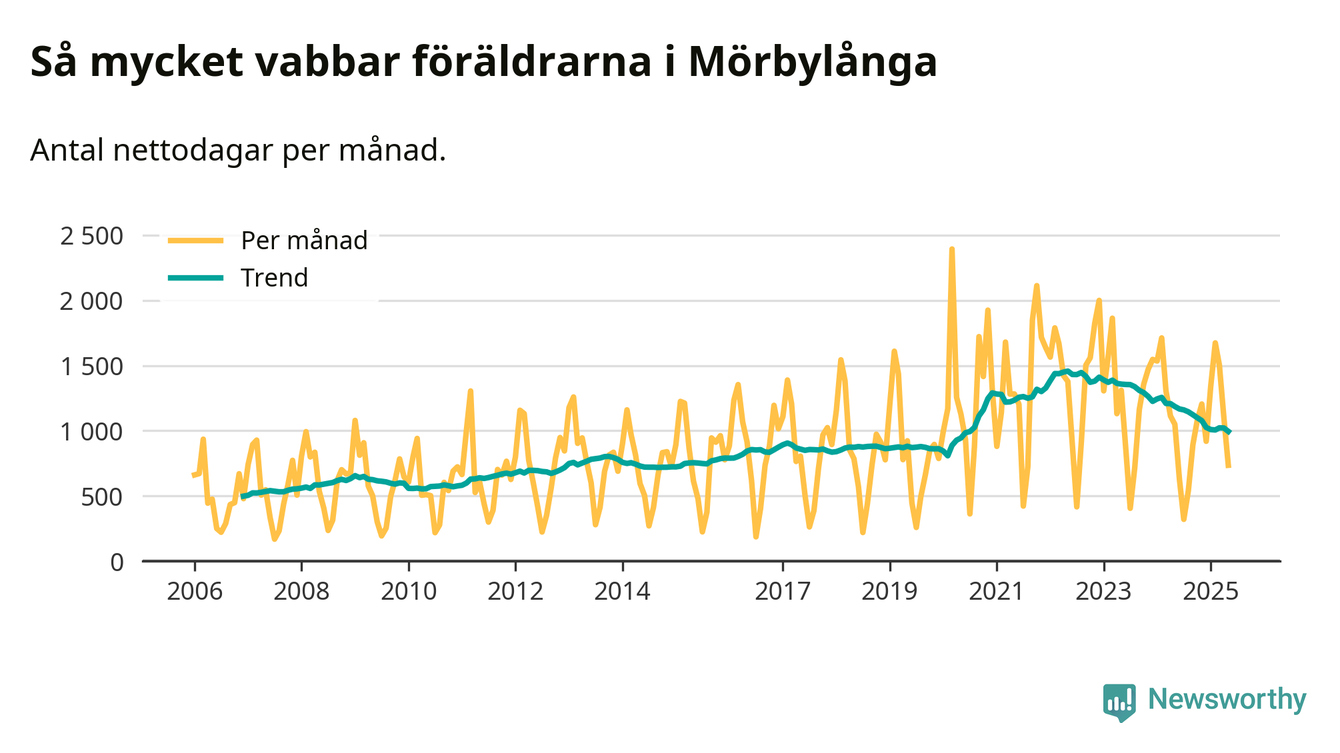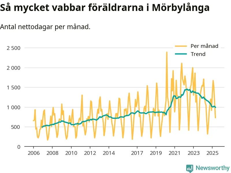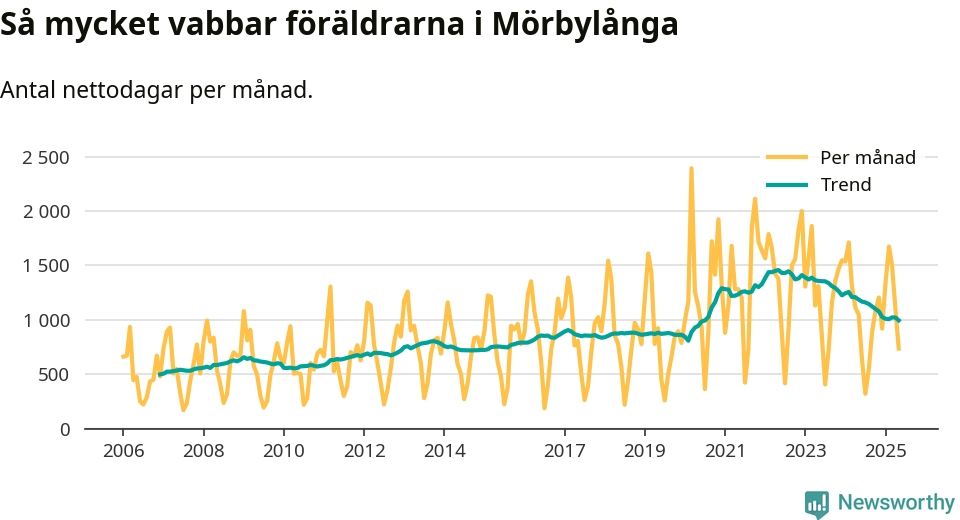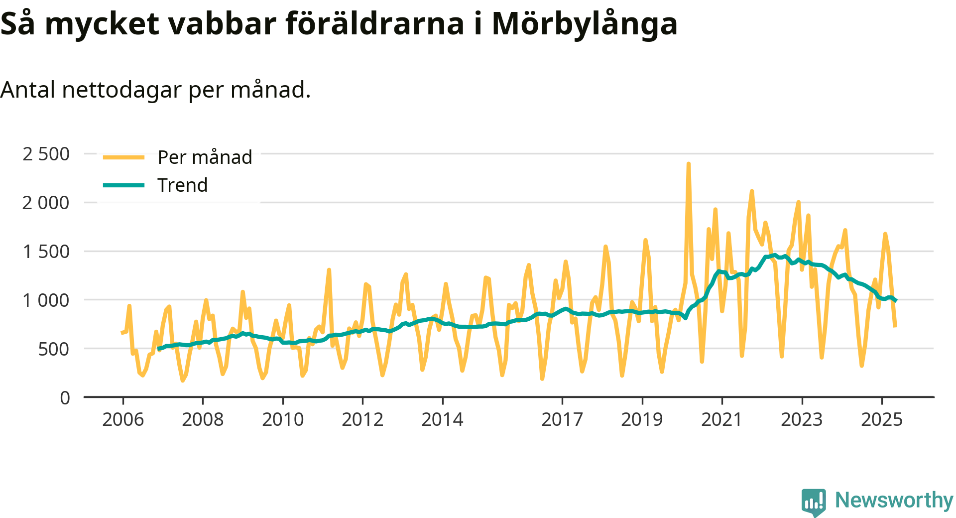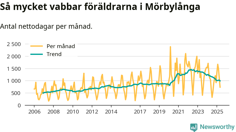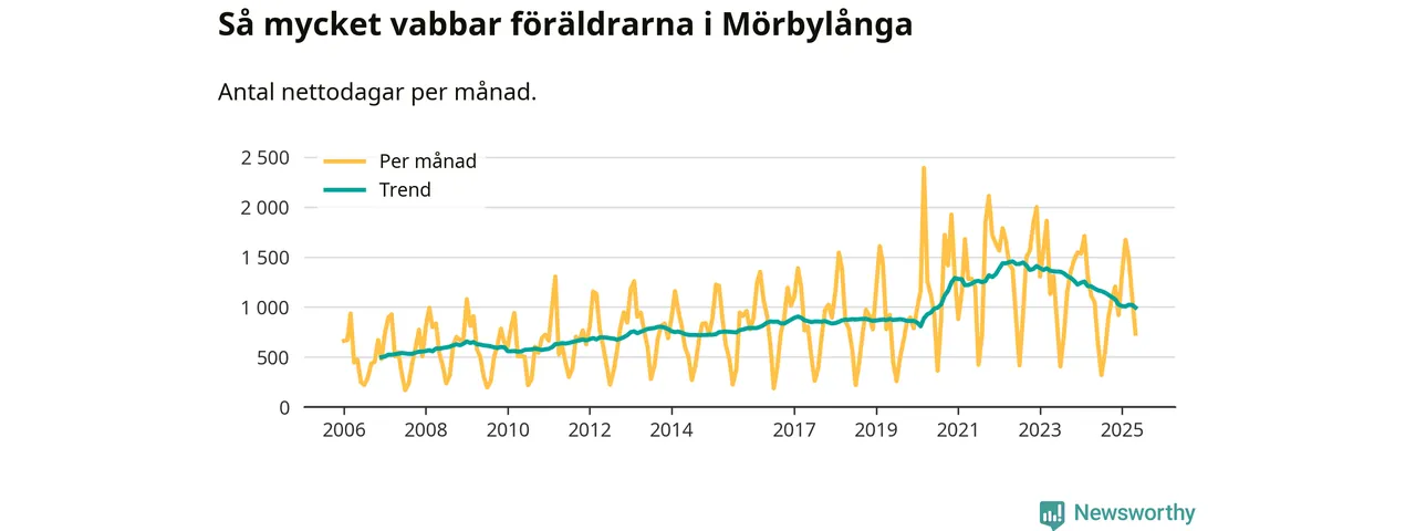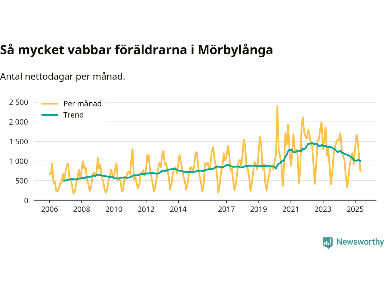 När coronapandemin drog in i mars 2020 peakade antalet vabbdagar både i Mörbylånga kommun och i riket som helhet. Under de senaste två åren har vabbuttaget börjat minska igen.