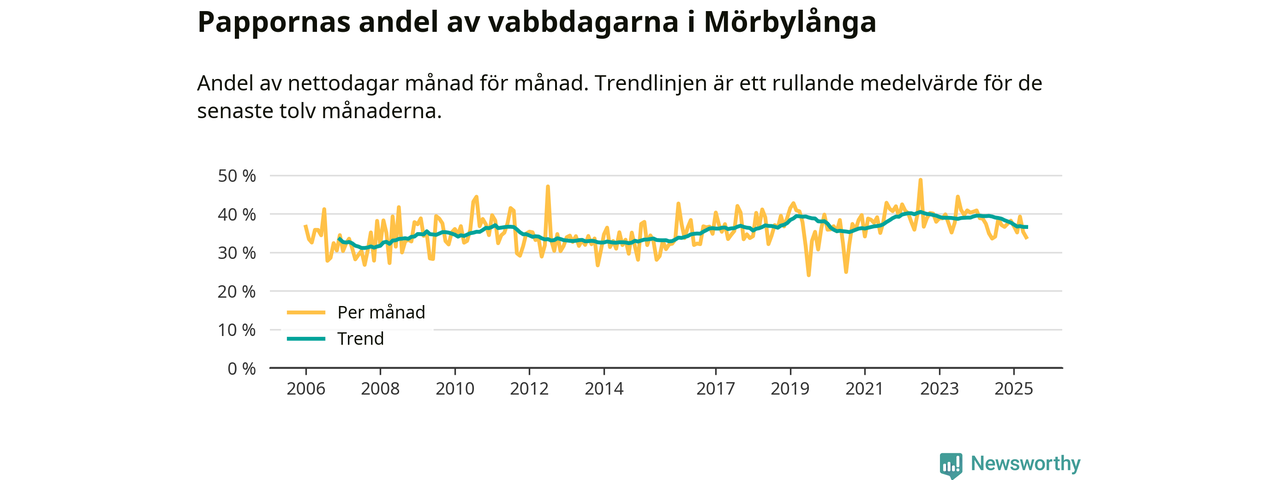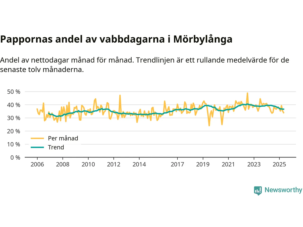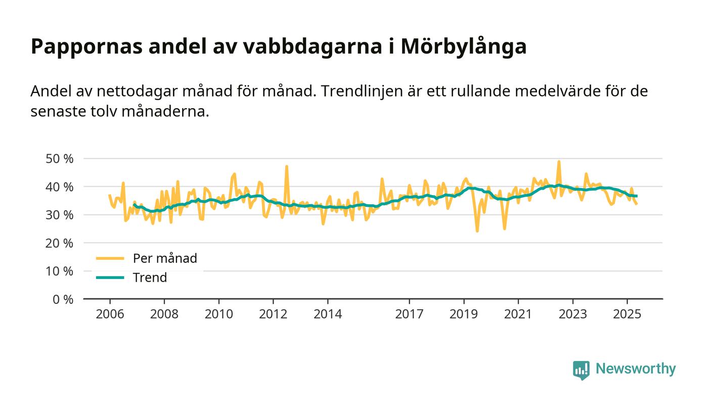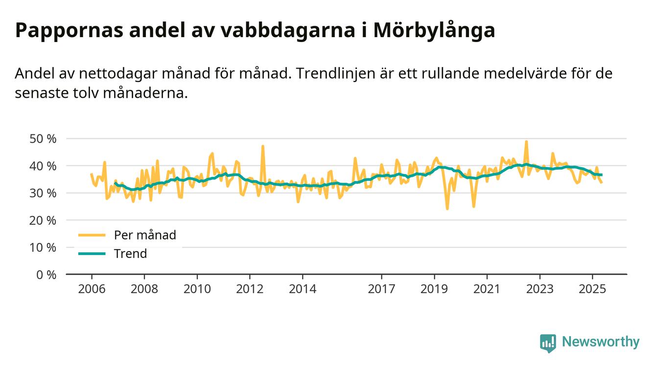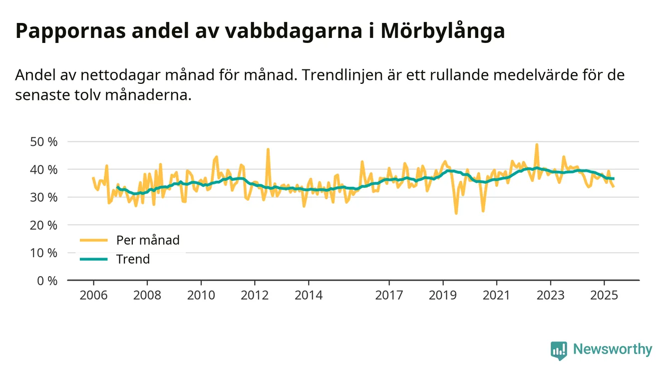 Mörbylånga ligger en bit från ett jämställt uttag. Under de senaste tolv månaderna har männen stått för 37 procent av all vabb i kommunen. Det är en lägre andel än på över fyra år.
