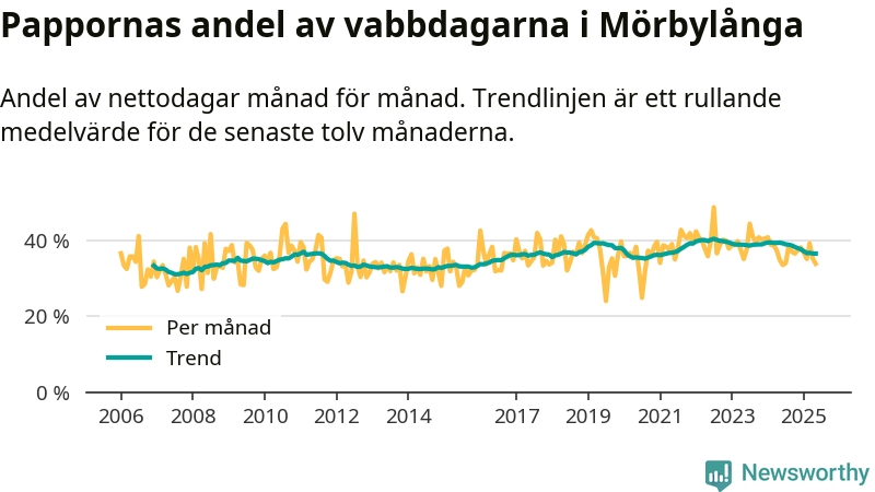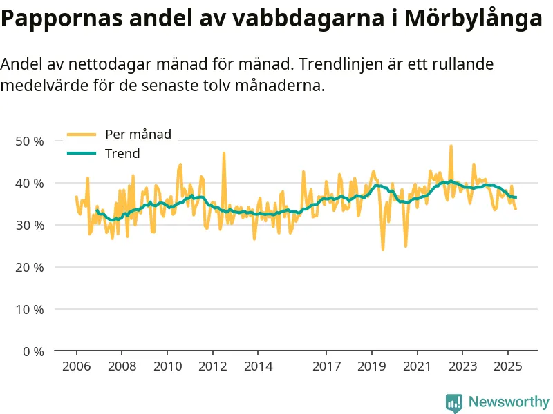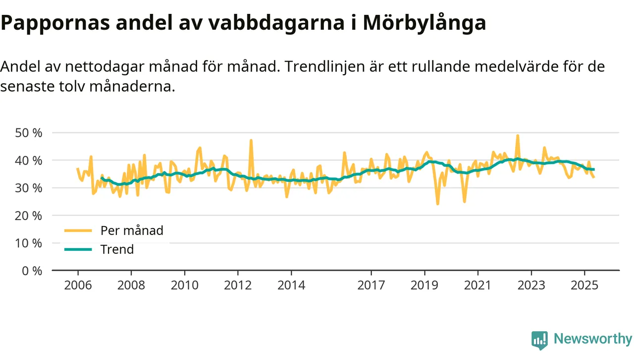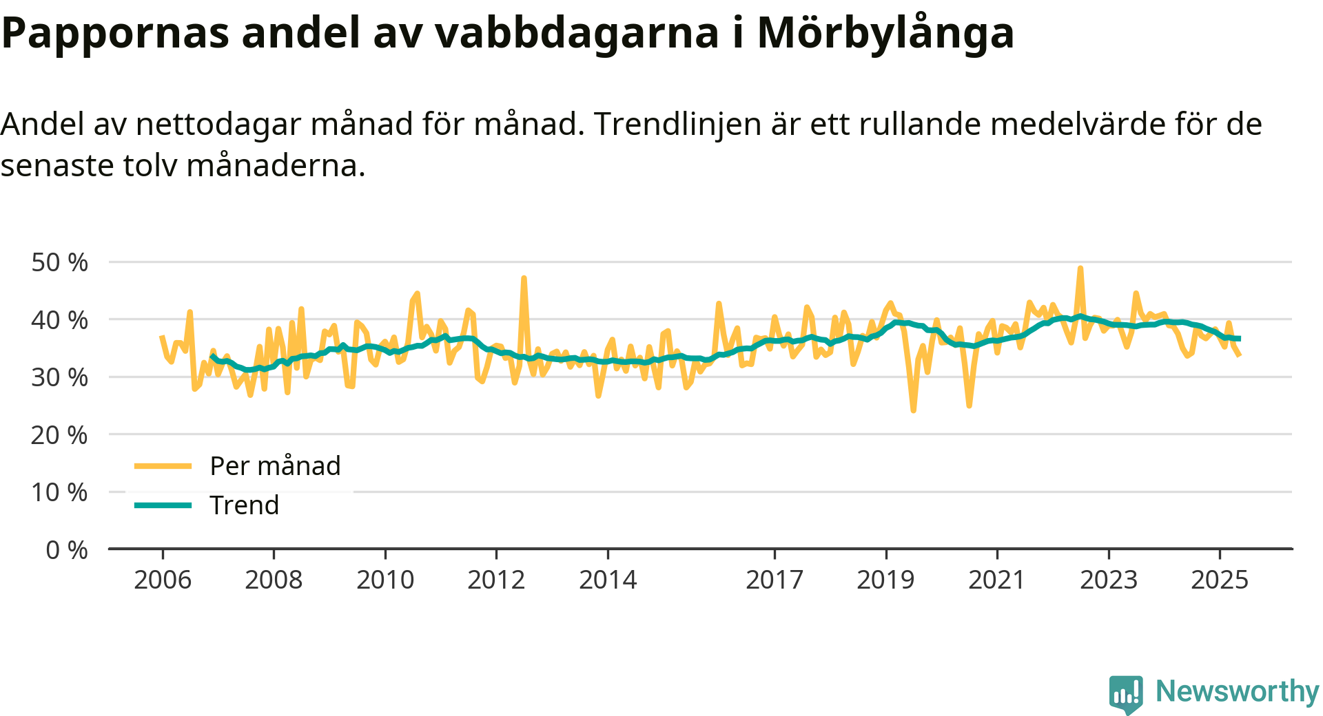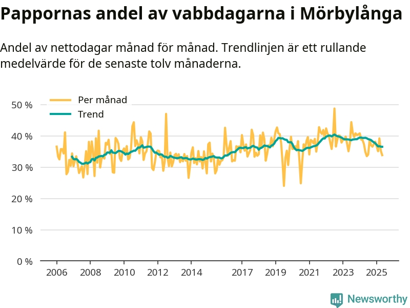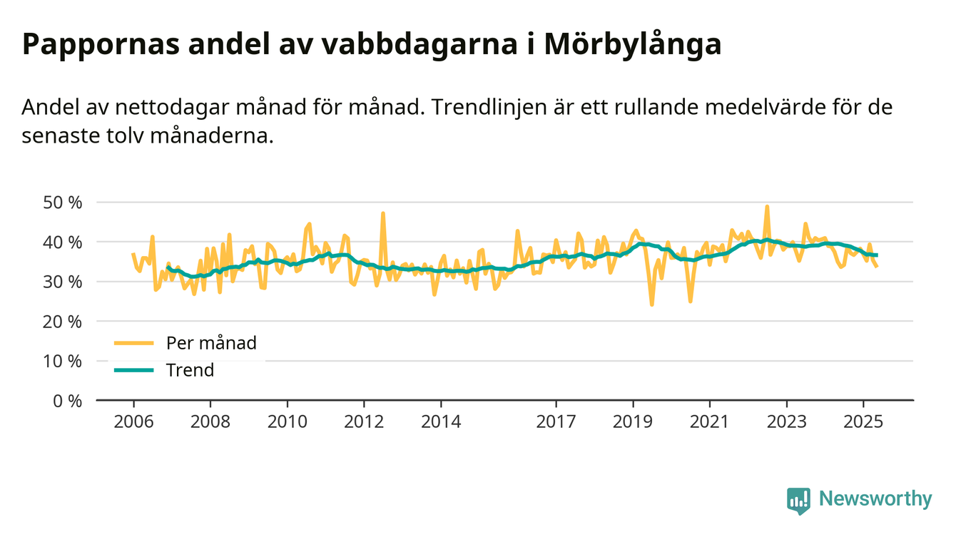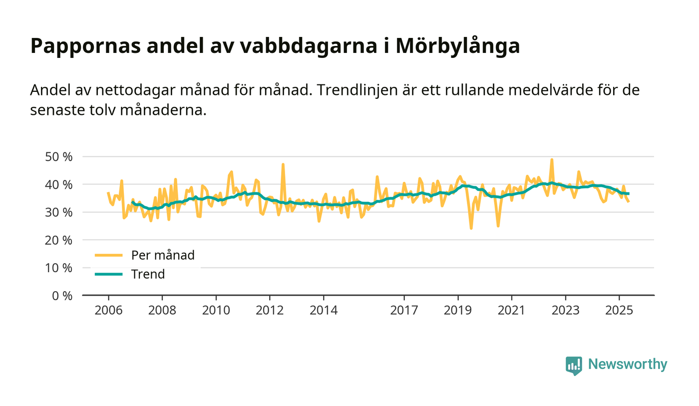 Mörbylånga ligger en bit från ett jämställt uttag. Under de senaste tolv månaderna har männen stått för 37 procent av all vabb i kommunen. Det är en lägre andel än på över fyra år.