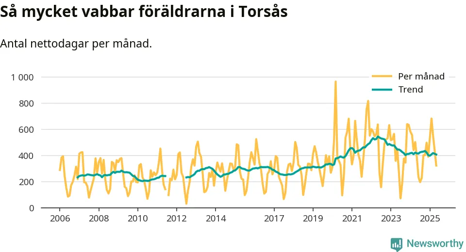 När coronapandemin drog in i mars 2020 peakade antalet vabbdagar både i Torsås kommun och i riket som helhet. Under de senaste två åren har vabbuttaget börjat minska igen.