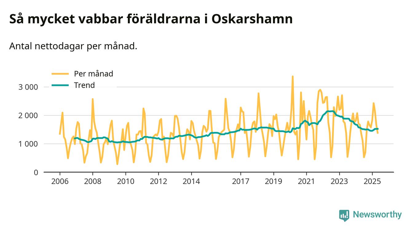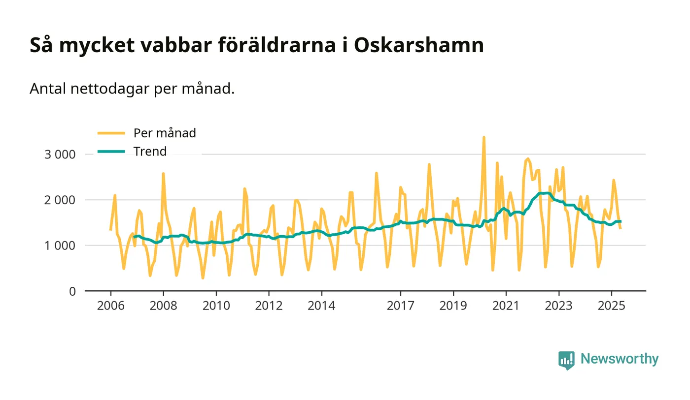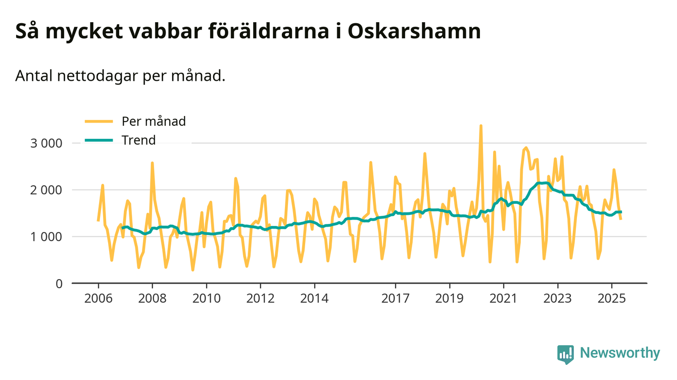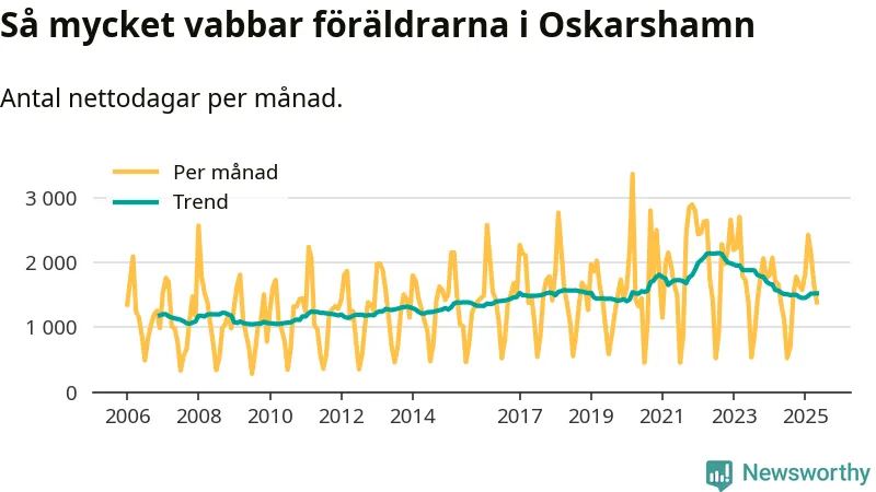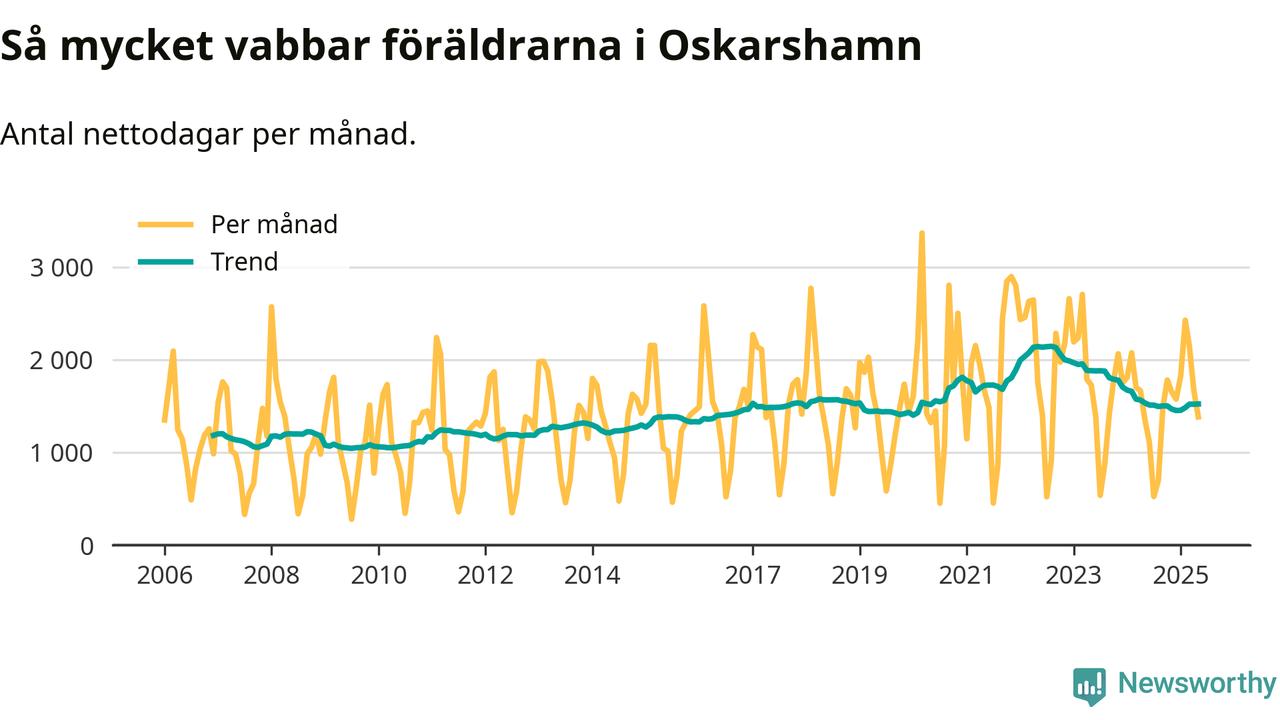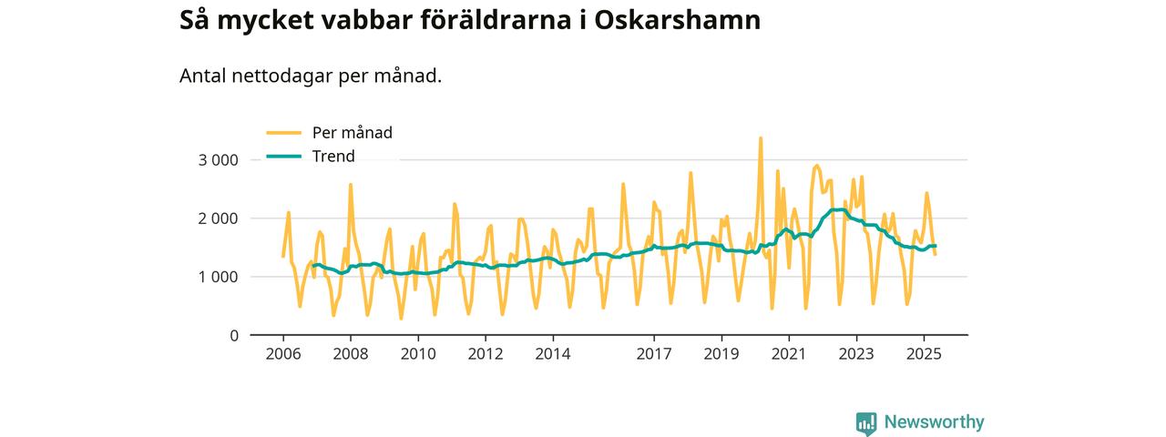 När coronapandemin drog in i mars 2020 peakade antalet vabbdagar både i Oskarshamns kommun och i riket som helhet. Under de senaste två åren har vabbuttaget börjat minska igen.