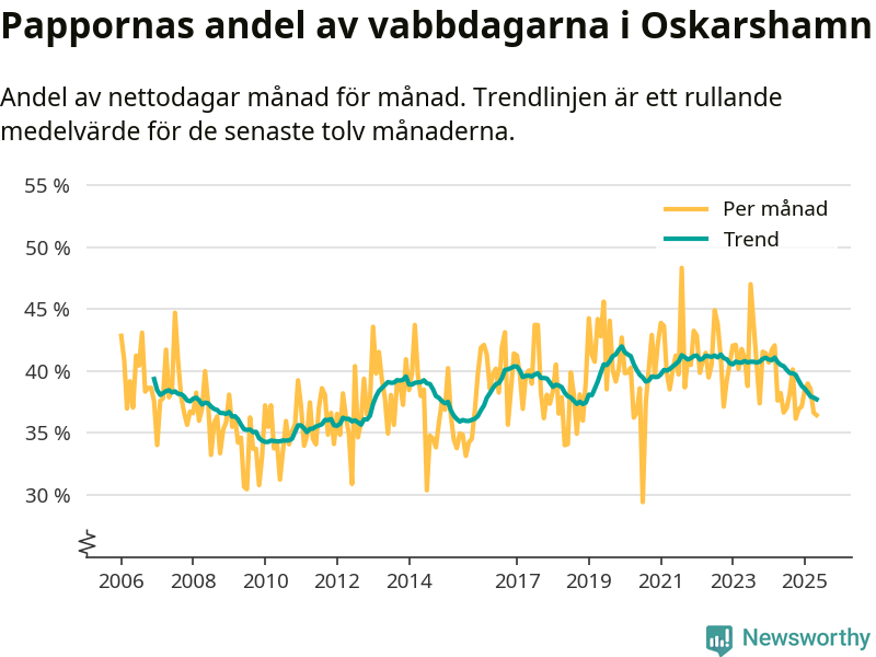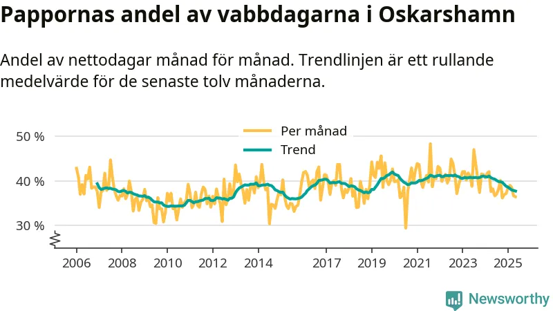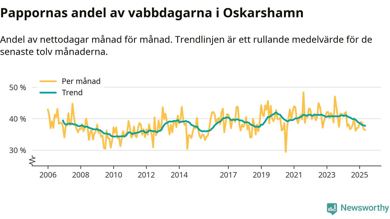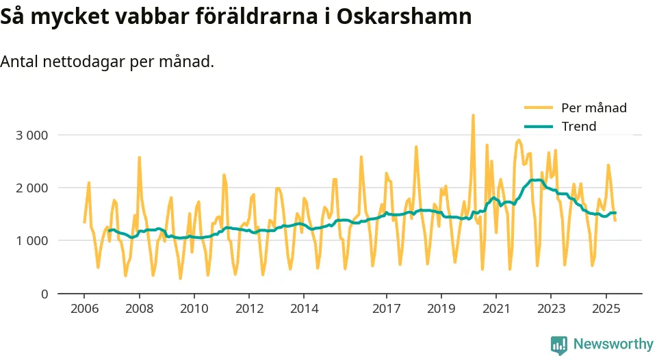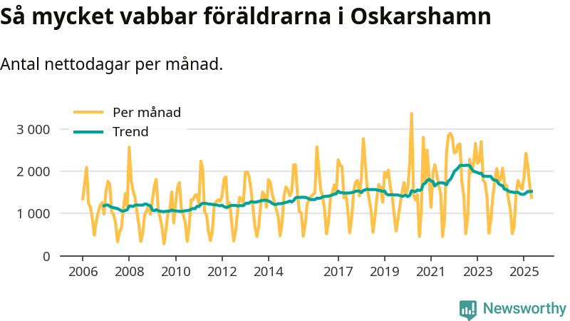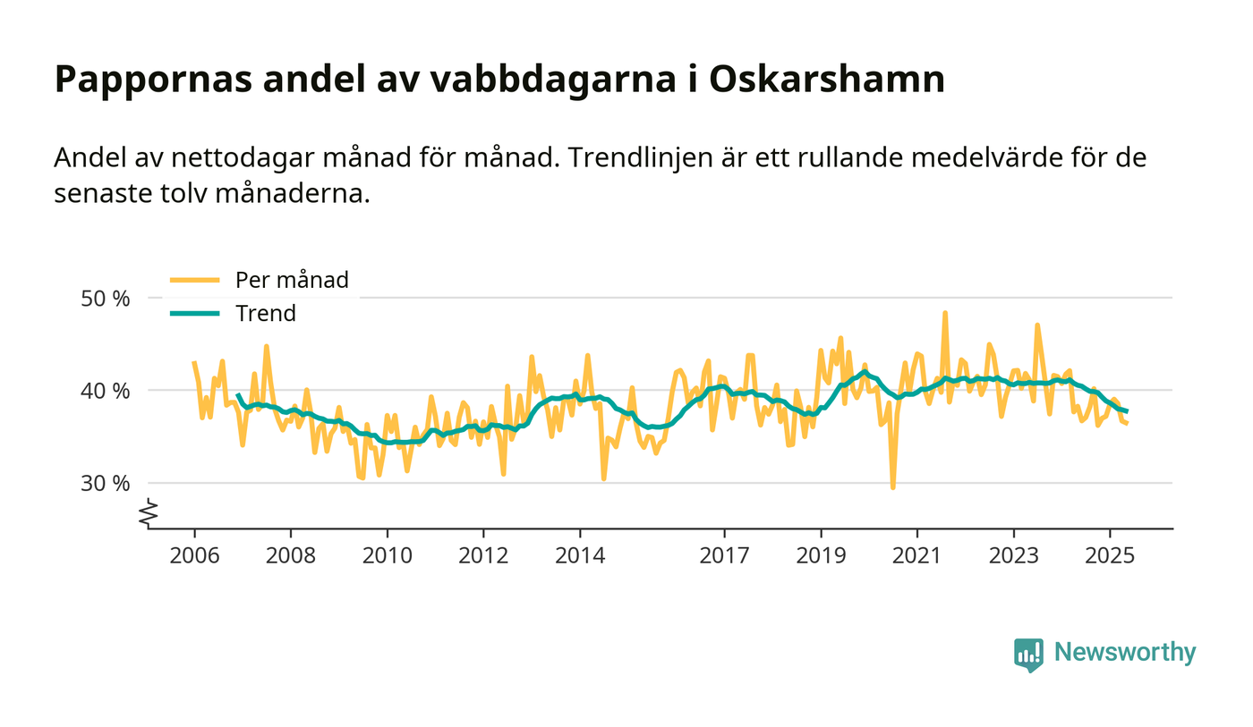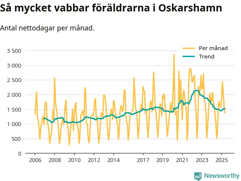 När coronapandemin drog in i mars 2020 peakade antalet vabbdagar både i Oskarshamns kommun och i riket som helhet. Under de senaste två åren har vabbuttaget börjat minska igen.