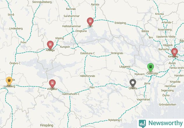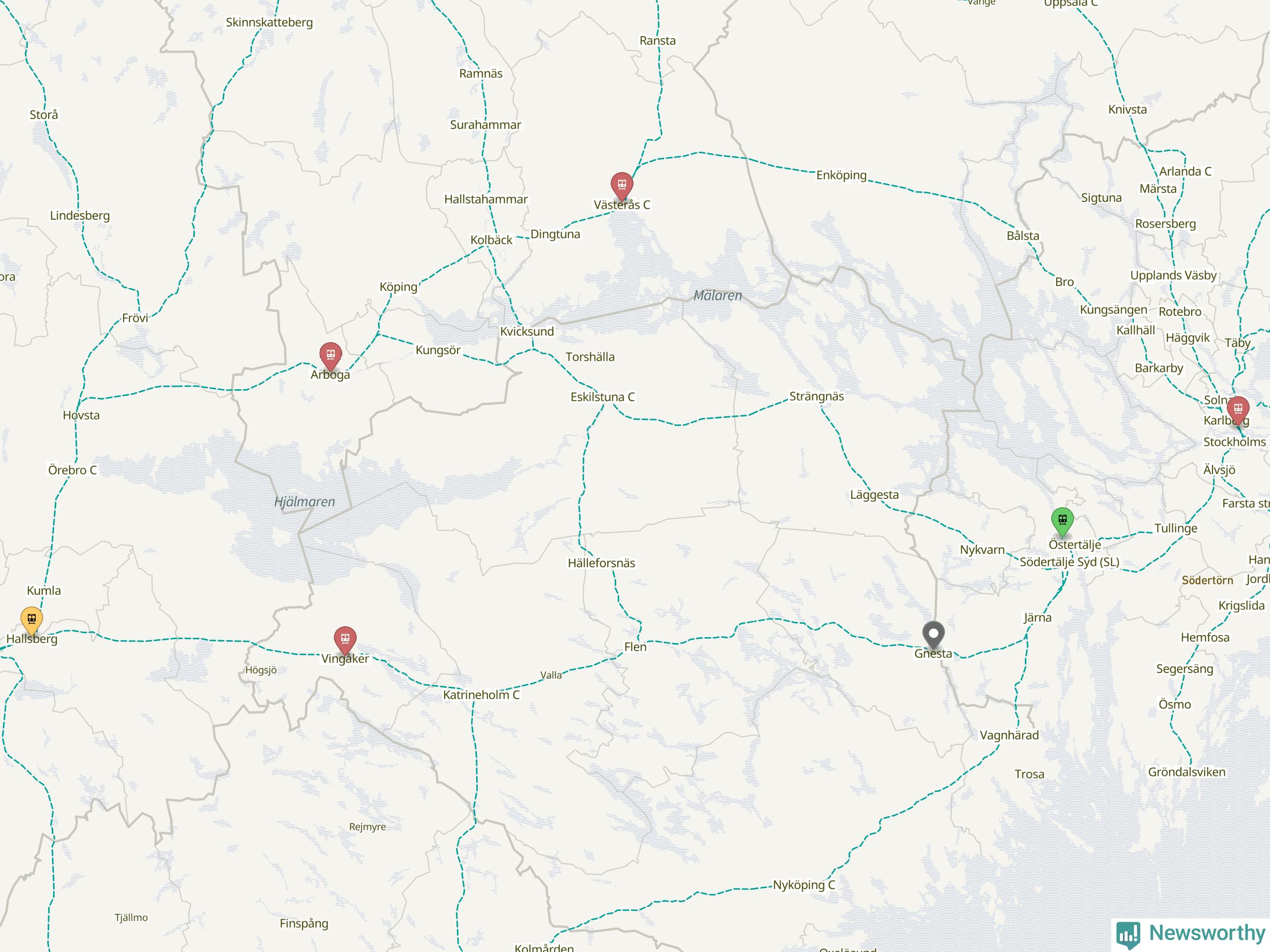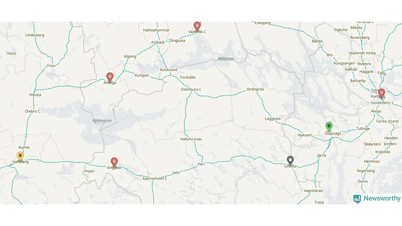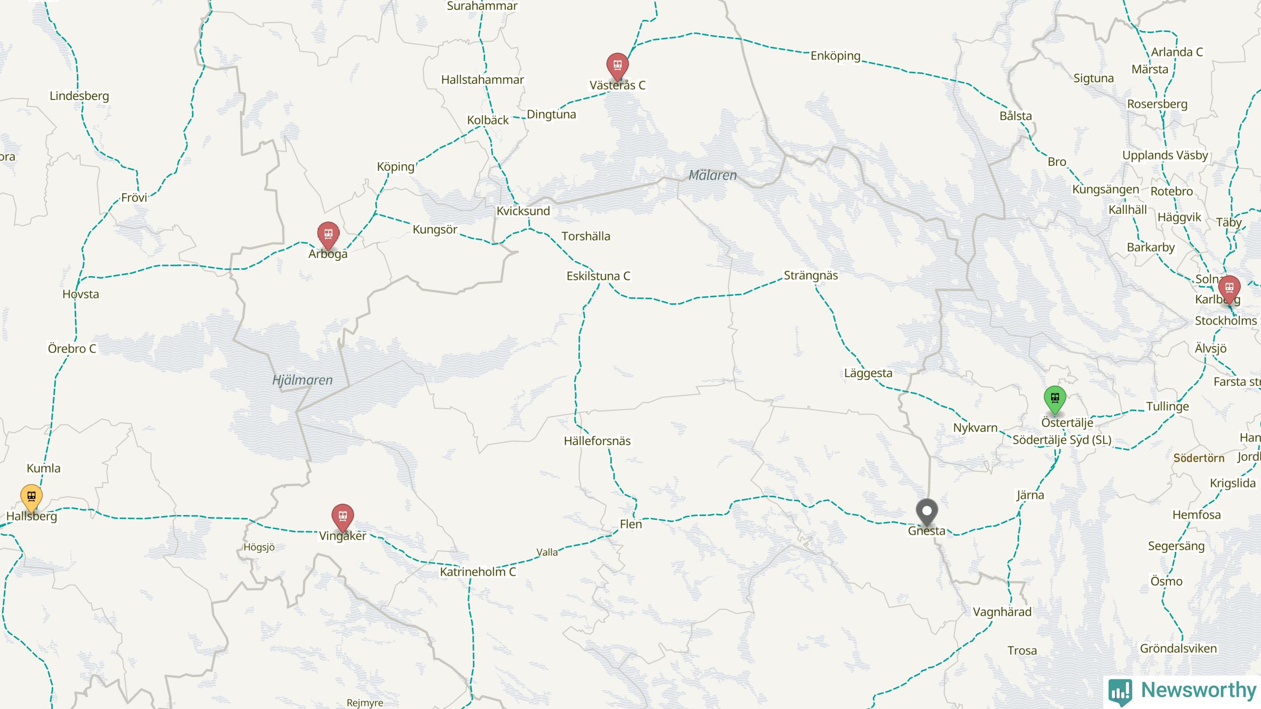 Kartdata från Mapbox, Newsworthy, OpenStreetMap och Trafikverket. Uppgifter om sträckor med passagerartrafik från jarnvag.net.