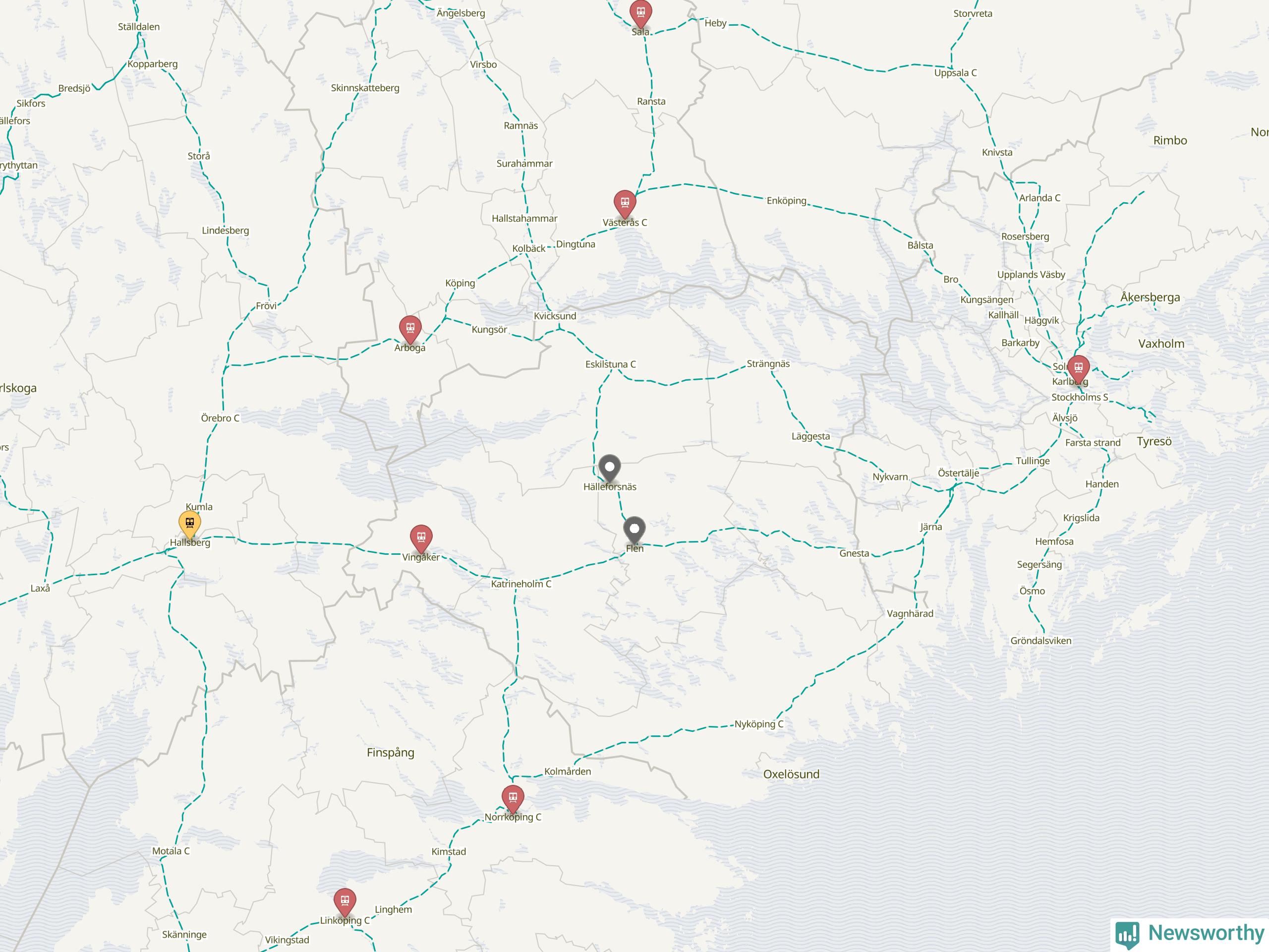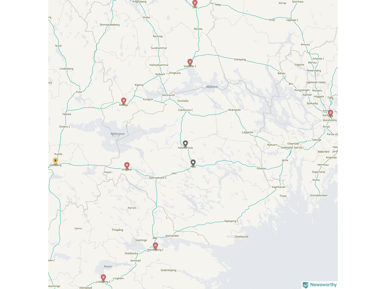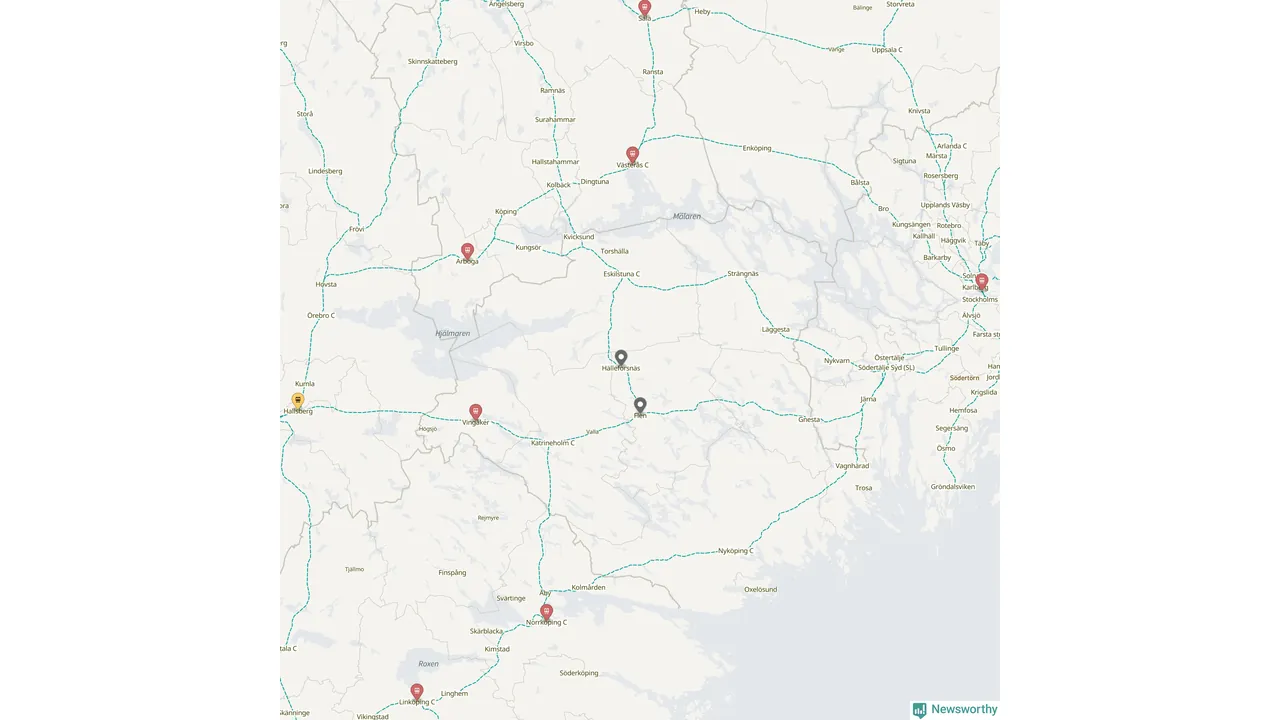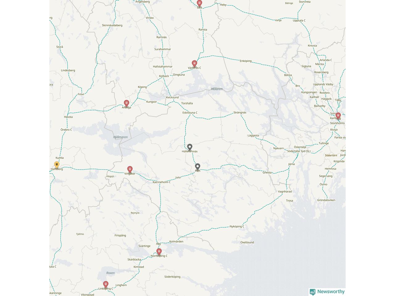 Kartdata från Mapbox, Newsworthy, OpenStreetMap och Trafikverket. Uppgifter om sträckor med passagerartrafik från jarnvag.net.