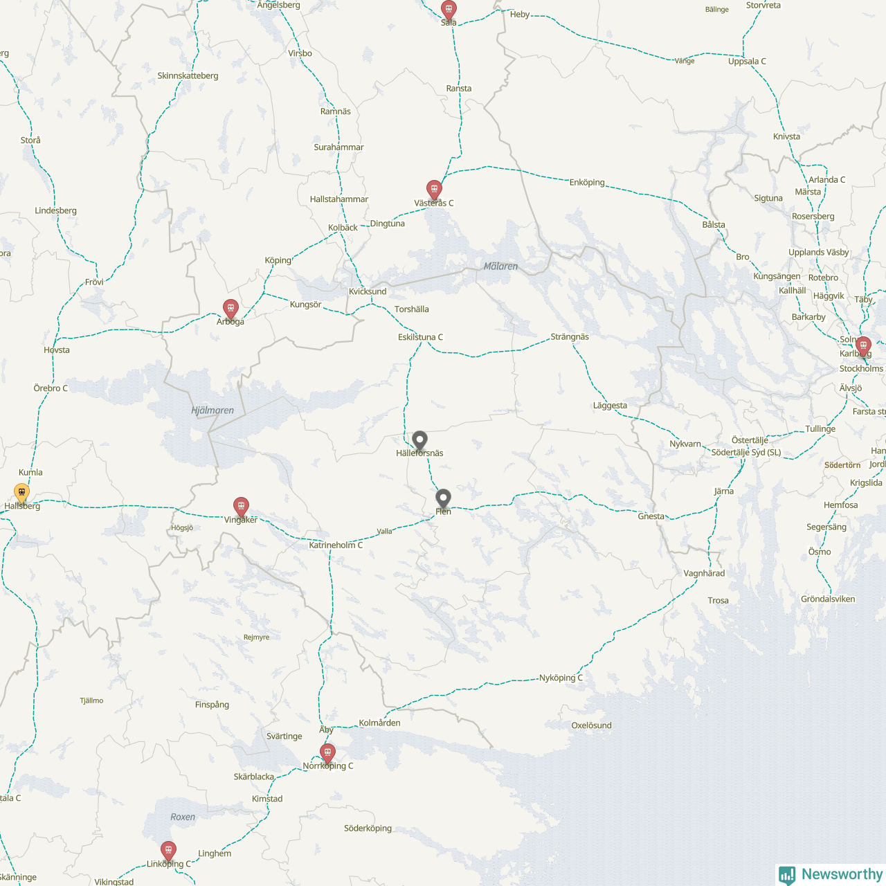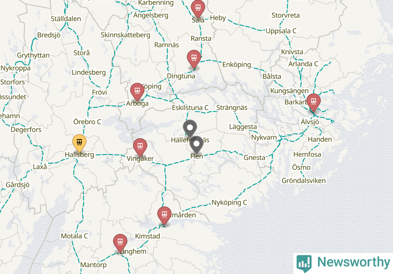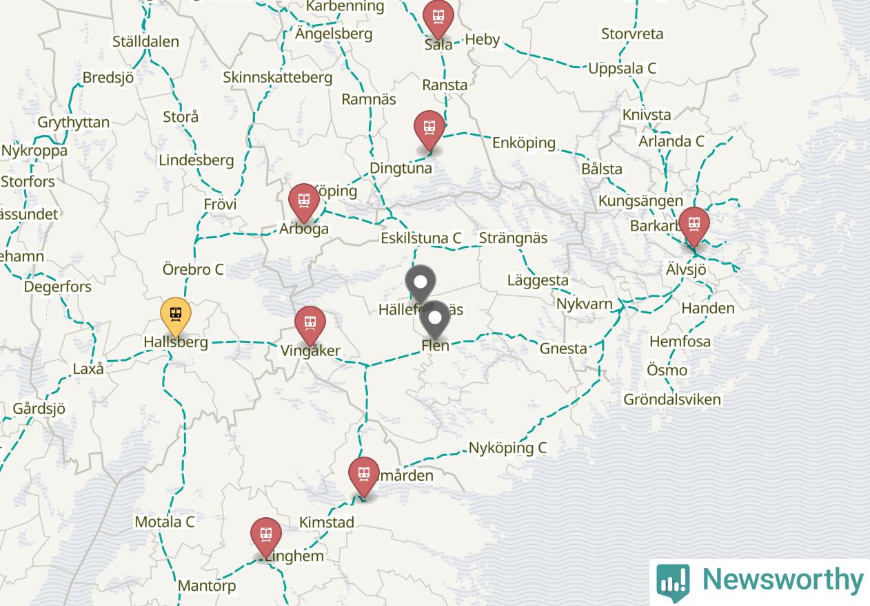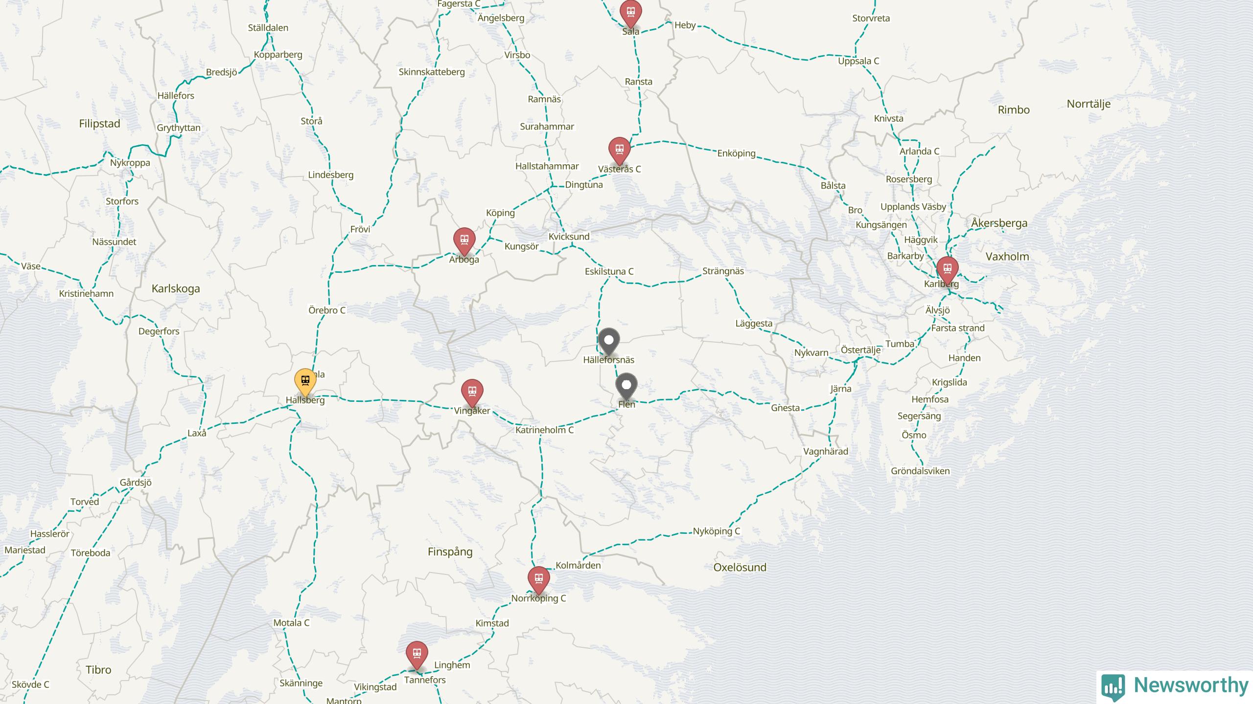 Kartdata från Mapbox, Newsworthy, OpenStreetMap och Trafikverket. Uppgifter om sträckor med passagerartrafik från jarnvag.net.