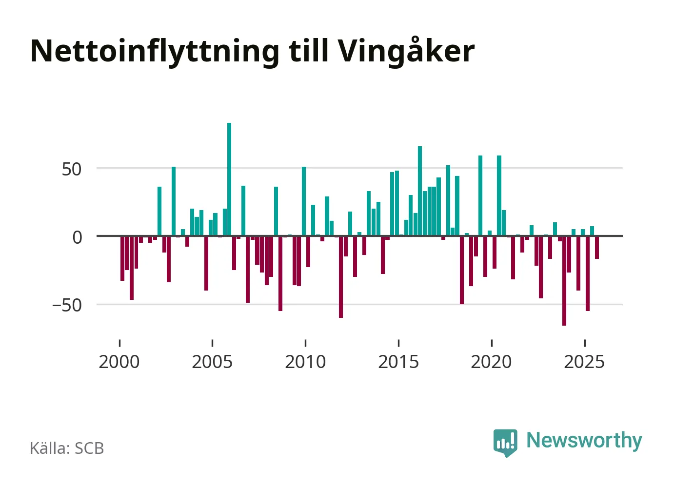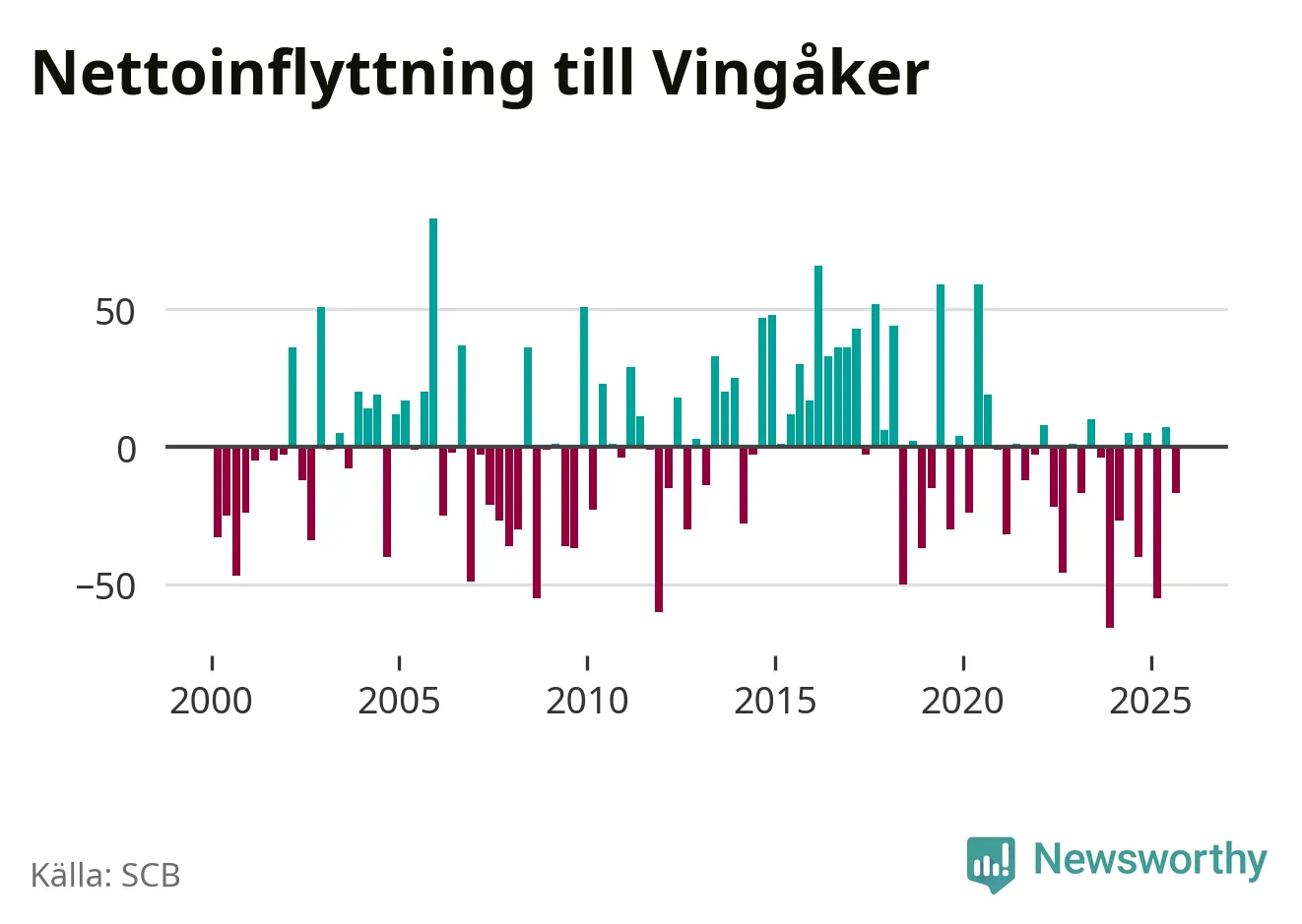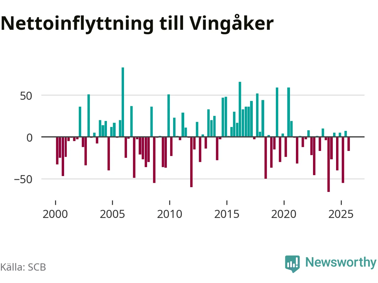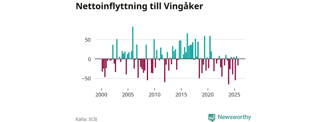 Fler flyttade från än till Vingåkers kommun. Befolkningen minskade under det tredje kvartalet 2025. Det visar nya siffror från SCB.