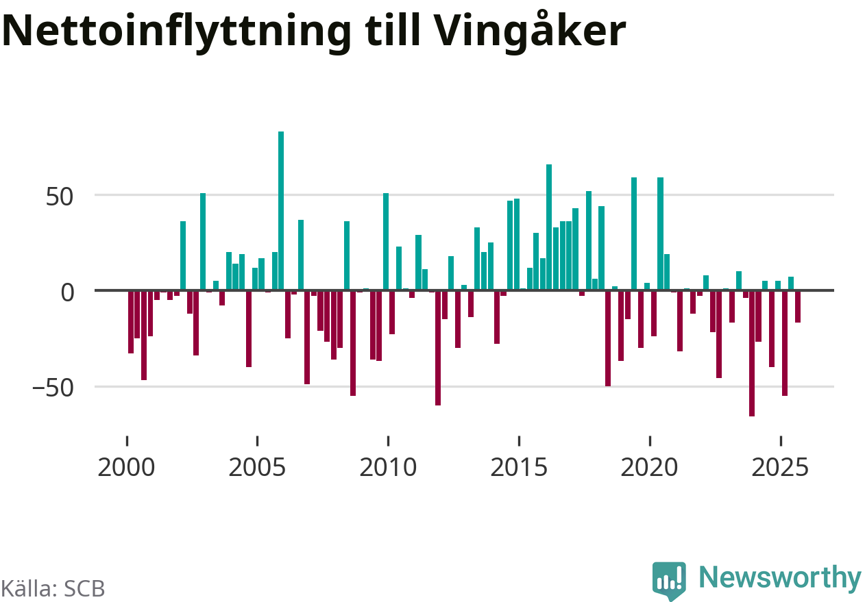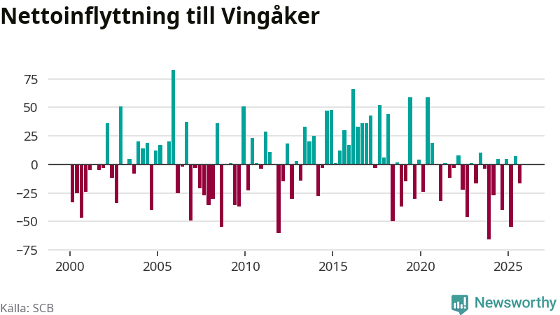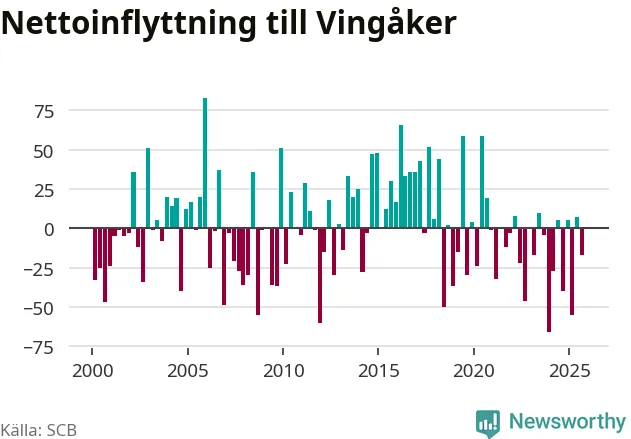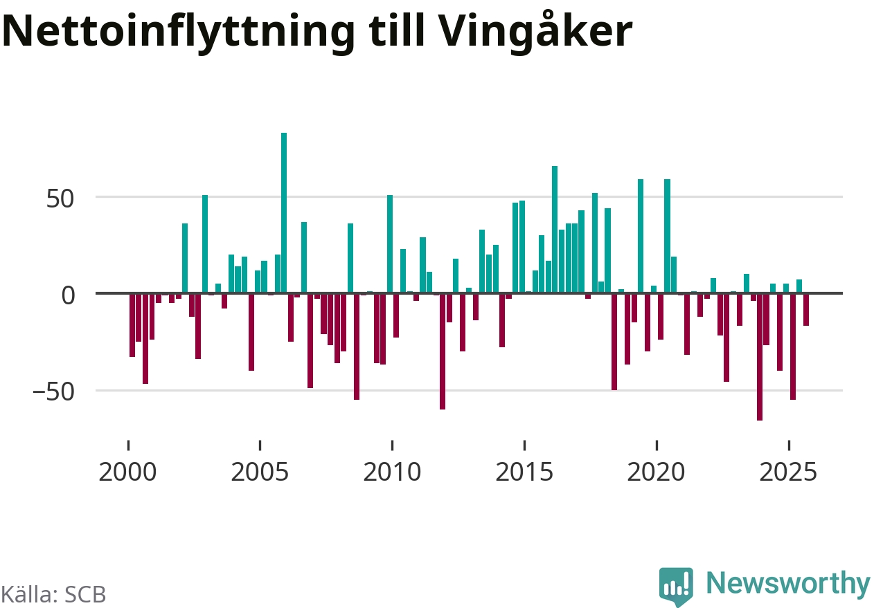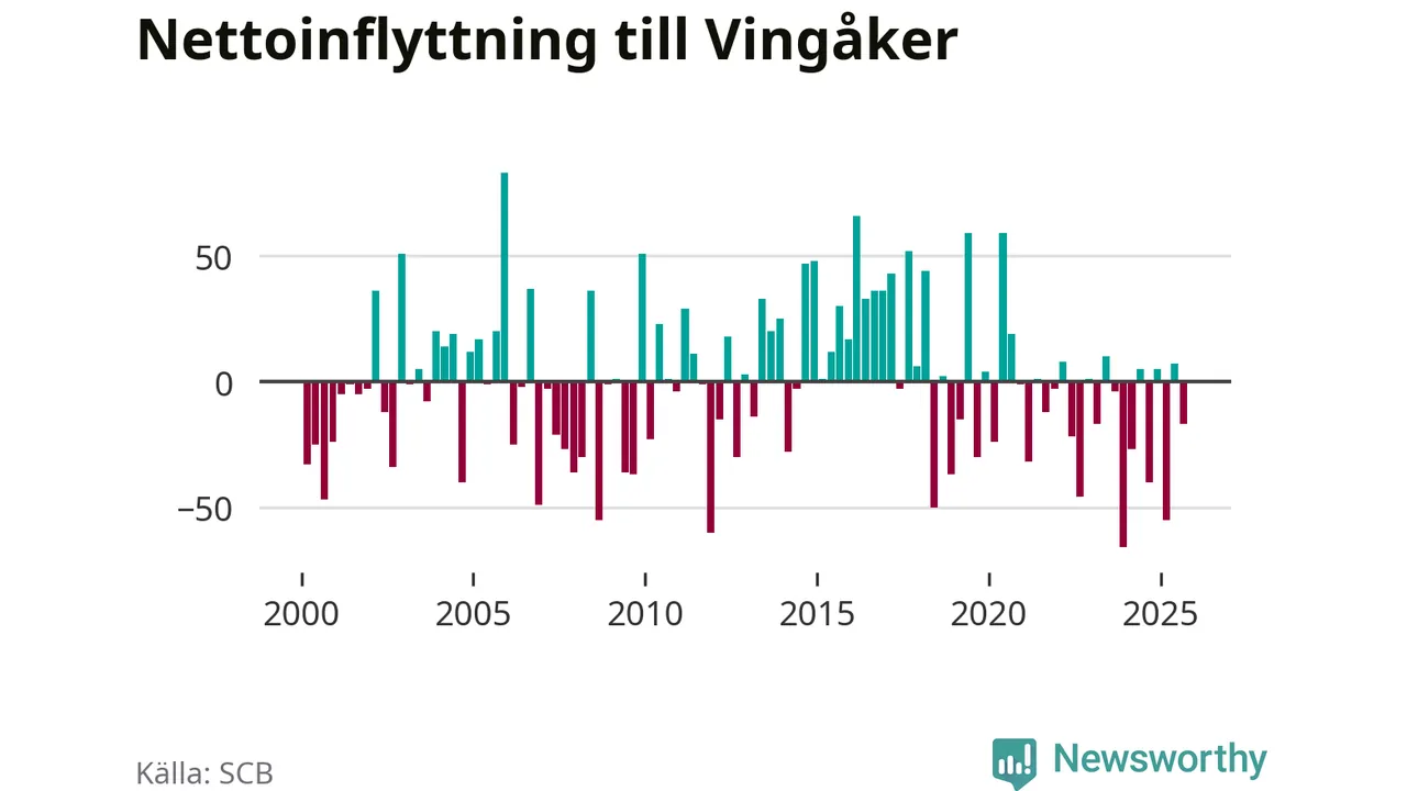 Fler flyttade från än till Vingåkers kommun. Befolkningen minskade under det tredje kvartalet 2025. Det visar nya siffror från SCB.