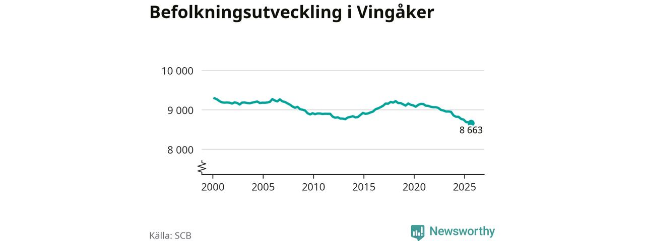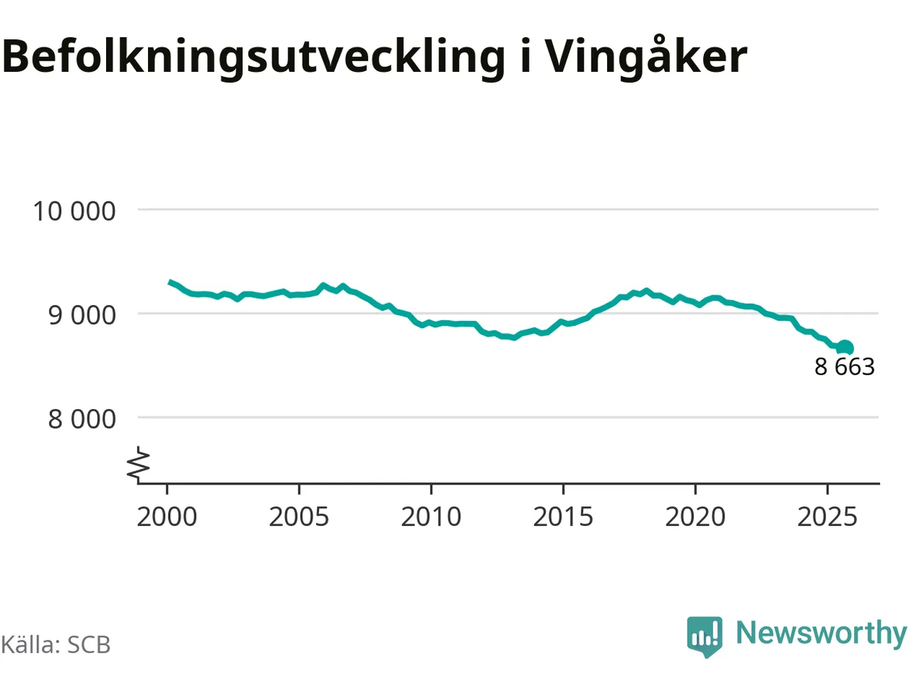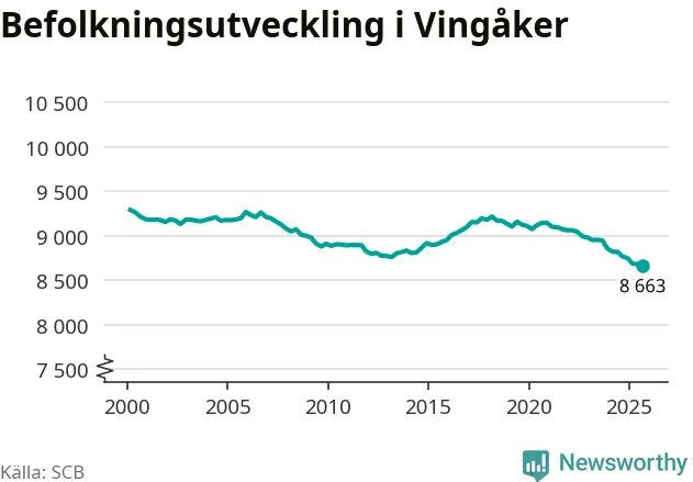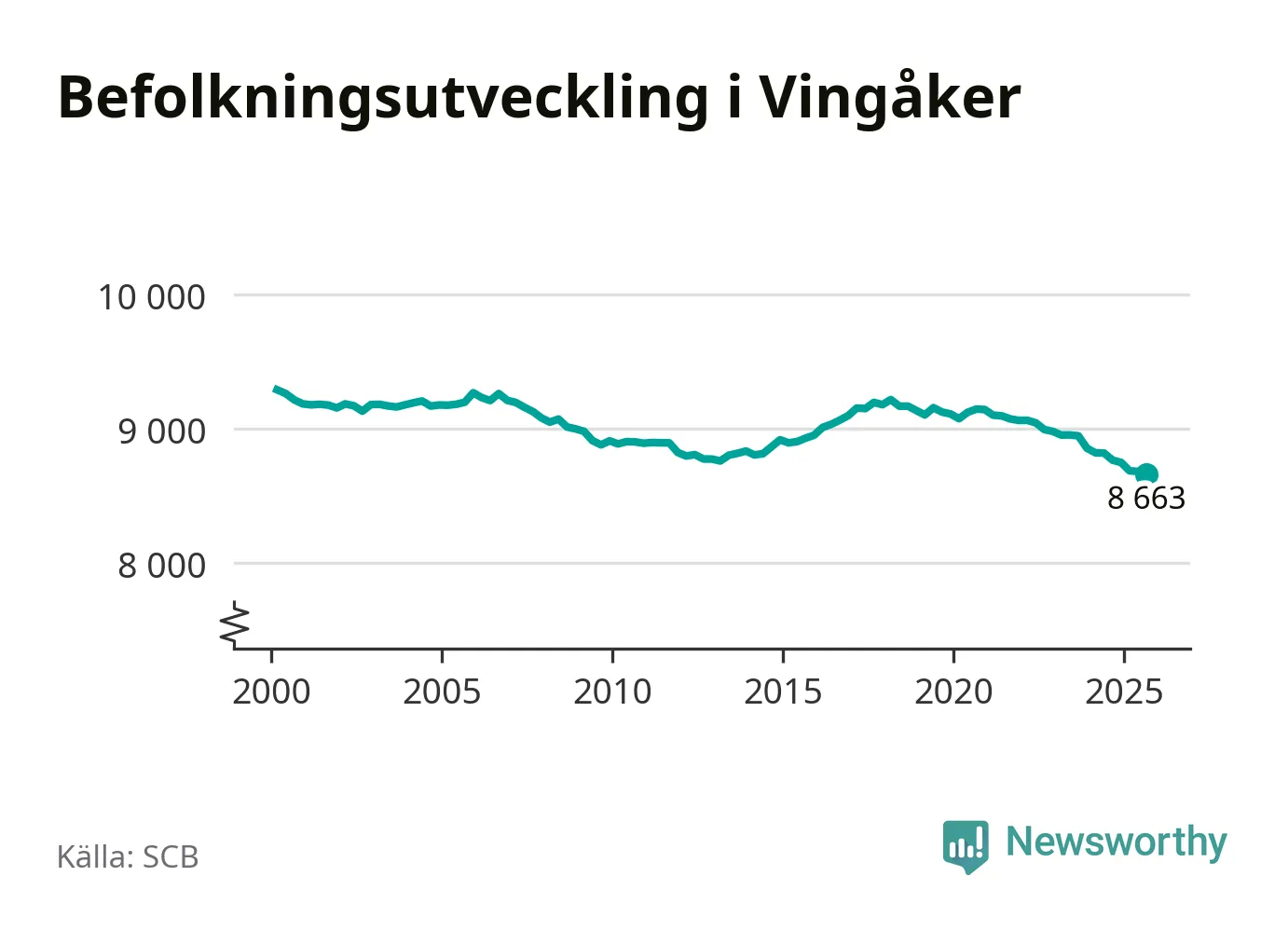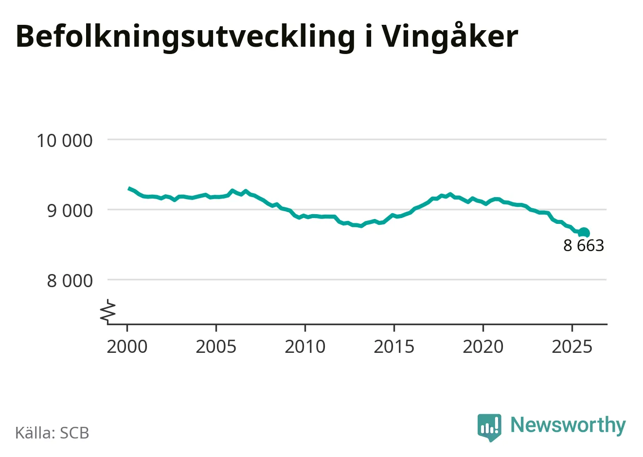 Befolkningen minskade i Vingåkers kommun under det tredje kvartalet 2025. Den 30 september bodde enligt SCB:s senaste siffror 8 663 personer i kommunen, vilket är 20 färre än i slutet av andra kvartalet.