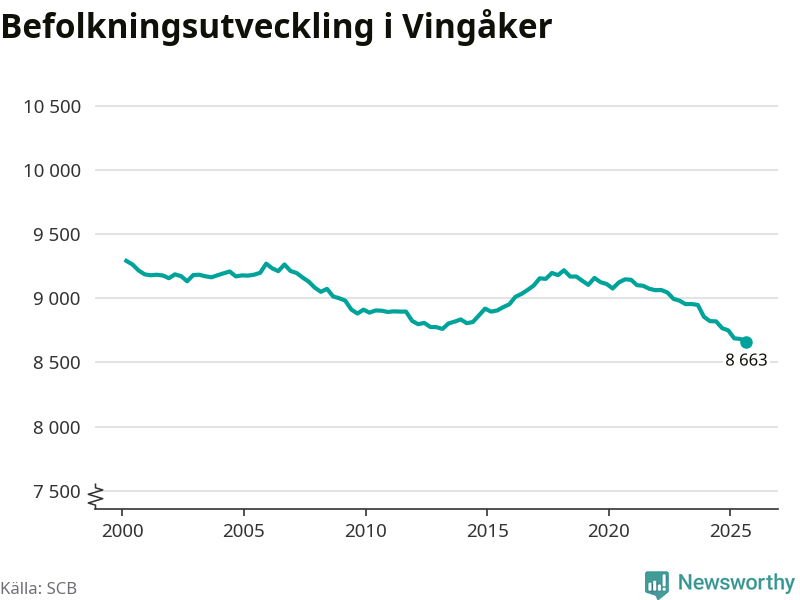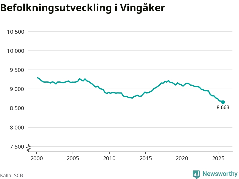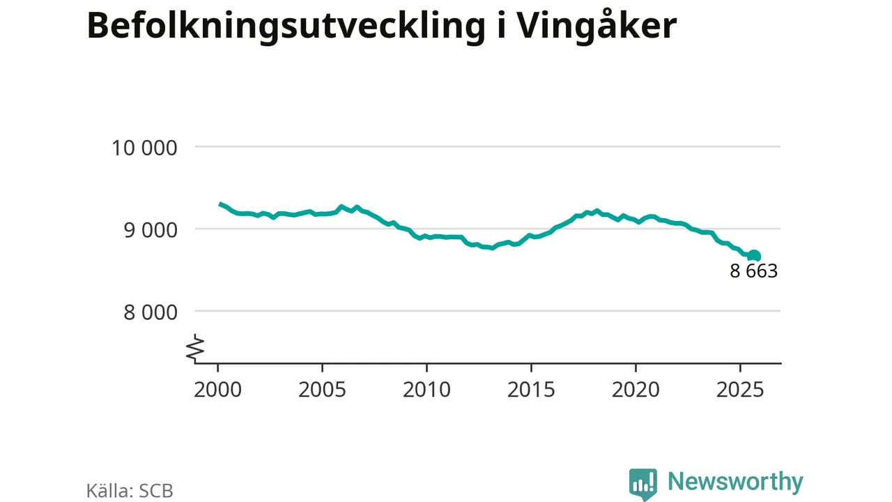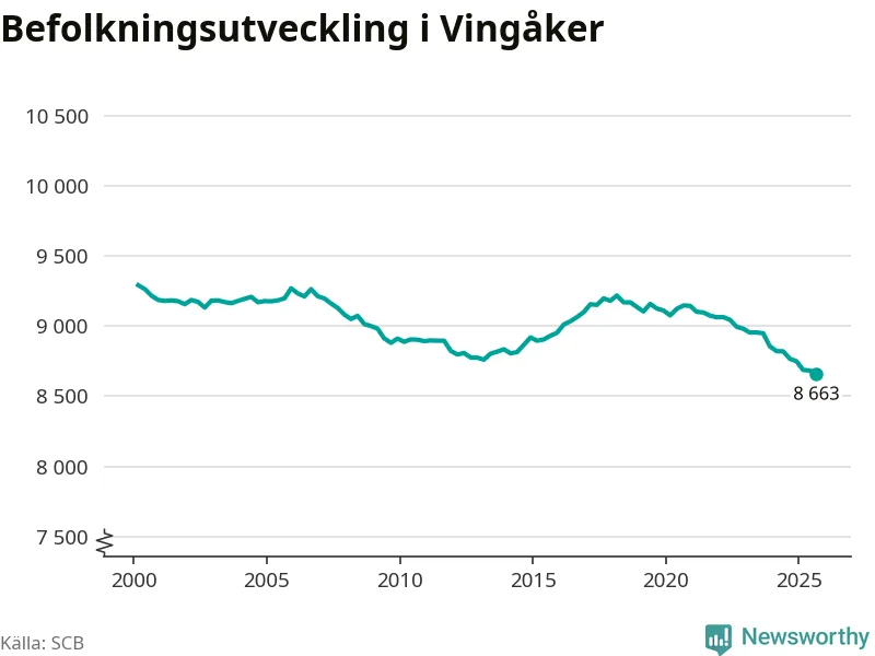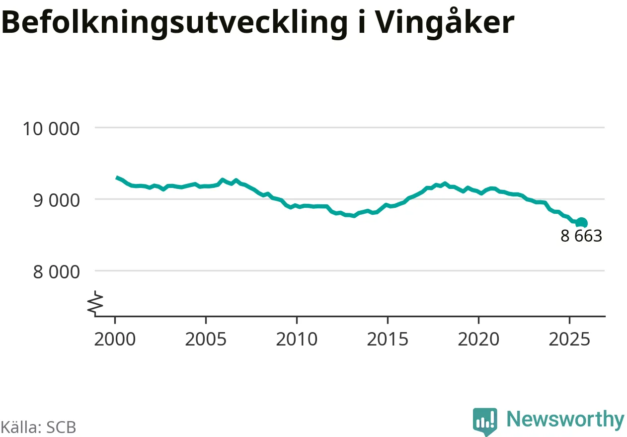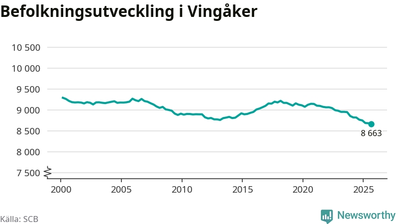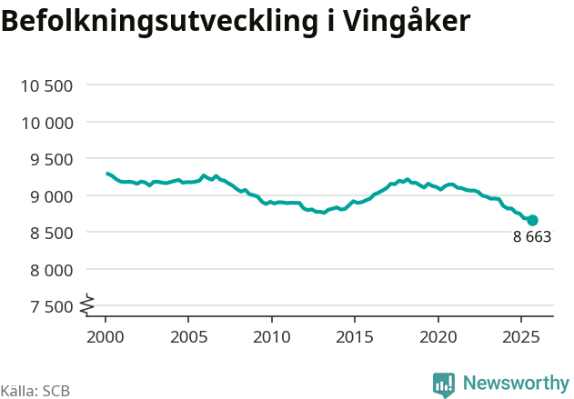 Befolkningen minskade i Vingåkers kommun under det tredje kvartalet 2025. Den 30 september bodde enligt SCB:s senaste siffror 8 663 personer i kommunen, vilket är 20 färre än i slutet av andra kvartalet.