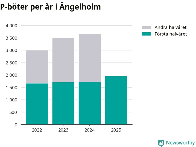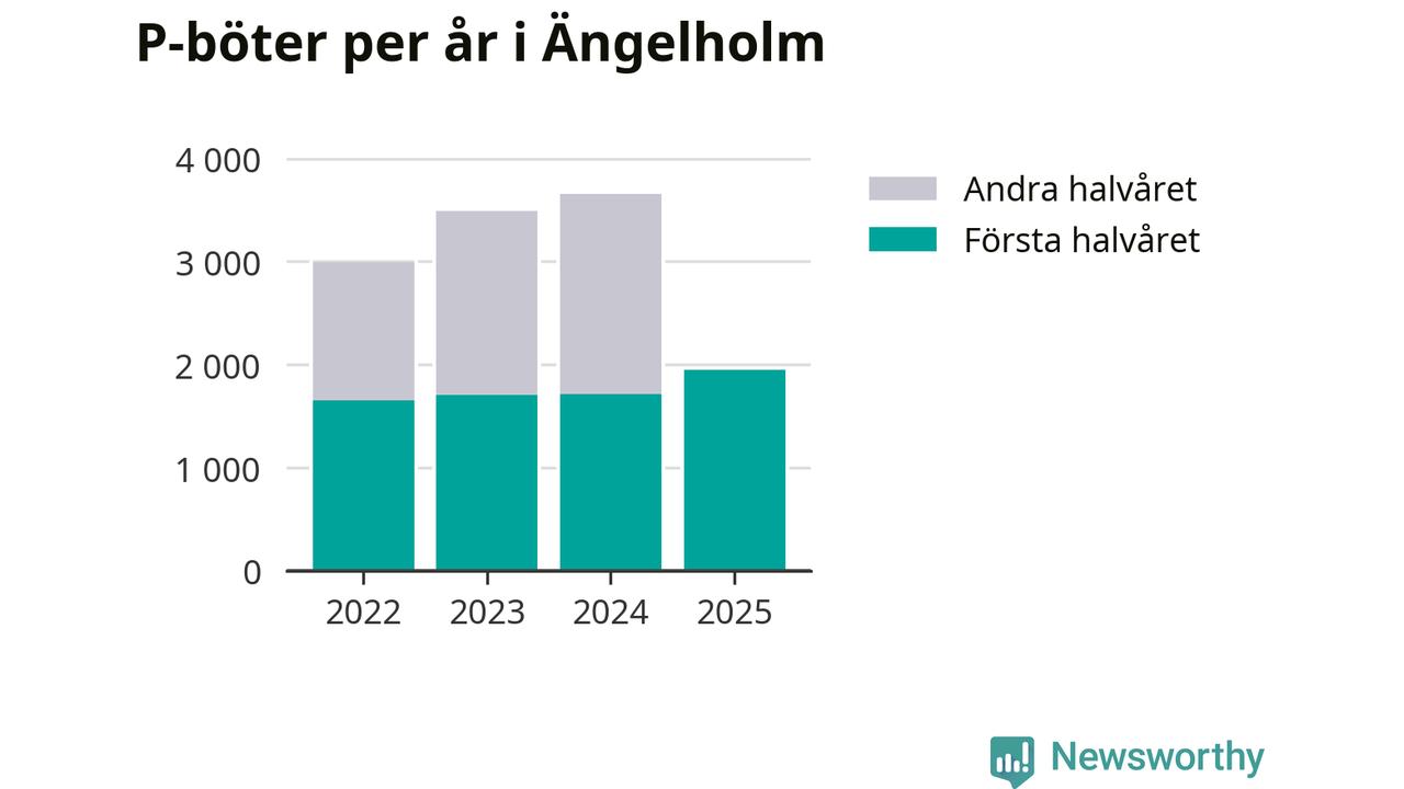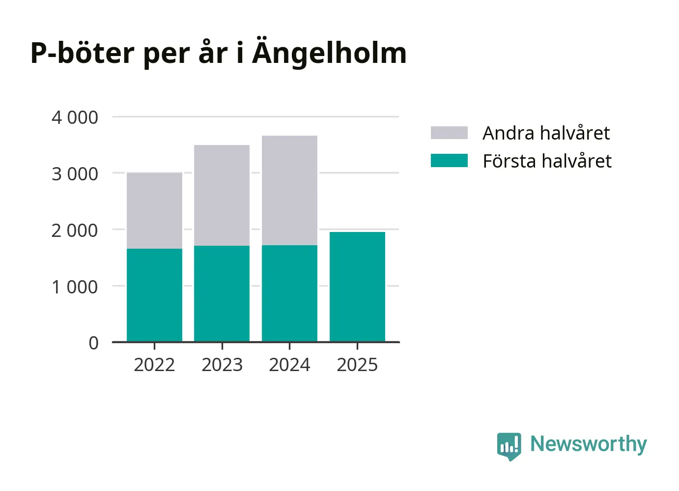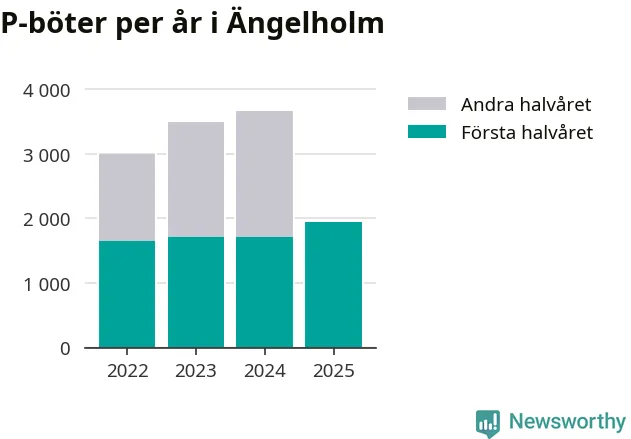 Under första halvåret 2025 har 1 951 parkeringsanmärkningar, med en total felparkeringsavgift på omkring 1,5 miljoner kronor, delats ut på gatumark i Ängelholms kommun. Det är 234 fler än under första halvåret 2024.