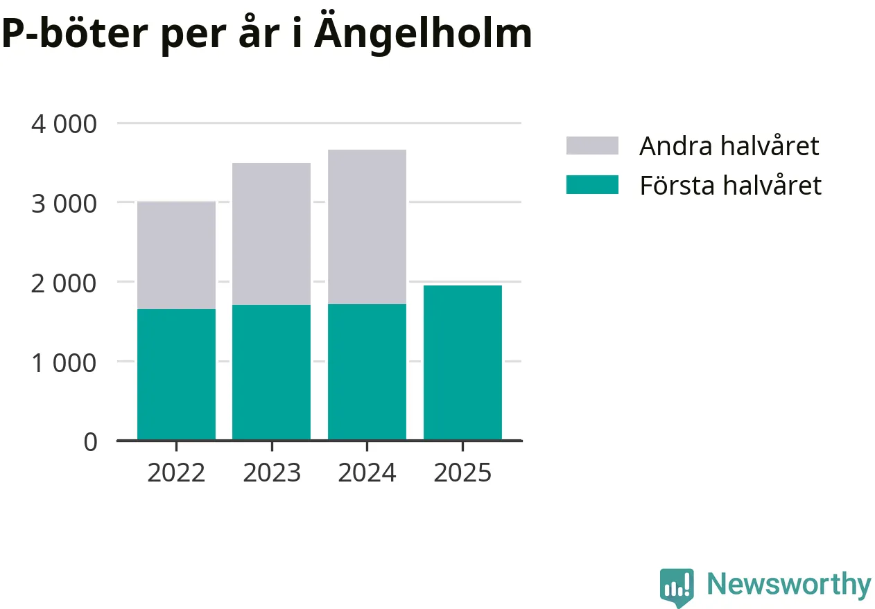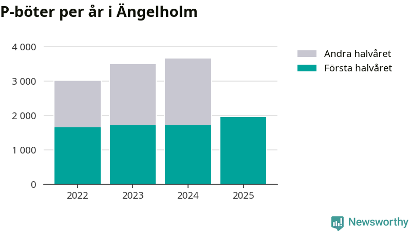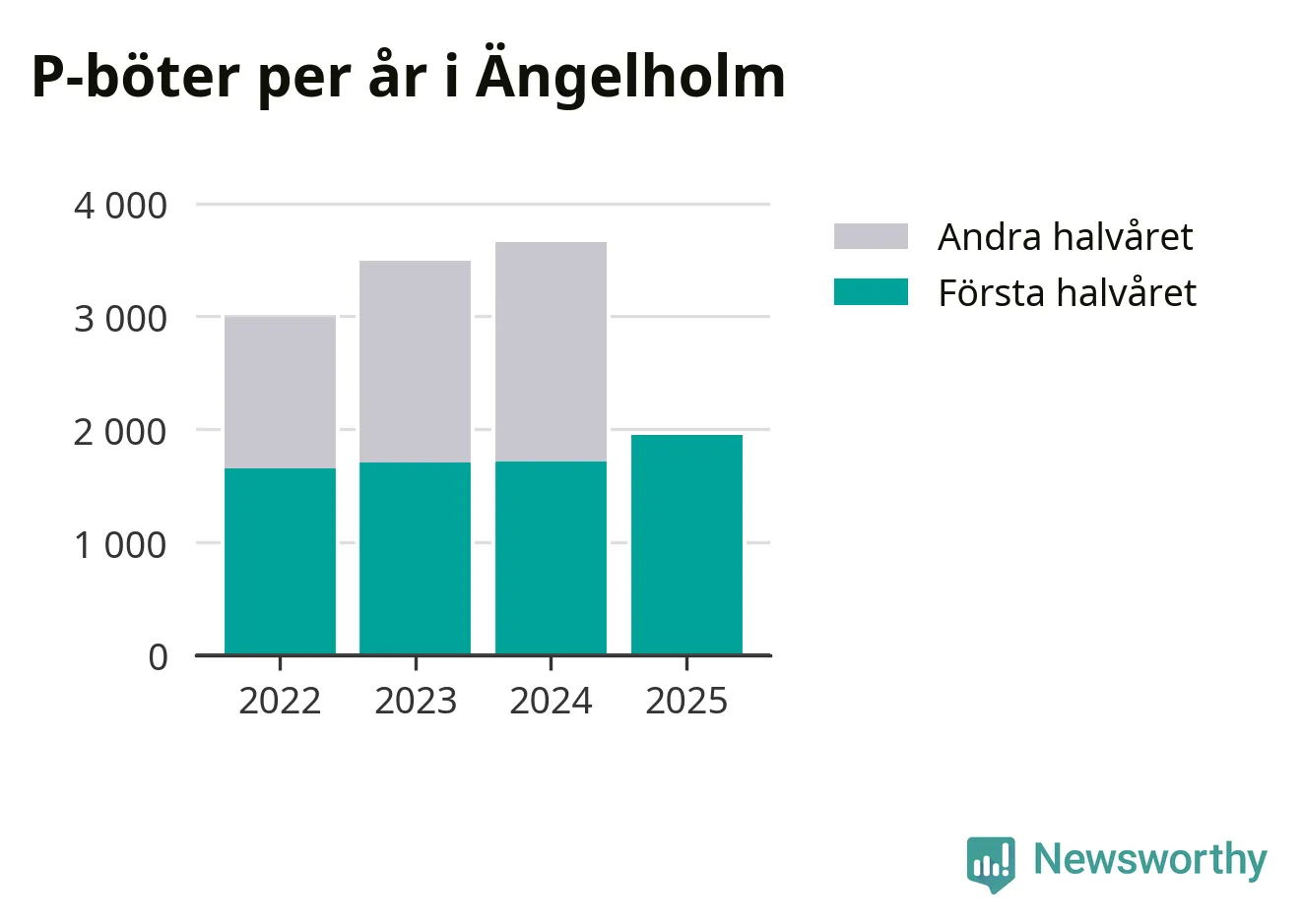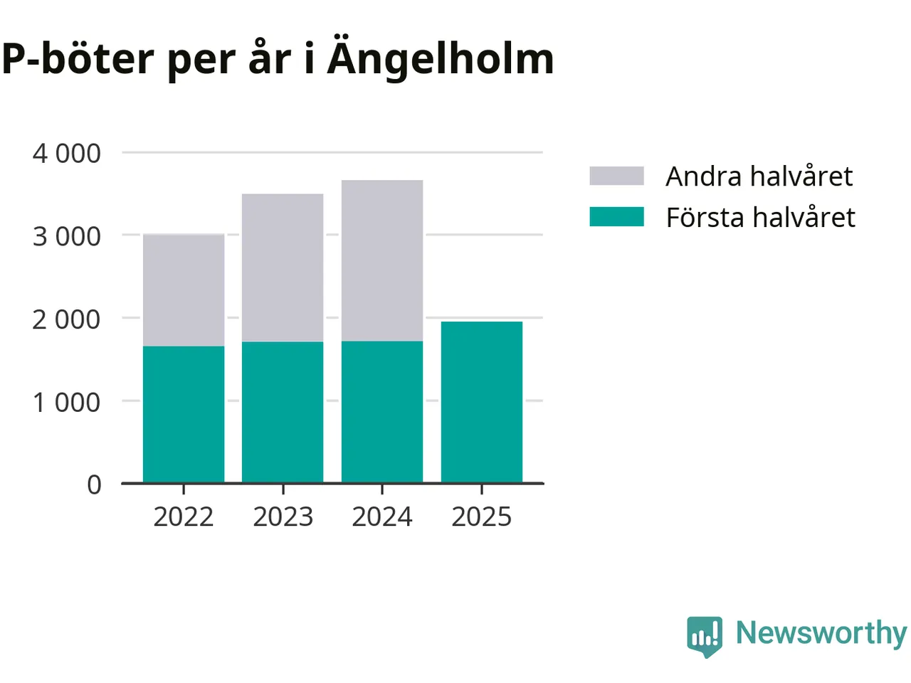Under första halvåret 2025 har 1 951 parkeringsanmärkningar, med en total felparkeringsavgift på omkring 1,5 miljoner kronor, delats ut på gatumark i Ängelholms kommun. Det är 234 fler än under första halvåret 2024.