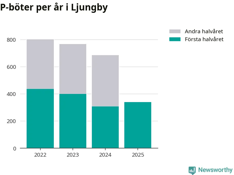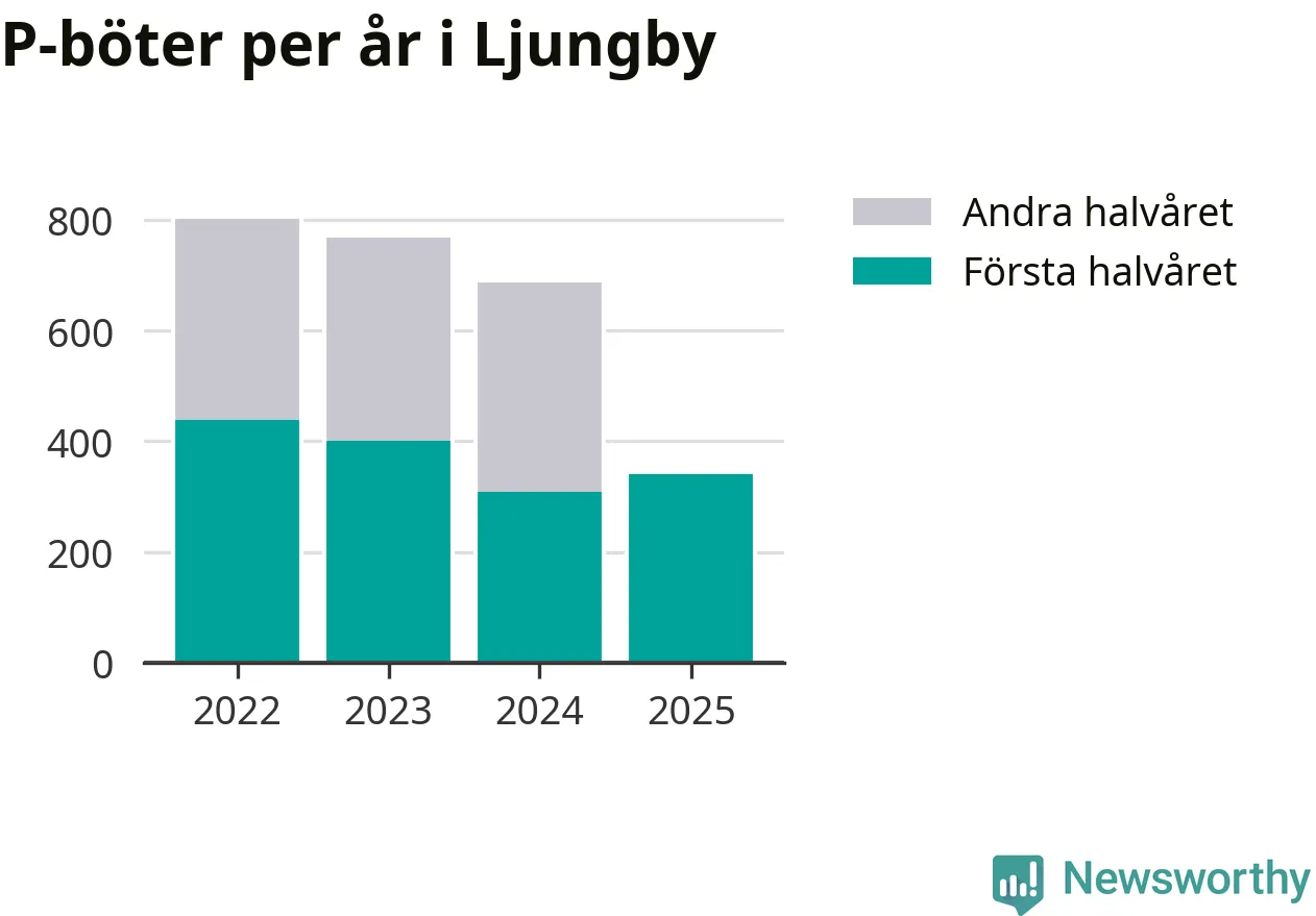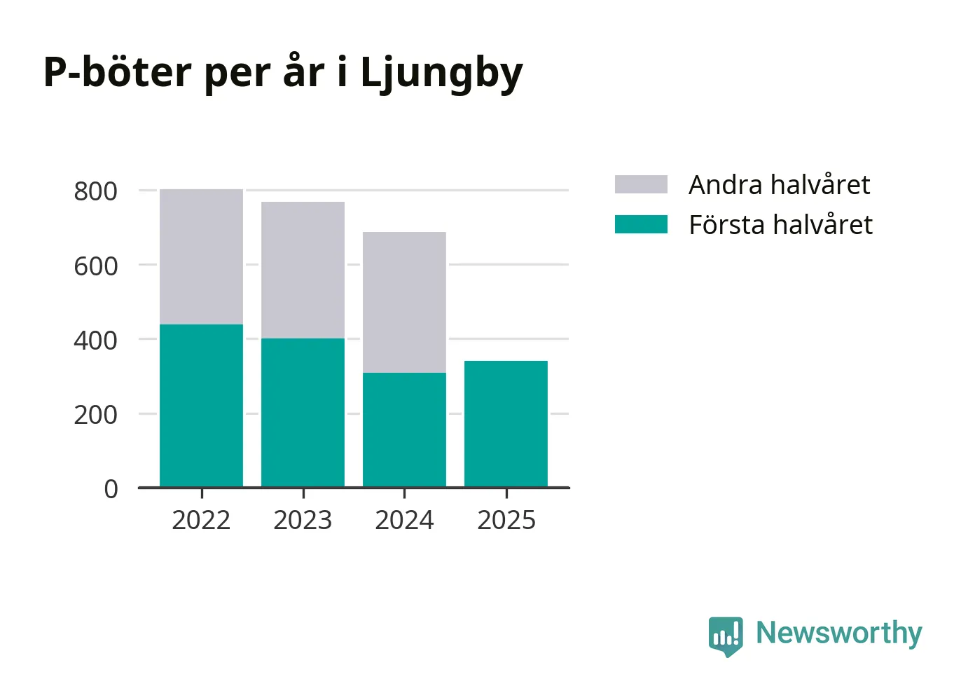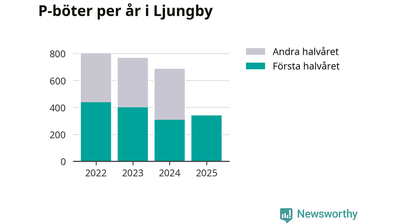 Under första halvåret 2025 har 341 parkeringsanmärkningar, med en total felparkeringsavgift på 196 400 kronor, delats ut på gatumark i Ljungby kommun. Det är 32 fler än under första halvåret 2024.