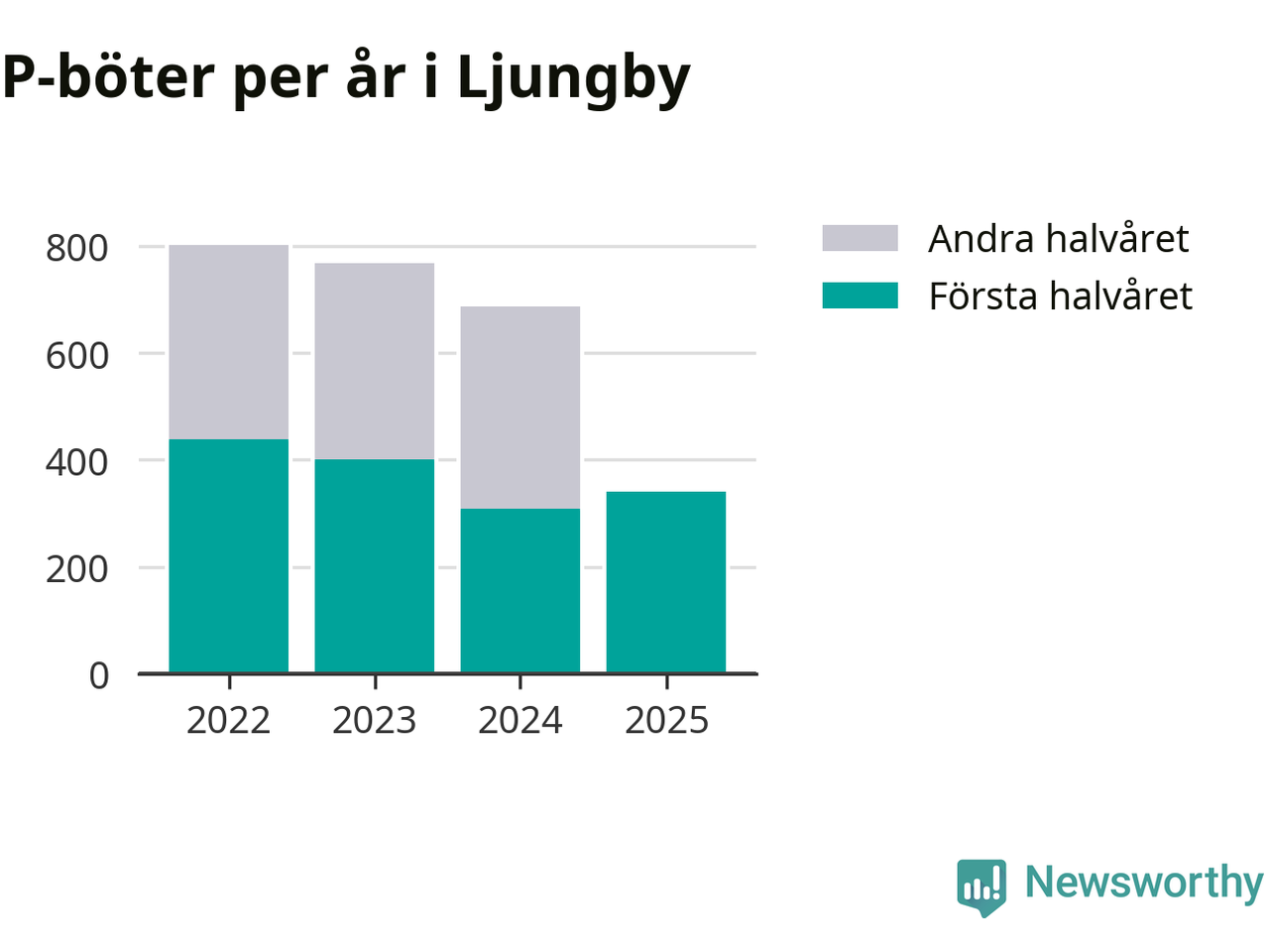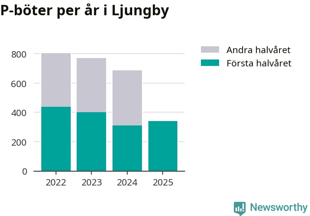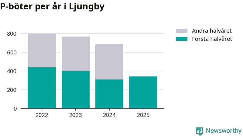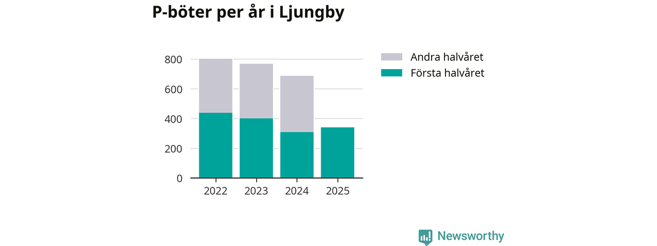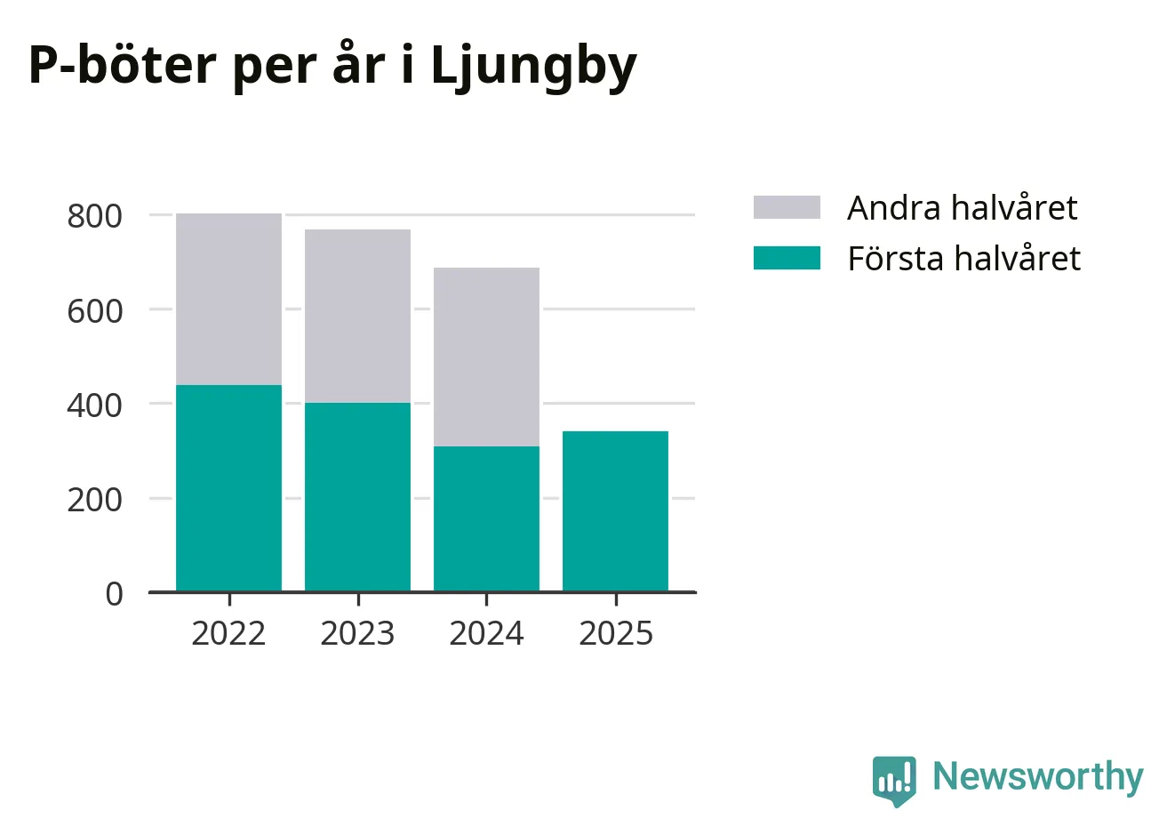 Under första halvåret 2025 har 341 parkeringsanmärkningar, med en total felparkeringsavgift på 196 400 kronor, delats ut på gatumark i Ljungby kommun. Det är 32 fler än under första halvåret 2024.