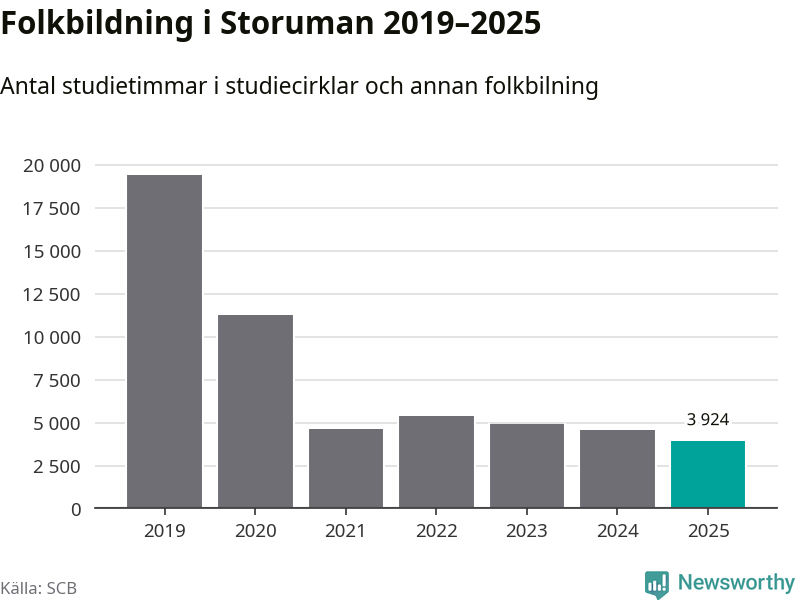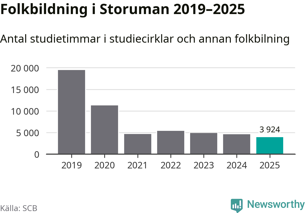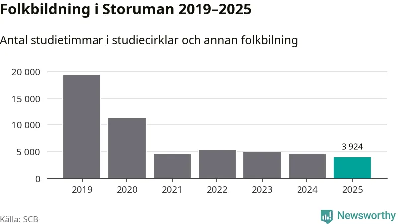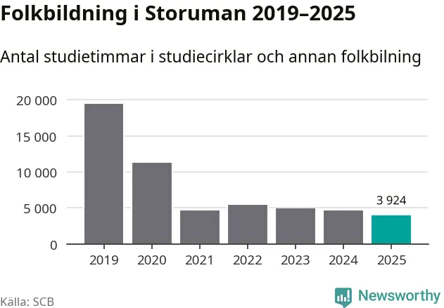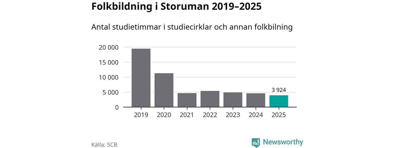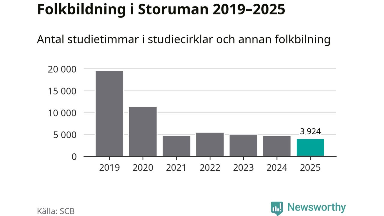 Studieförbunden drabbades hårt av pandemin. Även i Storuman noterades det lägsta antalet studietimmar under 2021, som då var 76 procent färre än 2019 – vilket fortfarande är fler än 2025.