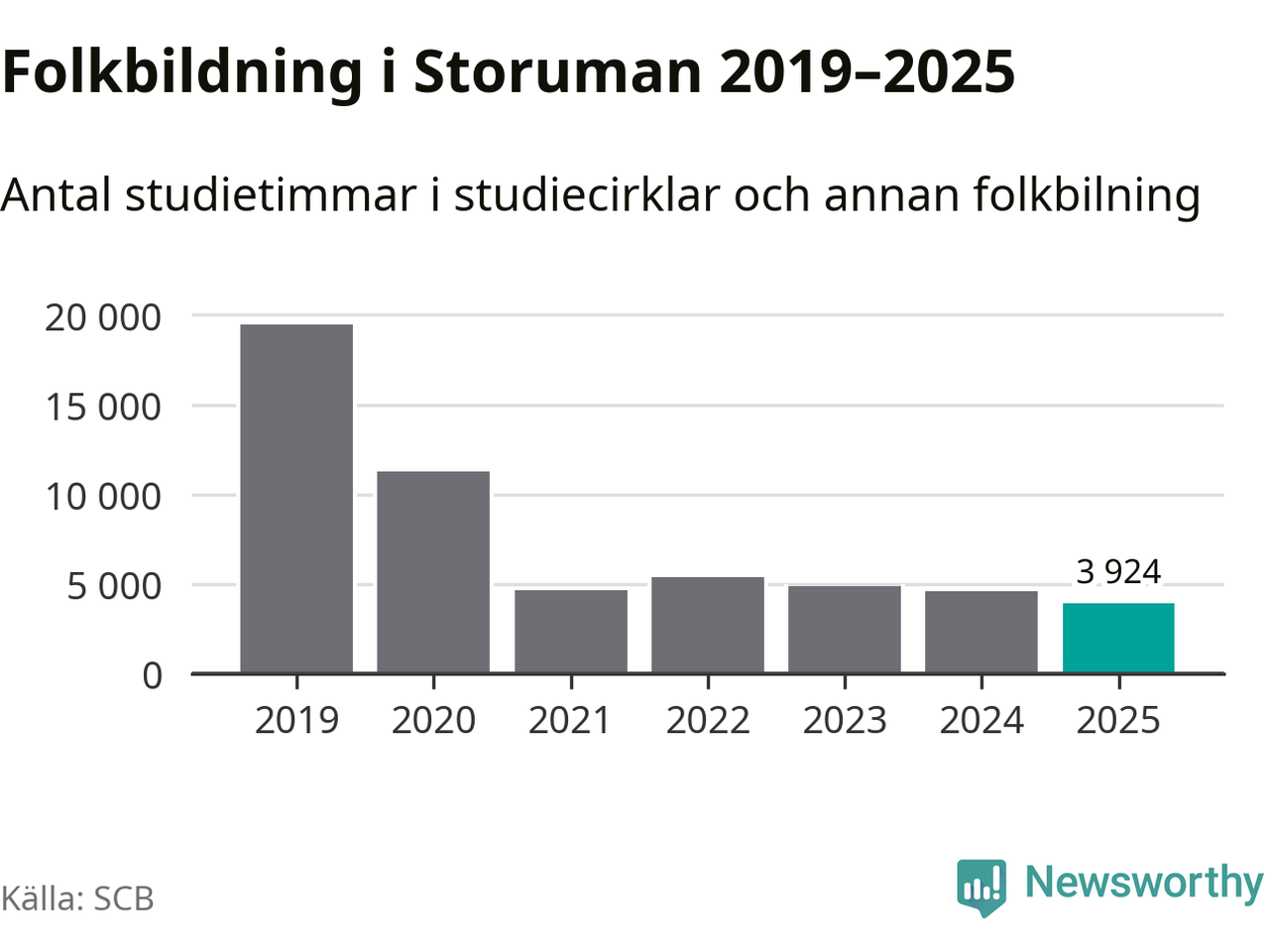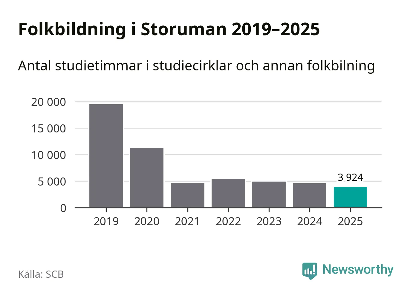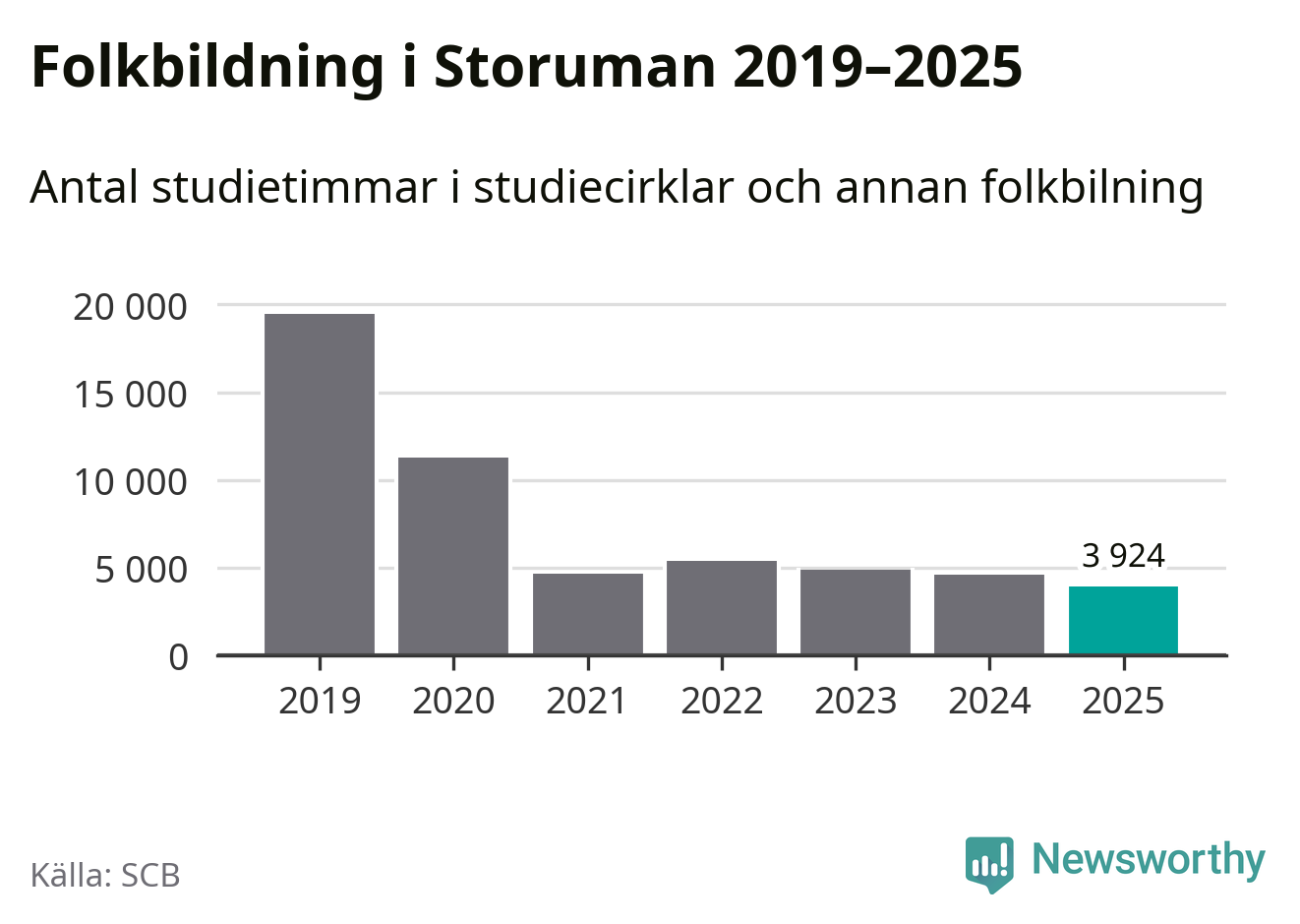 Studieförbunden drabbades hårt av pandemin. Även i Storuman noterades det lägsta antalet studietimmar under 2021, som då var 76 procent färre än 2019 – vilket fortfarande är fler än 2025.