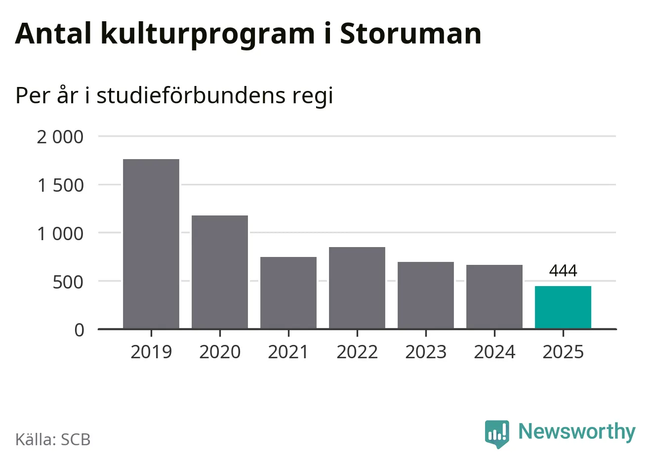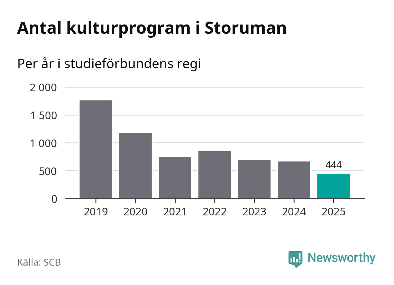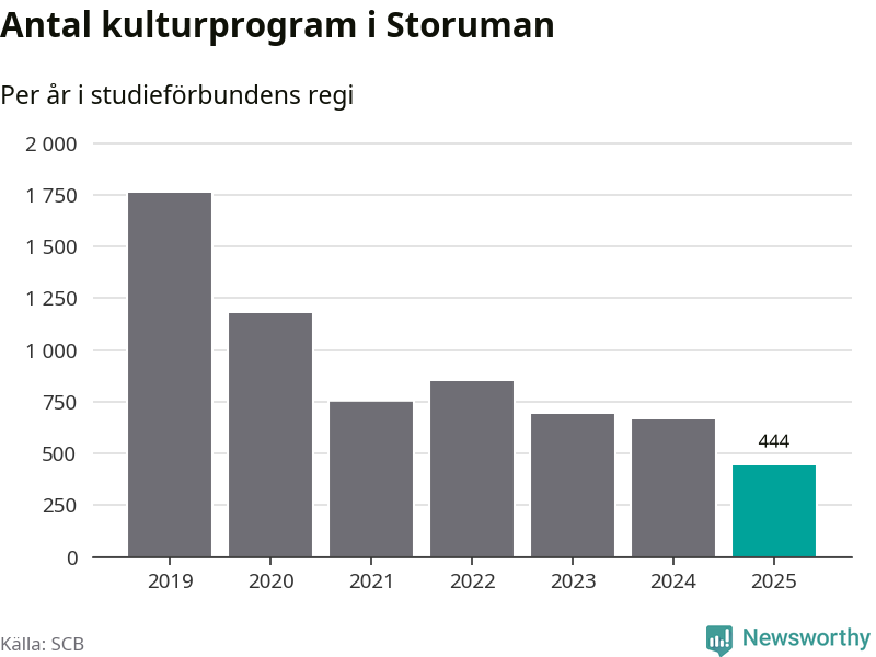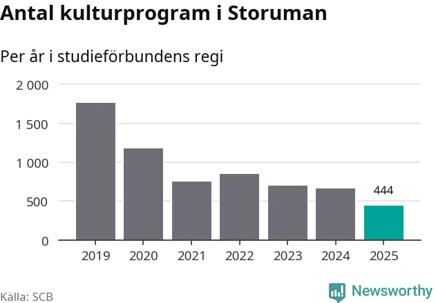 I Storuman är minskningen ännu större: förra året hade studieförbunden omkring 3 900 studietimmar i kommunen, vilket är en minskning med 15 procent jämfört med året innan. Även antalet kulturprogram i studieförbundens regi minskade, från 663 till 444 stycken.