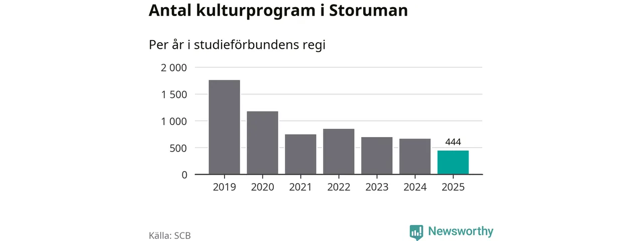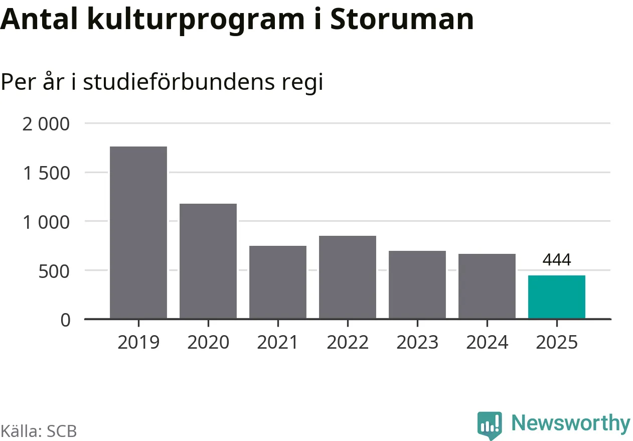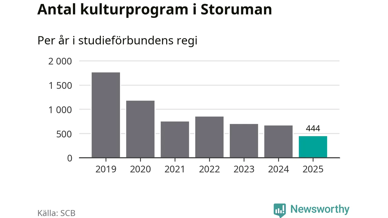 De svåra tiderna fortsätter för studieförbunden. Under 2024 och 2025 skars statsbidragen ner med totalt 350 miljoner kronor och under 2026 kapas de med ytterligare 150 miljoner kronor. Det har lett till uppsägning av personal, uppsagda lokaler och arbetsställen i allt färre kommuner. Och det märks i de färska siffrorna från SCB och Folkbildningsrådet: Under 2025 föll antalet studietimmar i studiecirklar och liknande verksamhet med sex procent jämfört med året innan. Det är tredje året i rad med färre studietimmar. Samtidigt minskade antalet kulturprogram som studieförbunden arrangerade med nio procent.