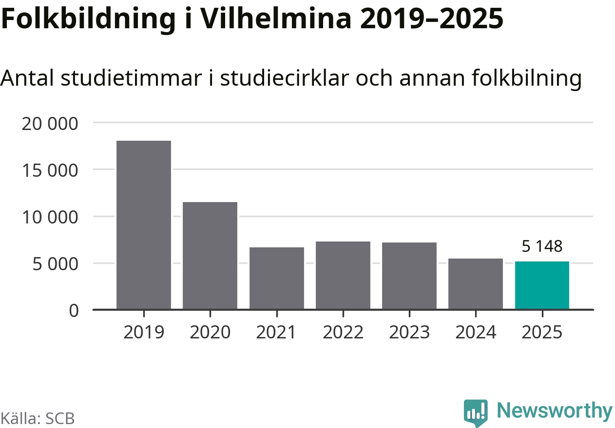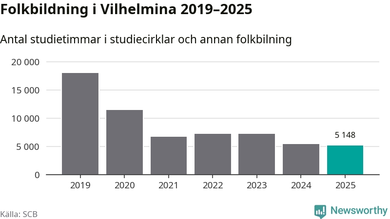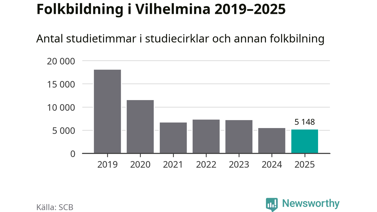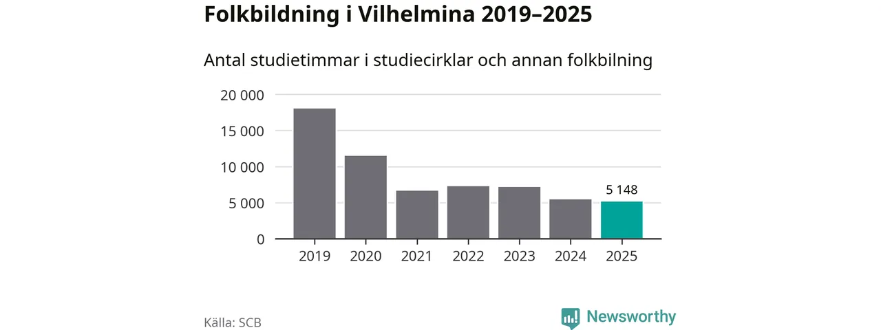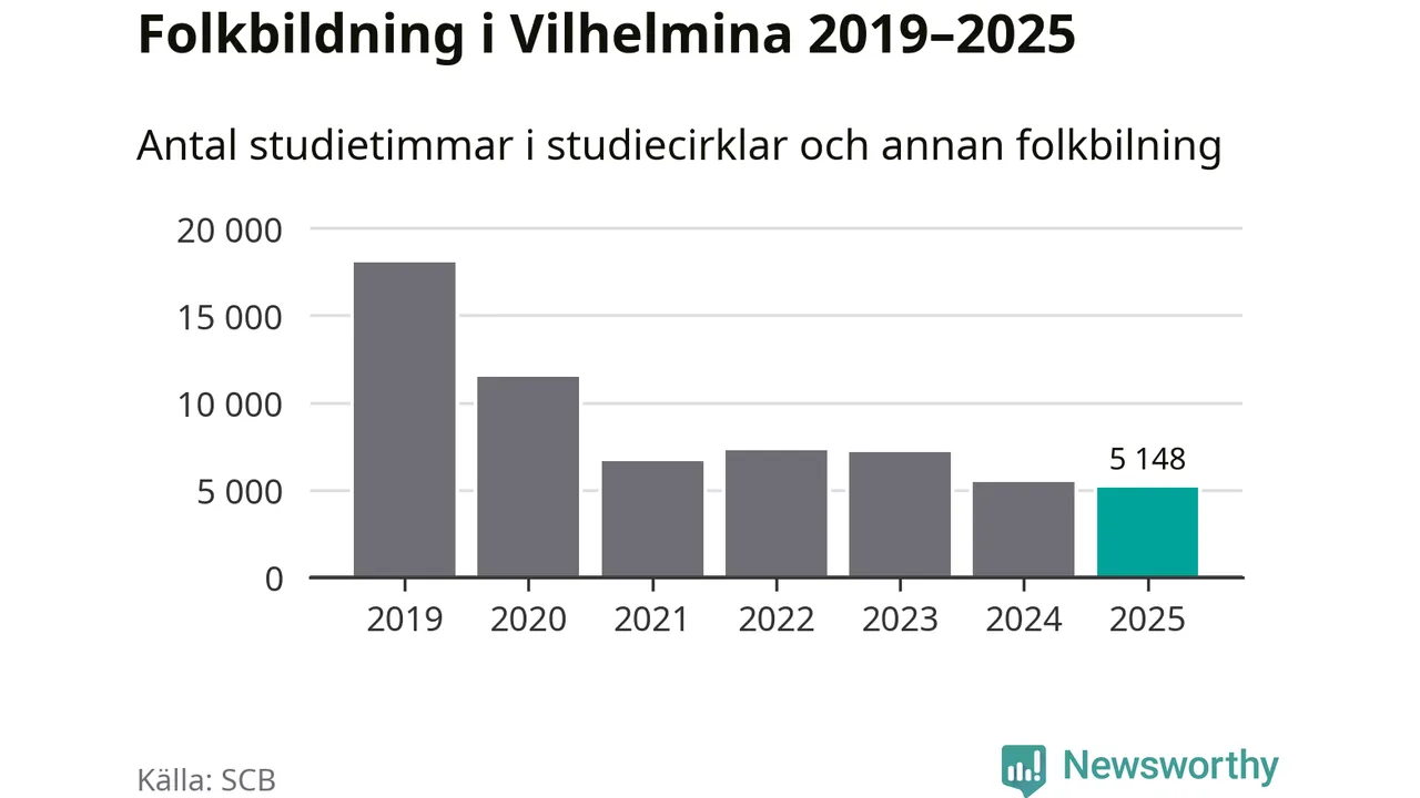 Studieförbunden drabbades hårt av pandemin. Även i Vilhelmina noterades det lägsta antalet studietimmar under 2021, som då var 63 procent färre än 2019 – vilket fortfarande är fler än 2025.