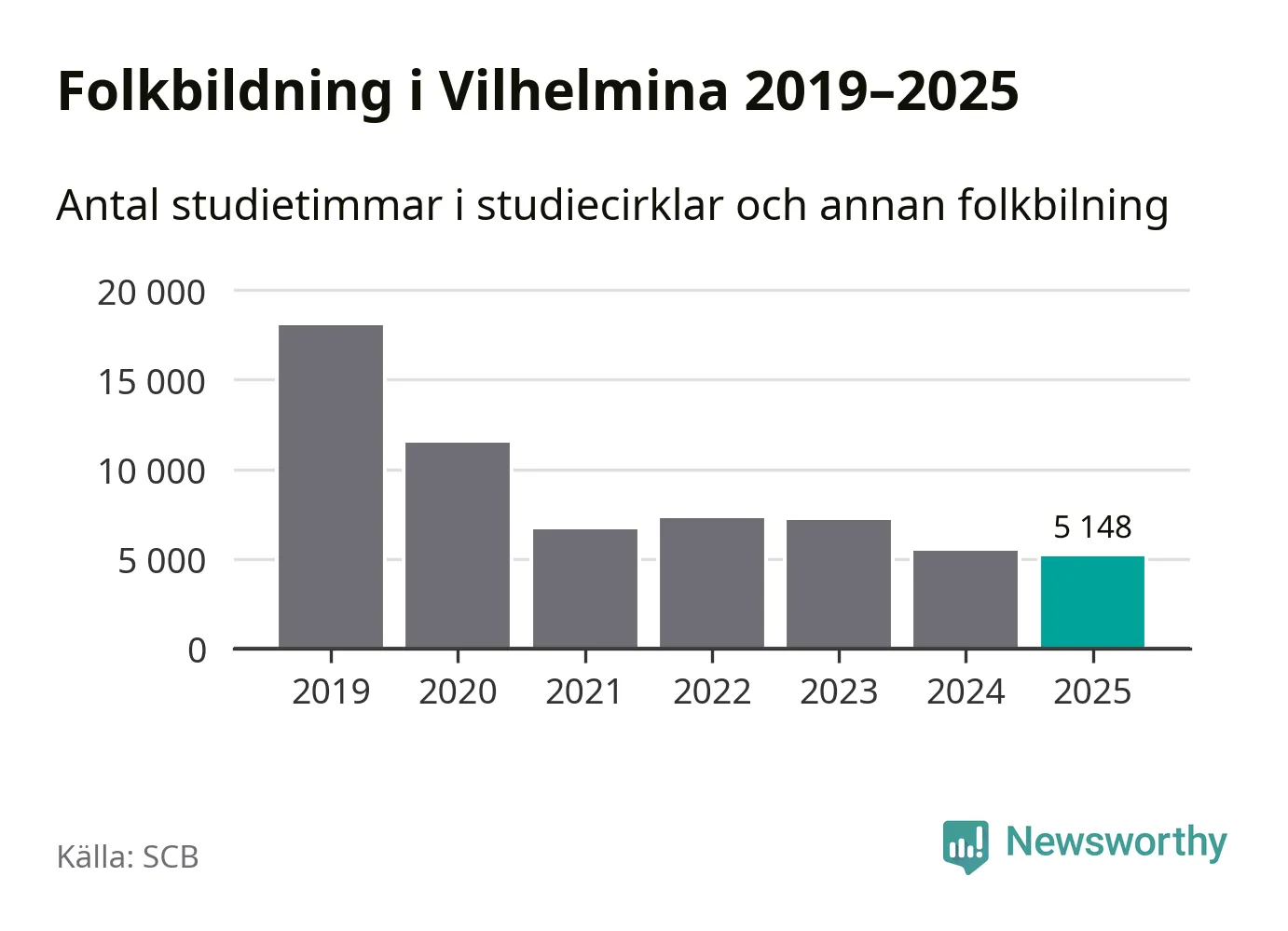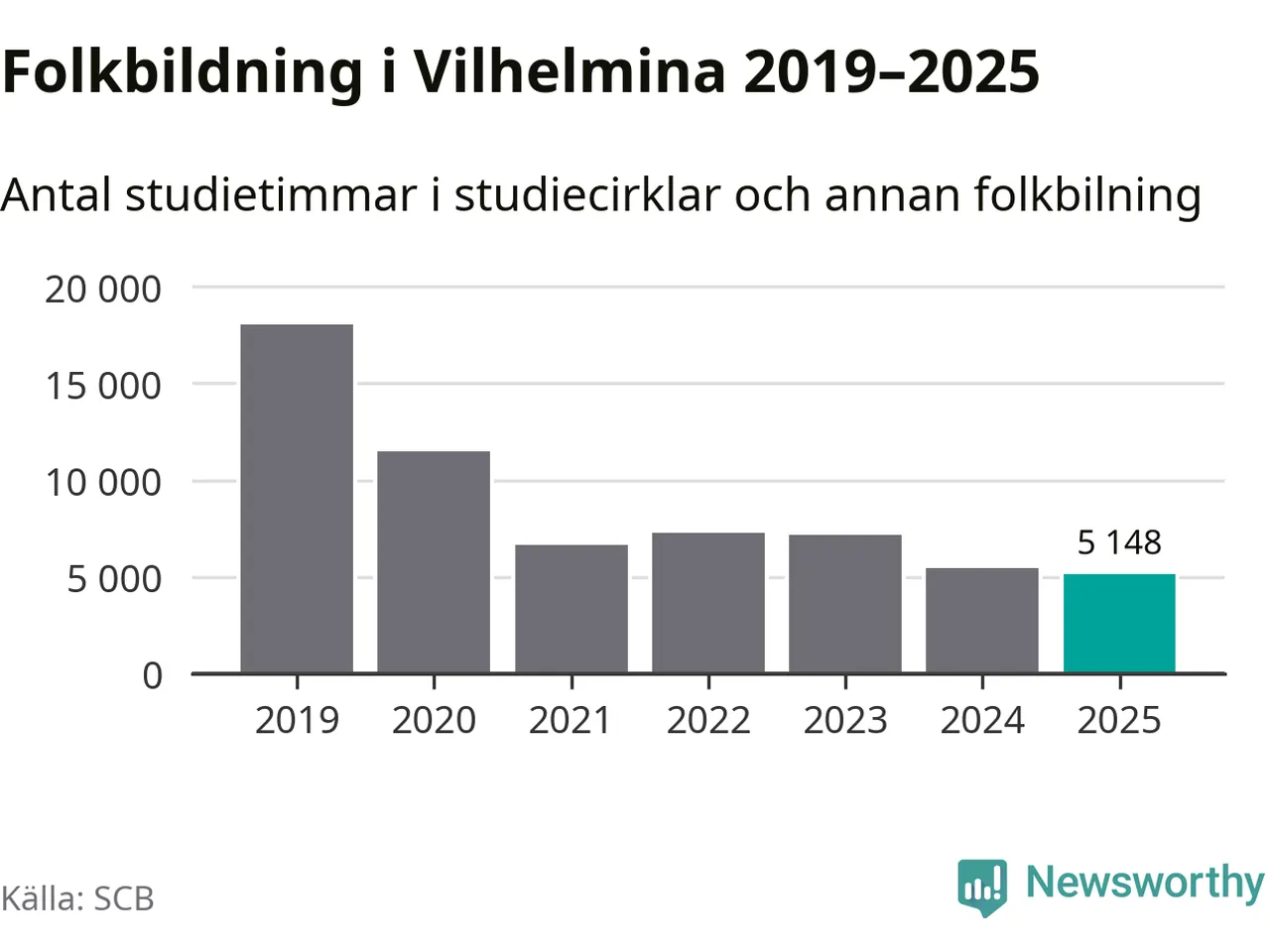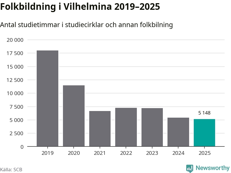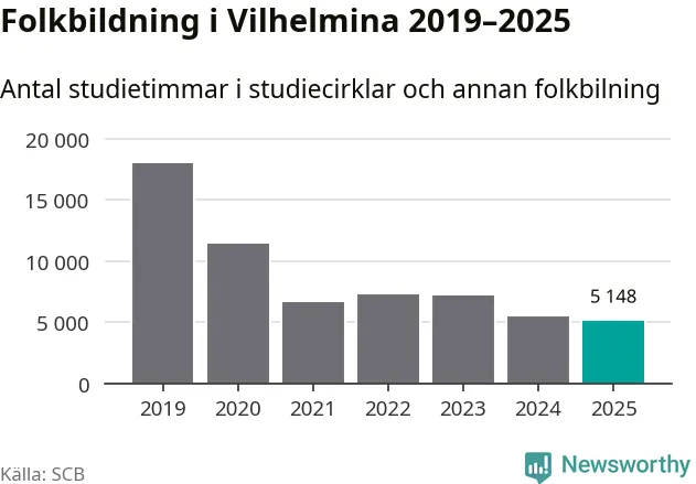 Studieförbunden drabbades hårt av pandemin. Även i Vilhelmina noterades det lägsta antalet studietimmar under 2021, som då var 63 procent färre än 2019 – vilket fortfarande är fler än 2025.