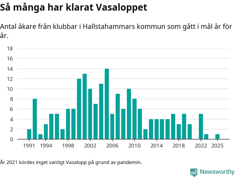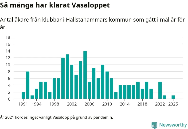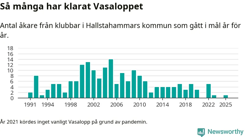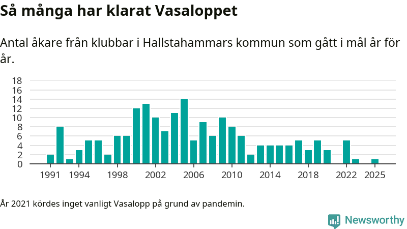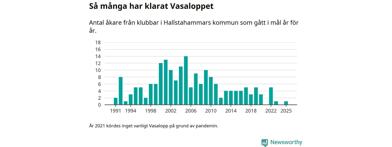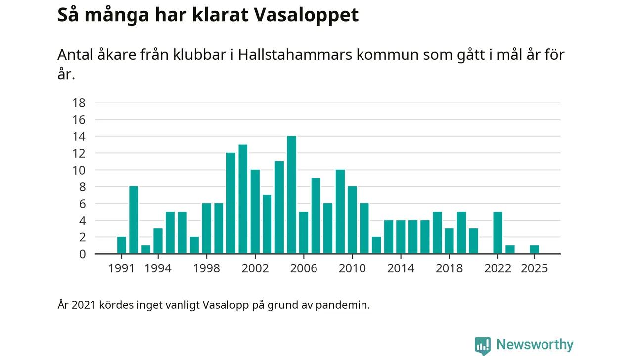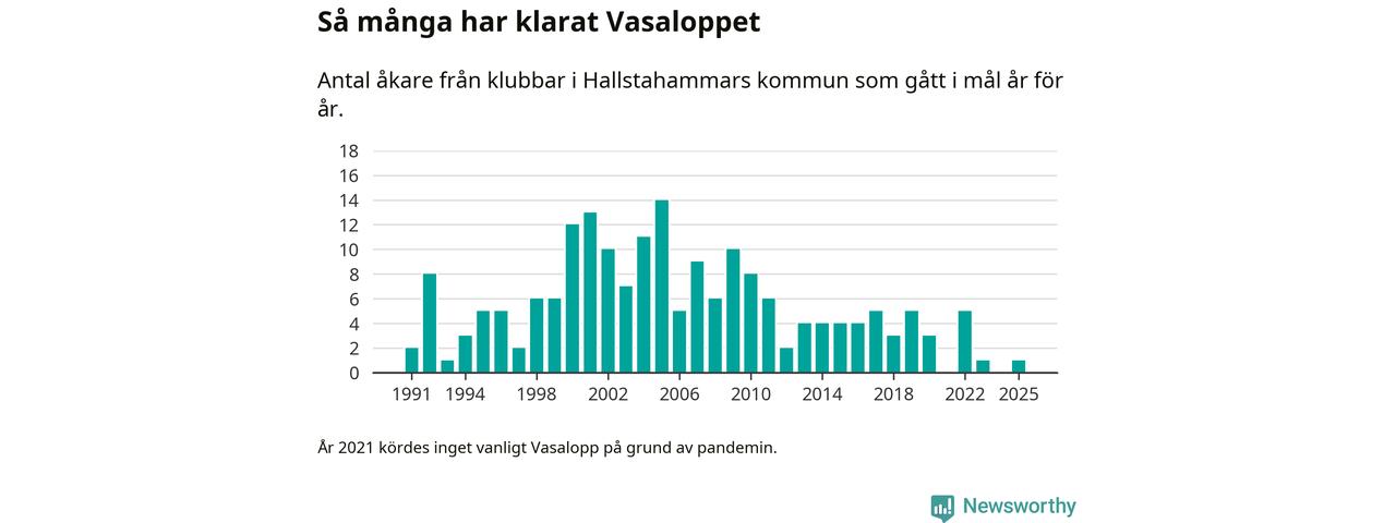 På söndag går starten för det 102:a Vasaloppet. Newsworthy har samlat in och sammanställt samtliga Vasaloppsresultat sedan 1991. Det ger en unik bild av hur skidåkare från klubbar i Hallstahammars kommun har klarat sig genom åren.