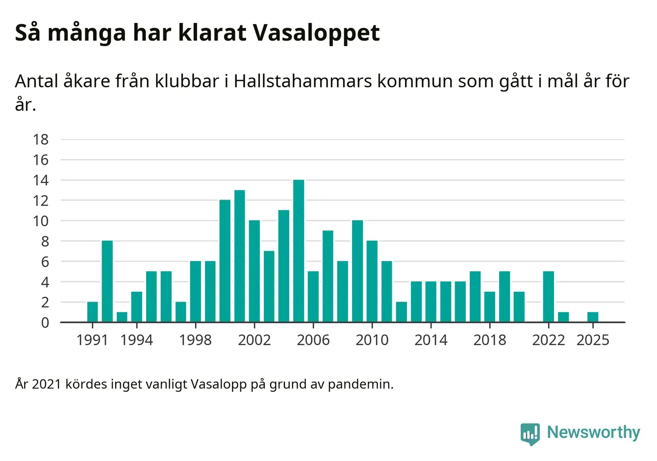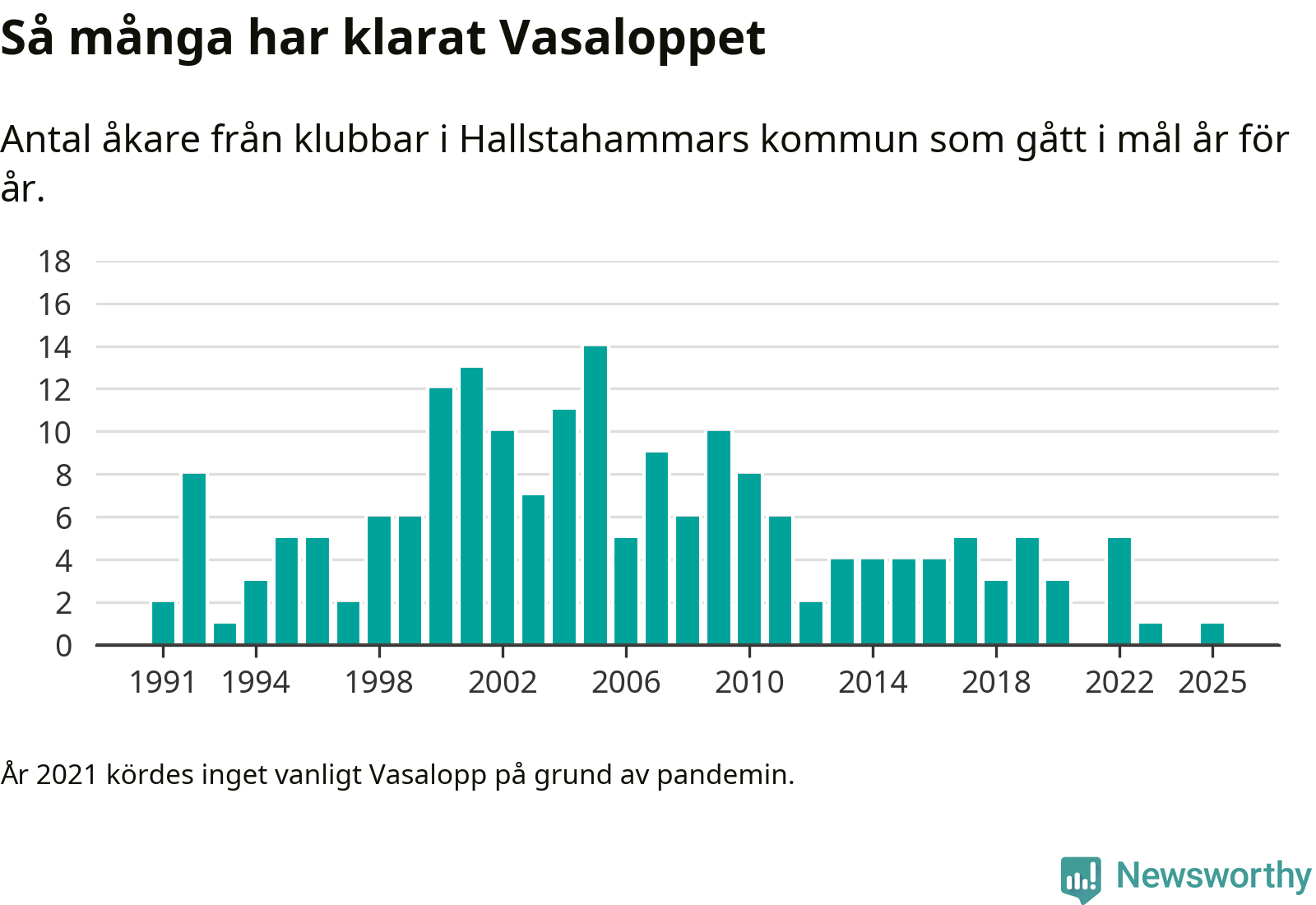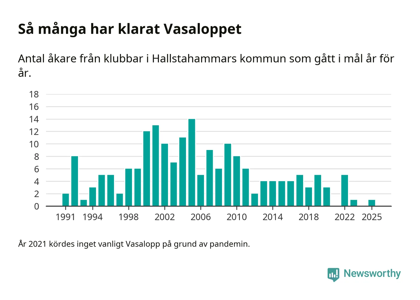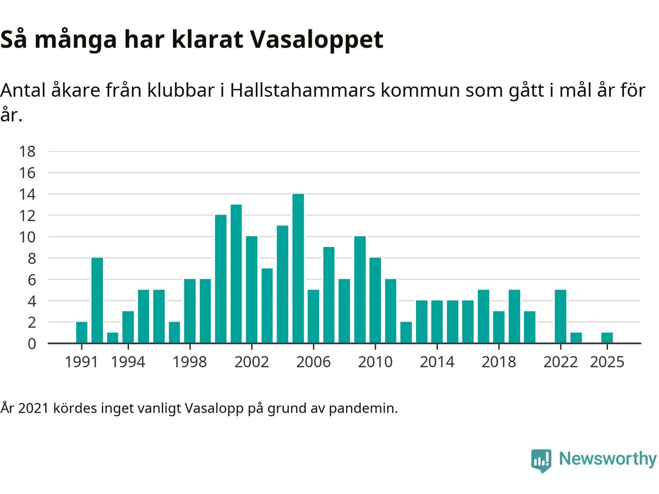 På söndag går starten för det 102:a Vasaloppet. Newsworthy har samlat in och sammanställt samtliga Vasaloppsresultat sedan 1991. Det ger en unik bild av hur skidåkare från klubbar i Hallstahammars kommun har klarat sig genom åren.