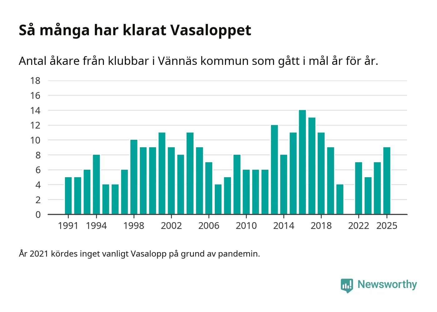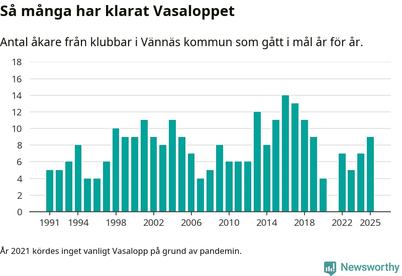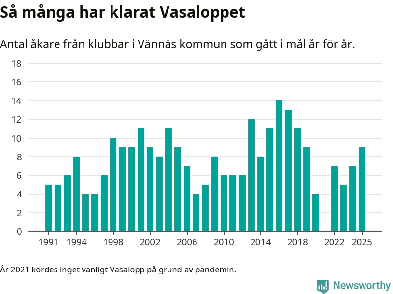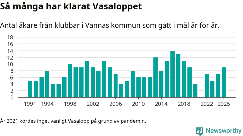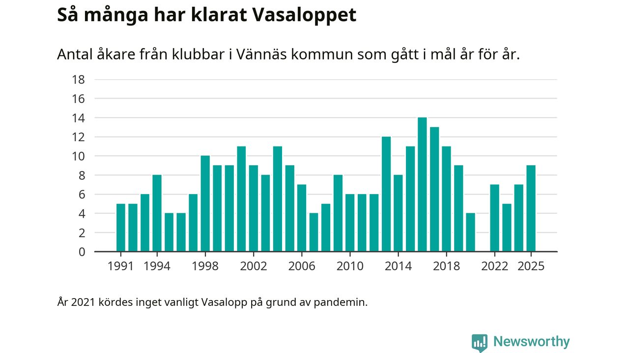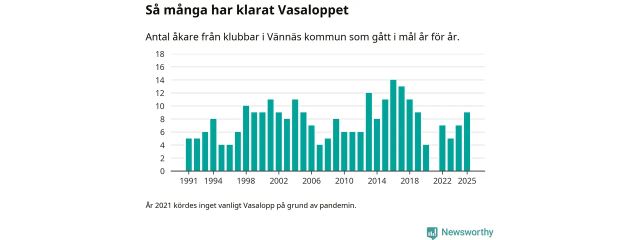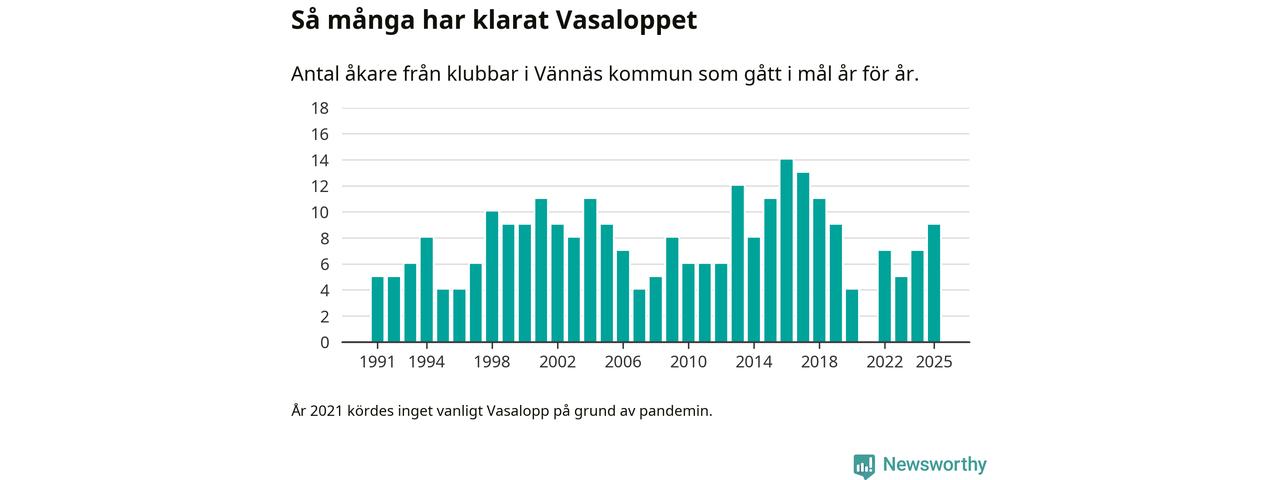 På söndag går starten för det 102:a Vasaloppet. Newsworthy har samlat in och sammanställt samtliga Vasaloppsresultat sedan 1991. Det ger en unik bild av hur skidåkare från klubbar i Vännäs kommun har klarat sig genom åren.