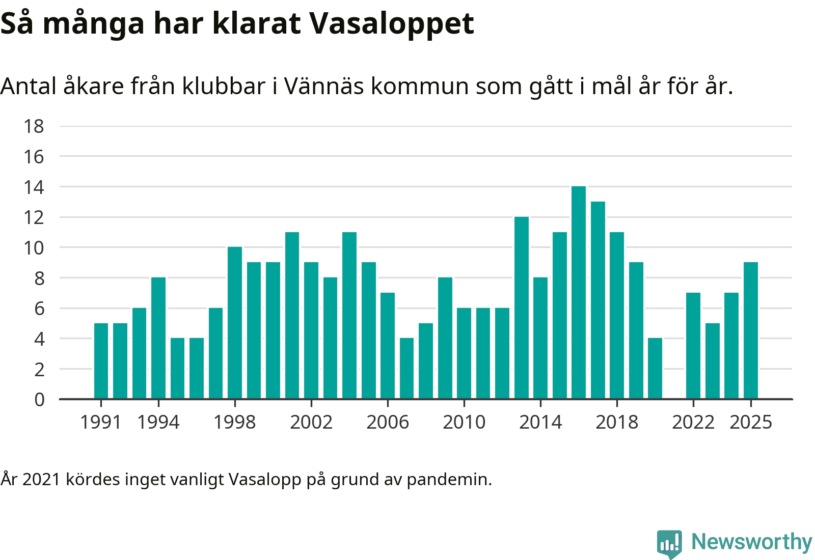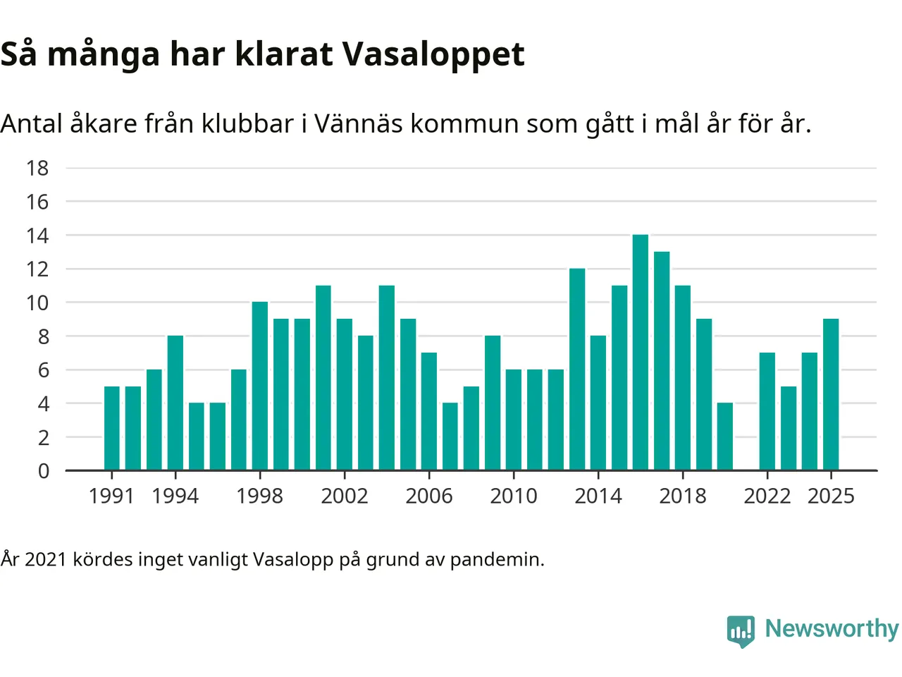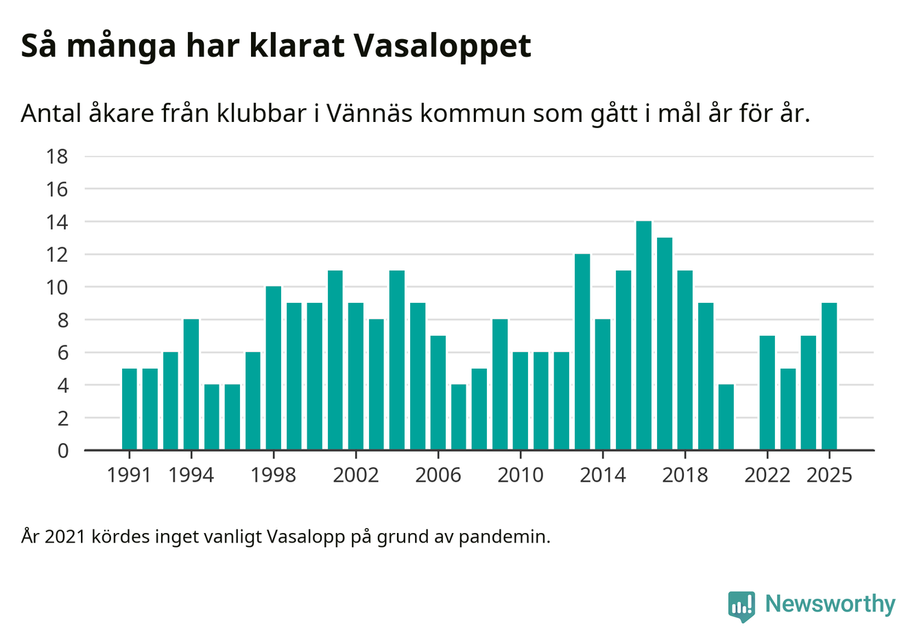 På söndag går starten för det 102:a Vasaloppet. Newsworthy har samlat in och sammanställt samtliga Vasaloppsresultat sedan 1991. Det ger en unik bild av hur skidåkare från klubbar i Vännäs kommun har klarat sig genom åren.