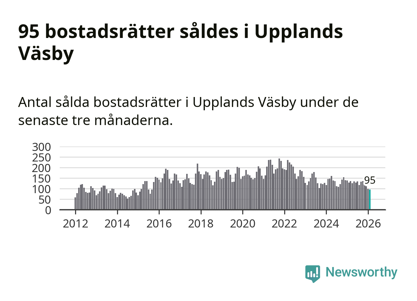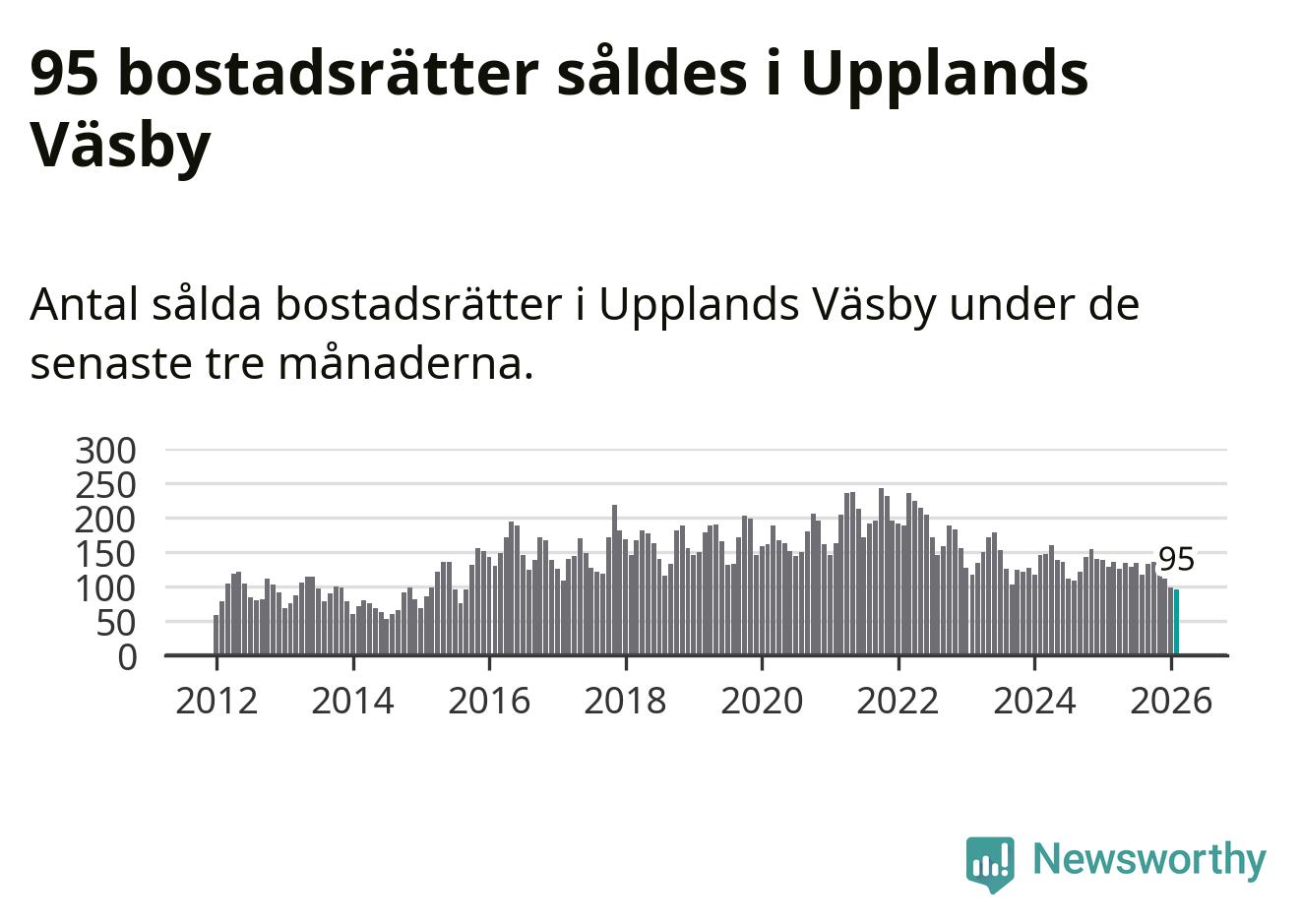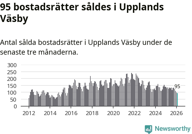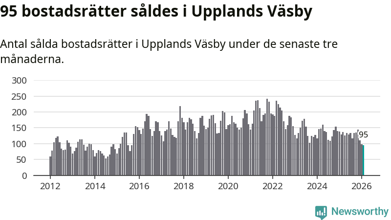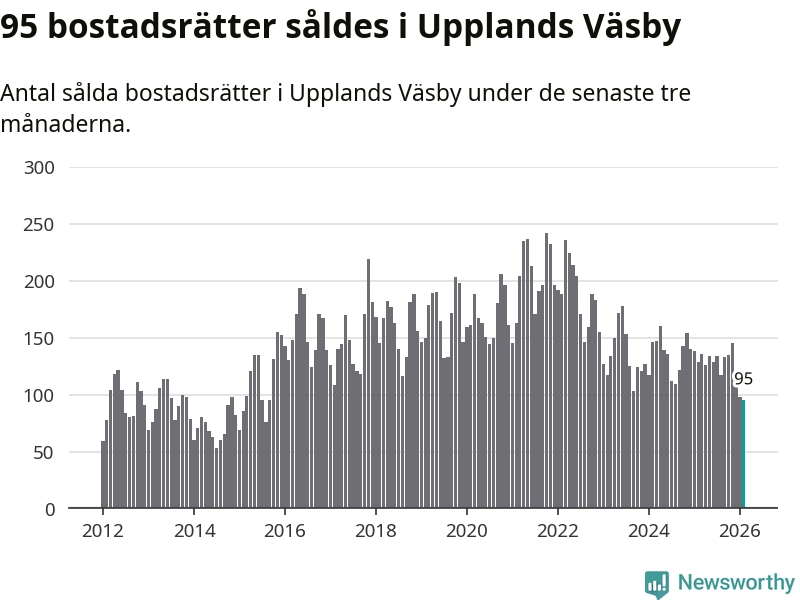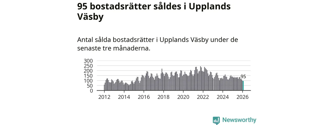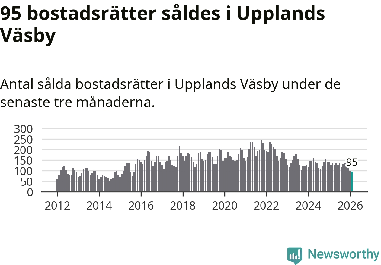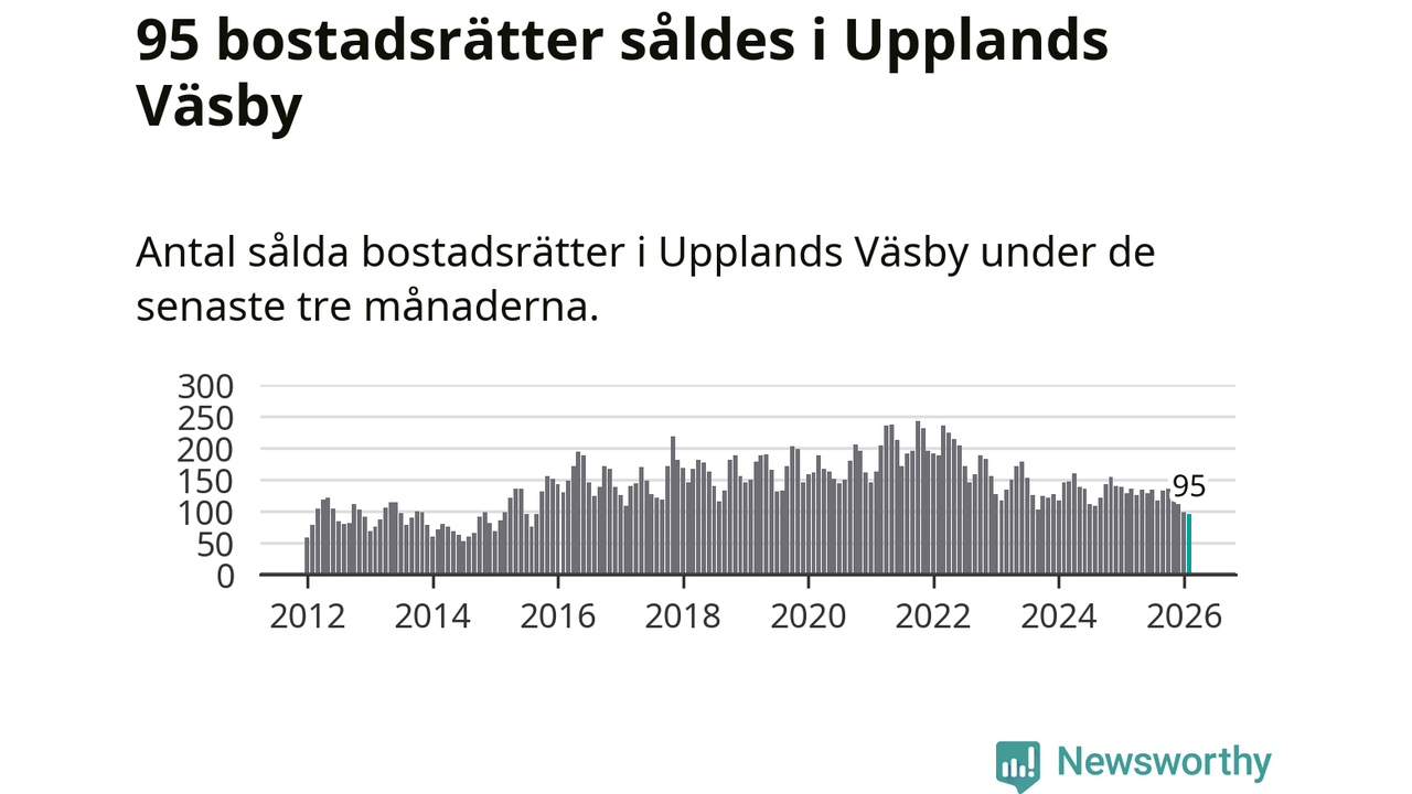 Mellan december och februari såldes 95 bostadsrätter i Upplands Väsby kommun. Det är färre än någon tremånadersperiod sedan 2015.